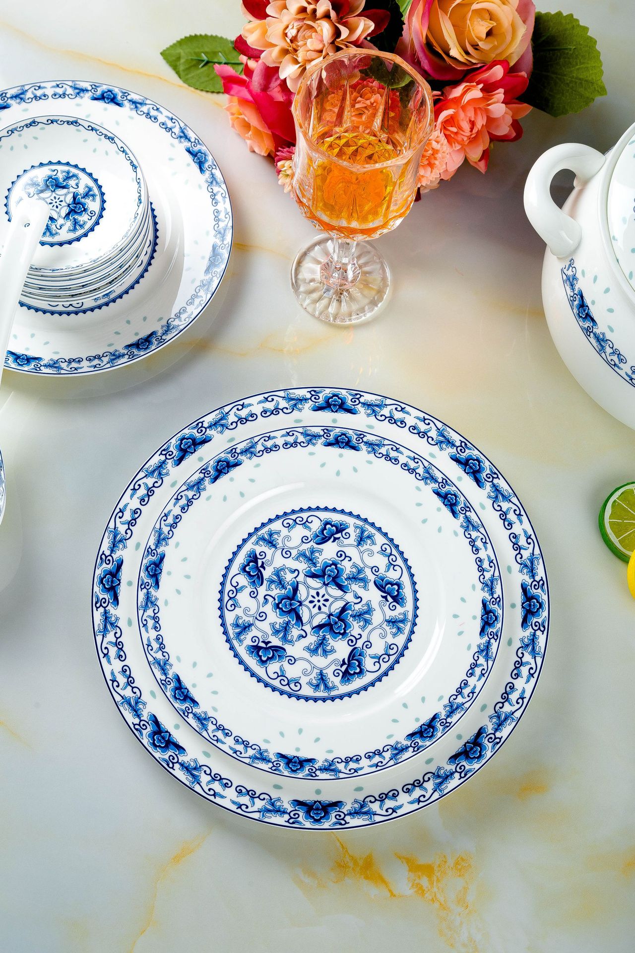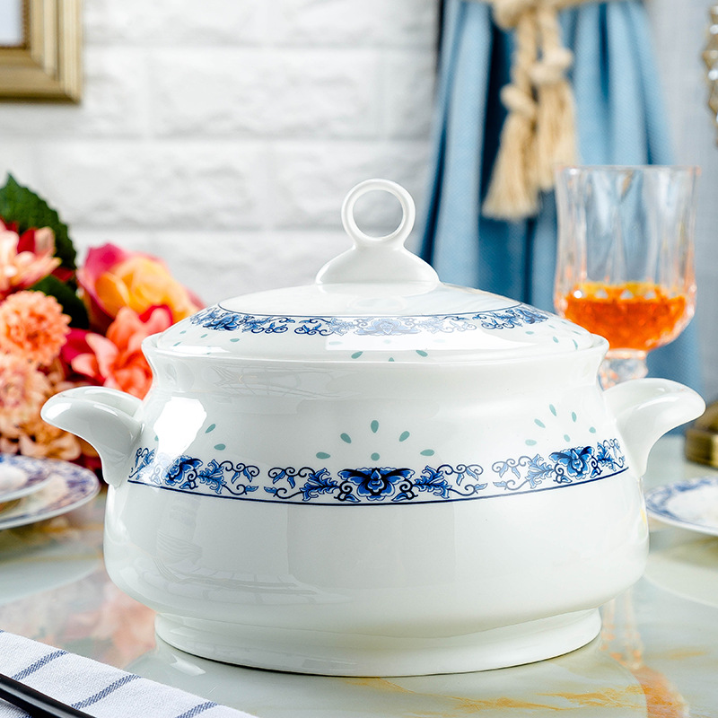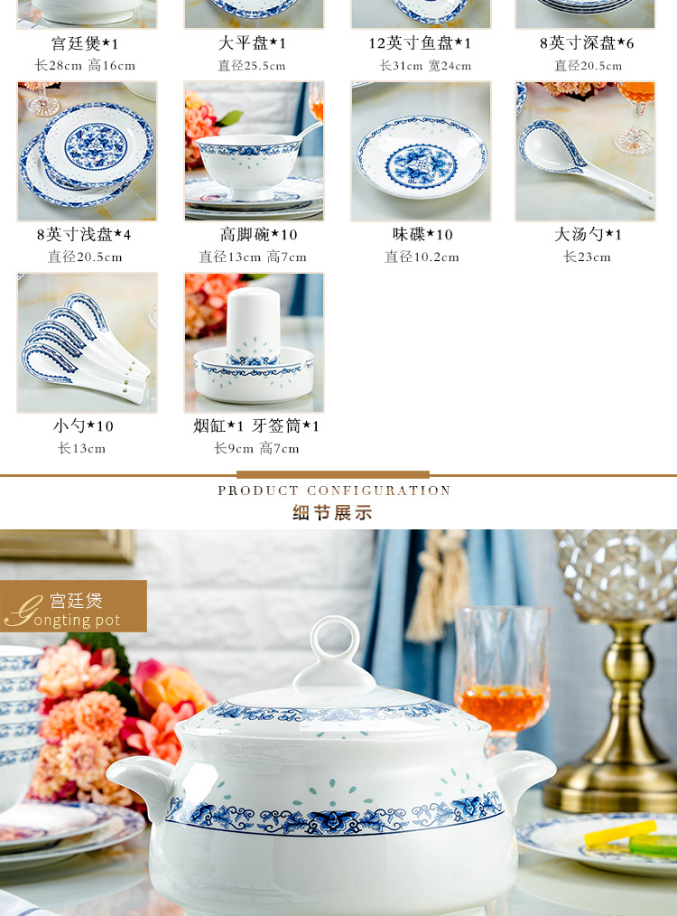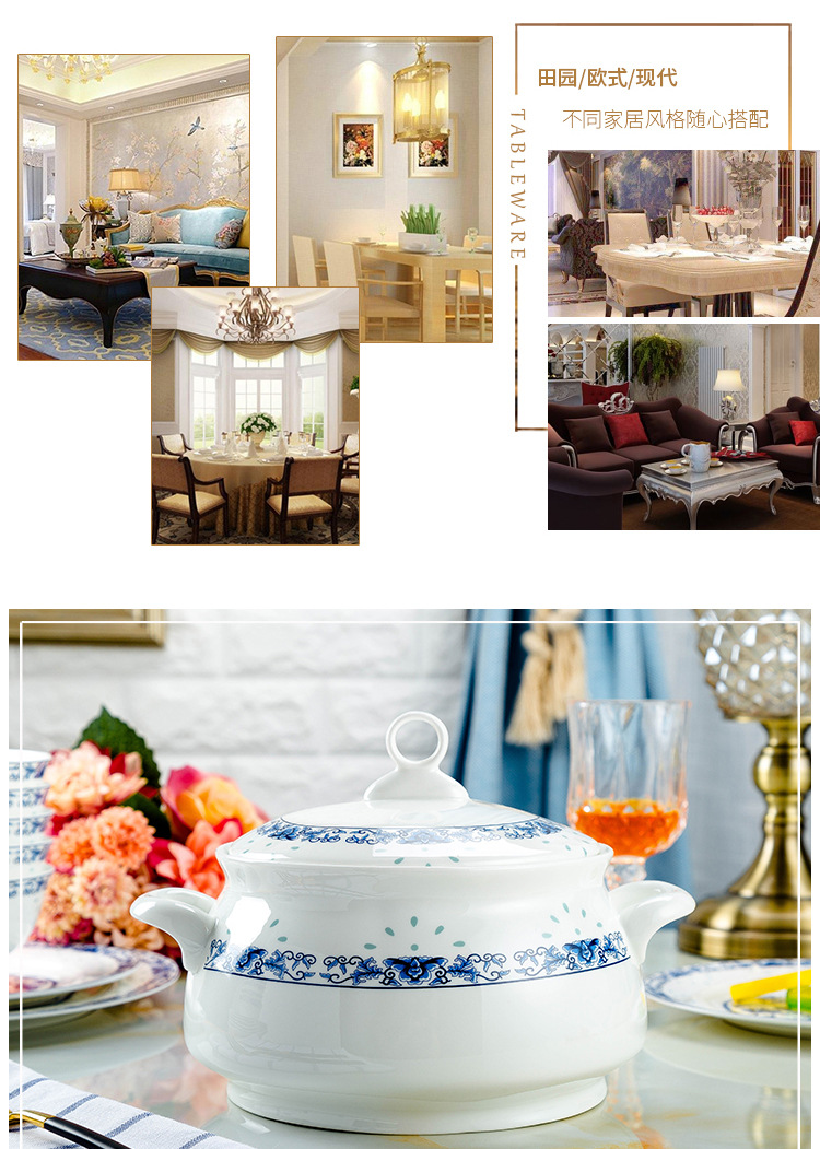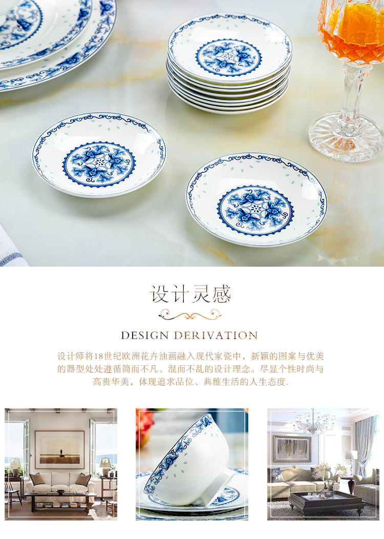景德镇高温青花釉 高温陶瓷玲珑餐具 收藏送礼碗碟盘骨瓷餐具套装