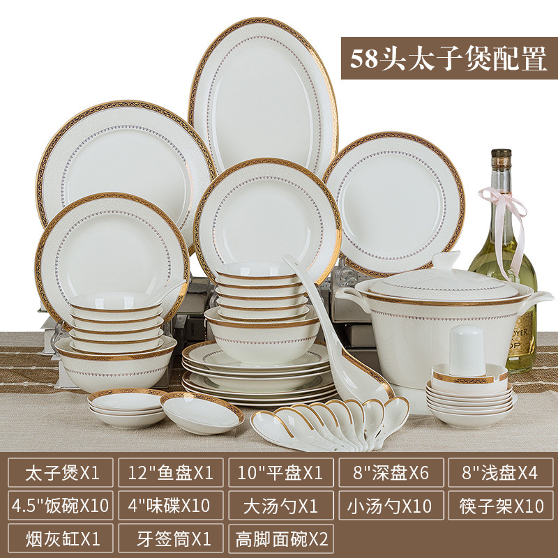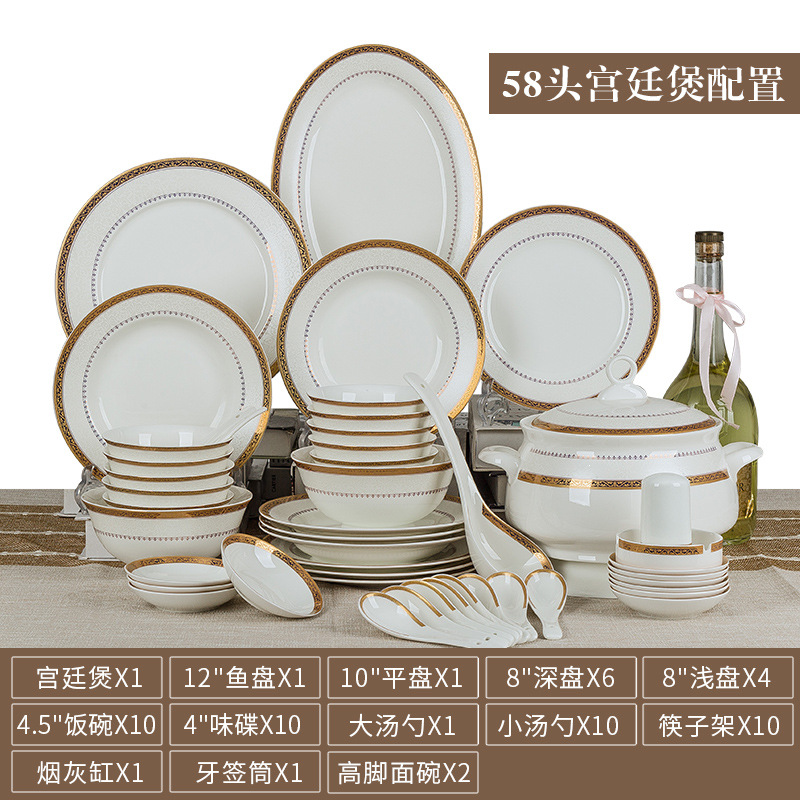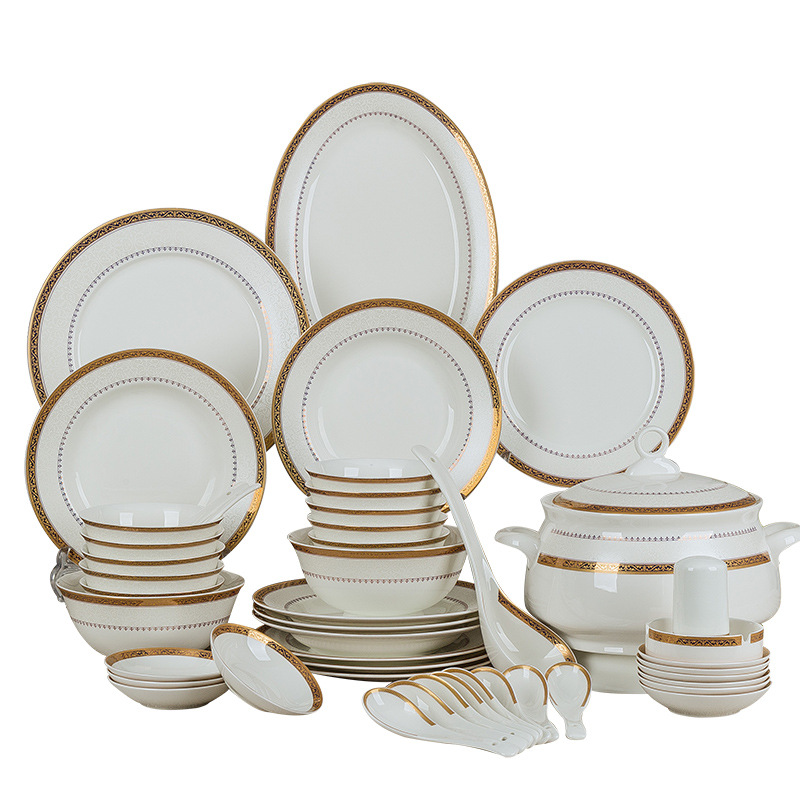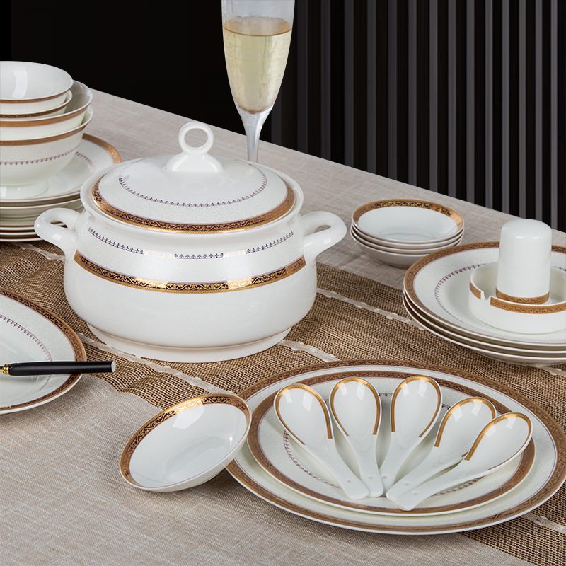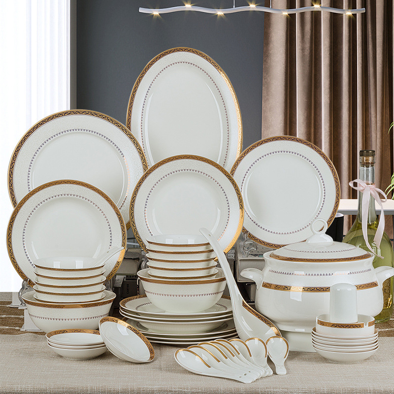 景德镇陶瓷餐具套装 欧式家用碗筷轻奢骨瓷碗碟盘 开业礼品碗批发