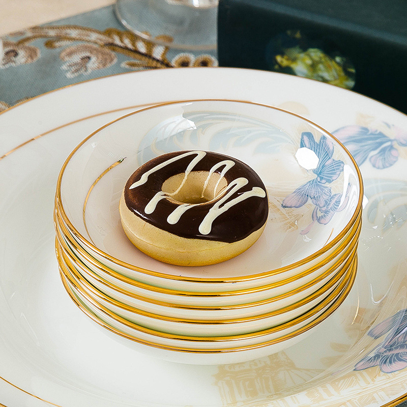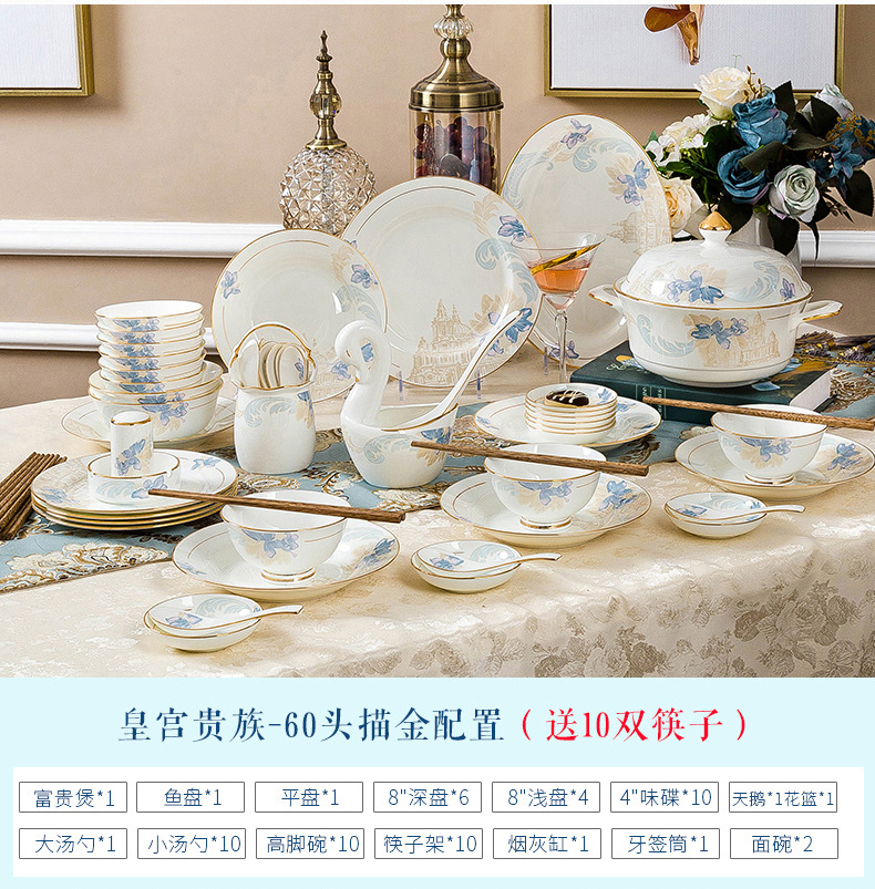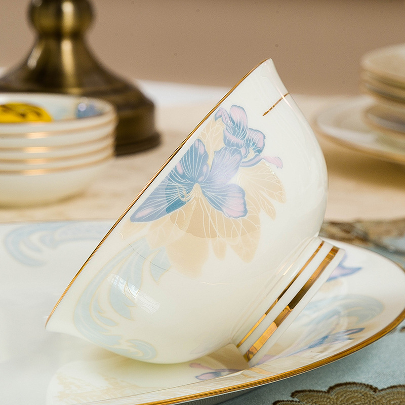 陶瓷餐具碗碟套装欧式景德镇骨瓷金边餐具筷创意礼品盘子可印LOGO