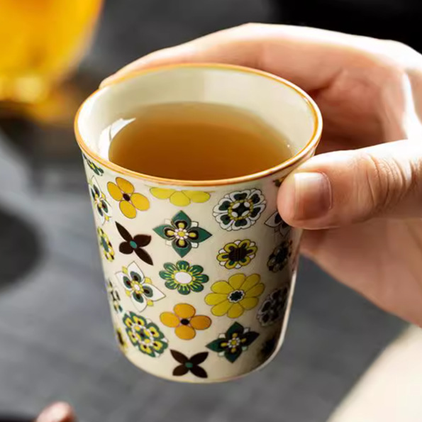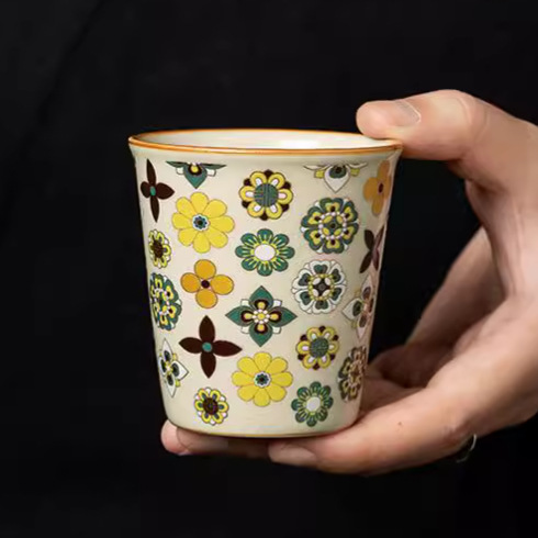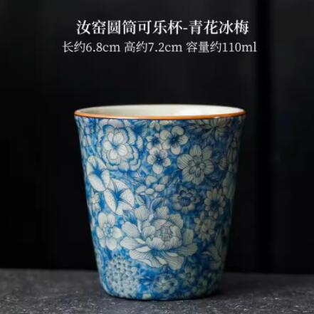 汝窑茶杯主人杯陶瓷可乐杯饮料杯个人杯宝相花单杯创意水杯大茶杯