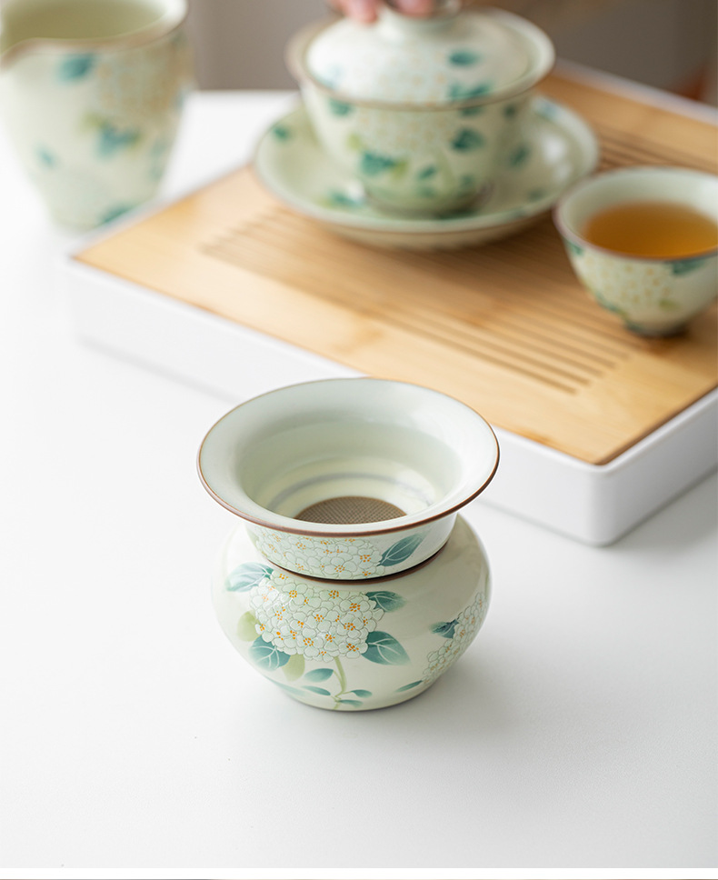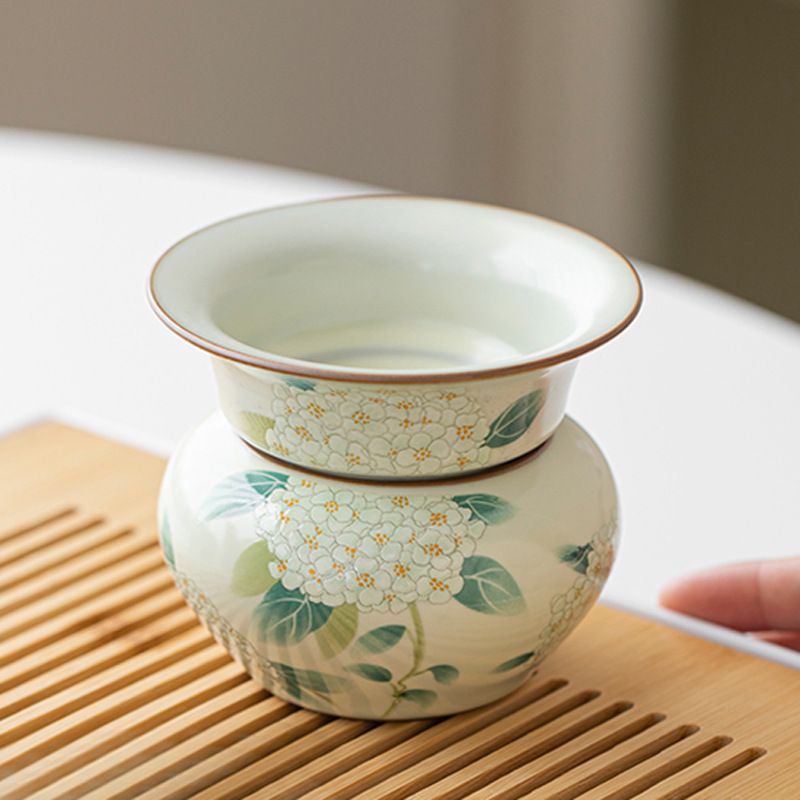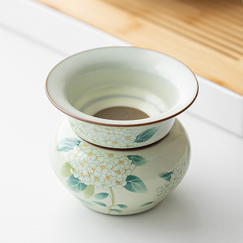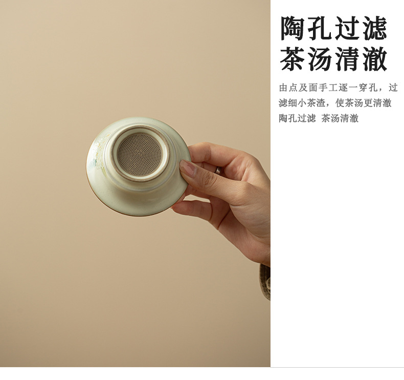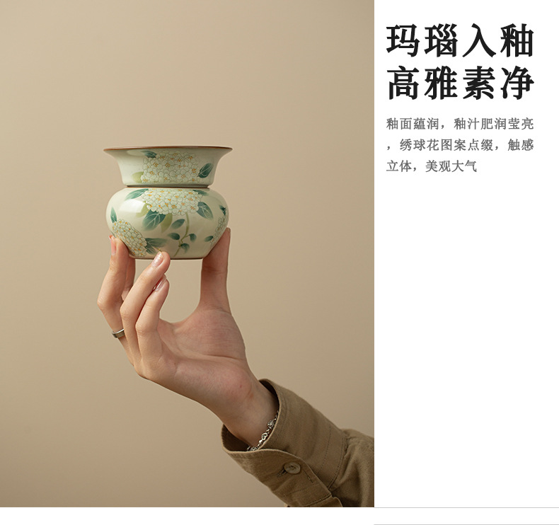 绣球花汝瓷茶滤陶瓷茶漏茶隔茶叶茶渣过滤一体打孔汝窑功夫滤茶器