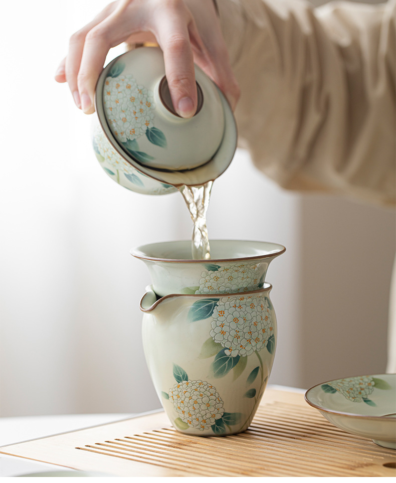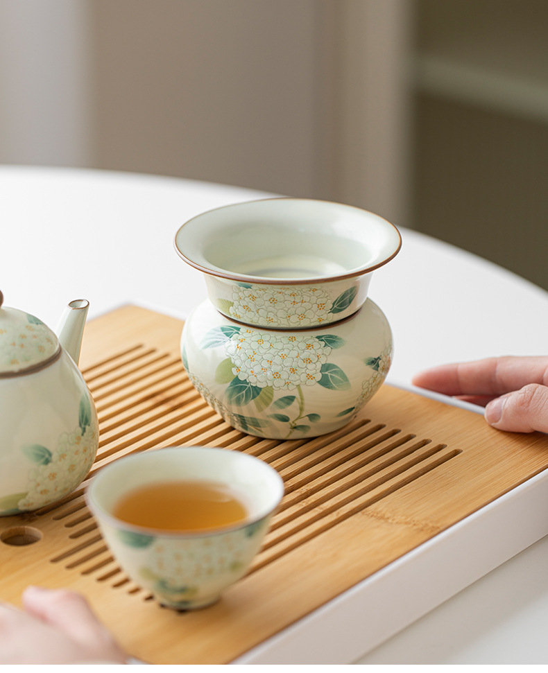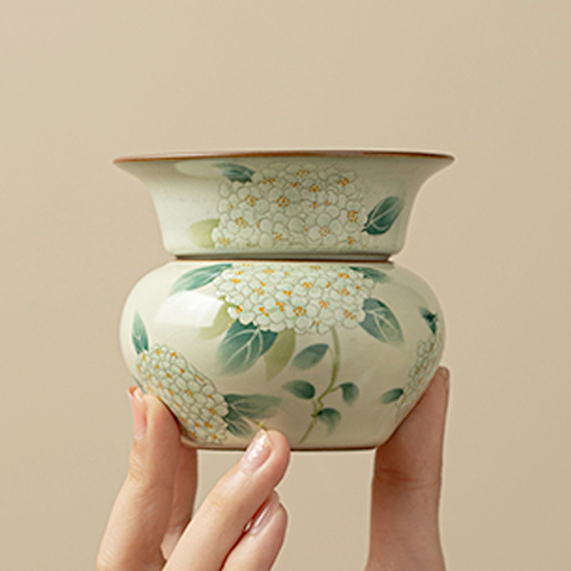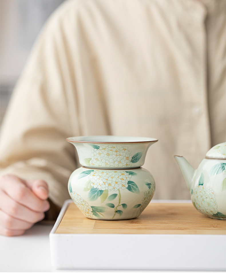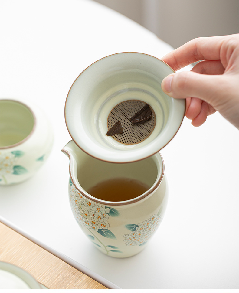 绣球花汝瓷茶滤陶瓷茶漏茶隔茶叶茶渣过滤一体打孔汝窑功夫滤茶器