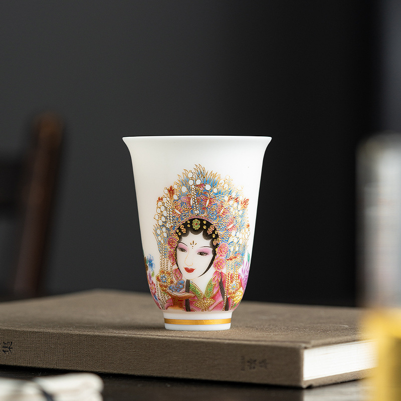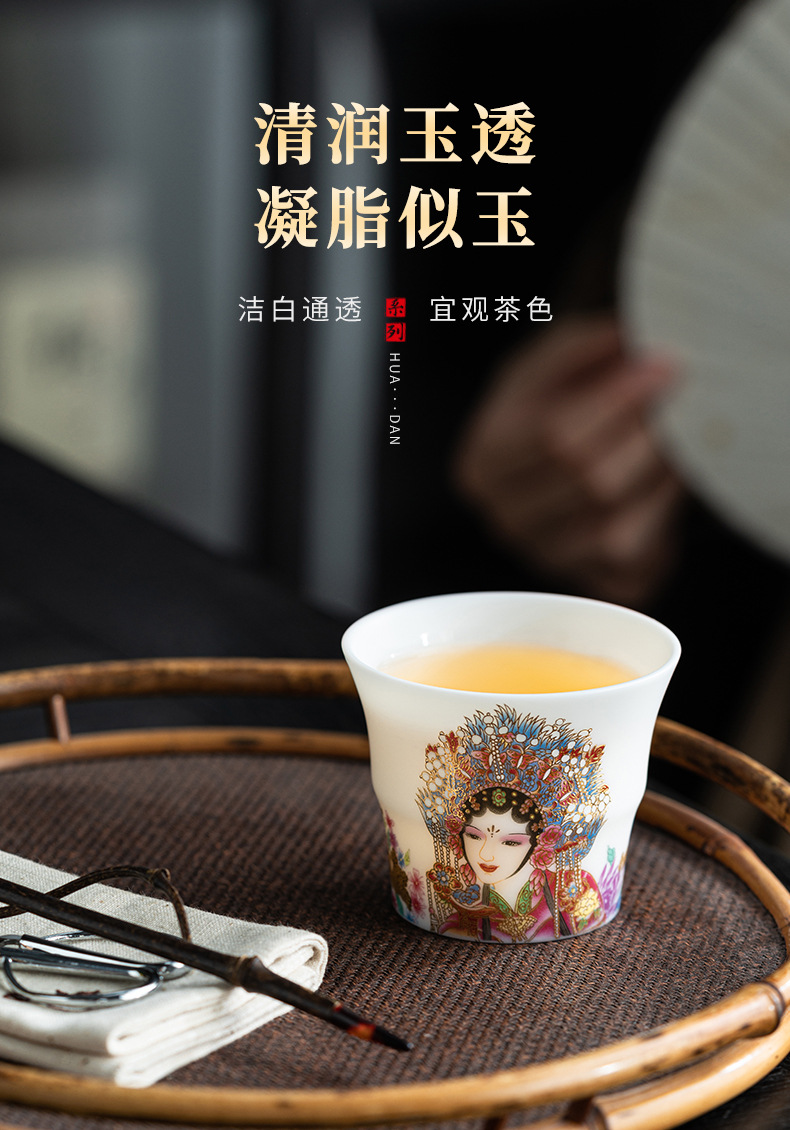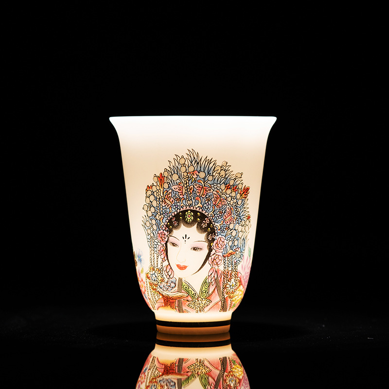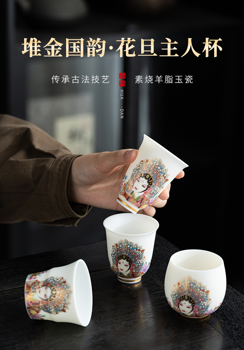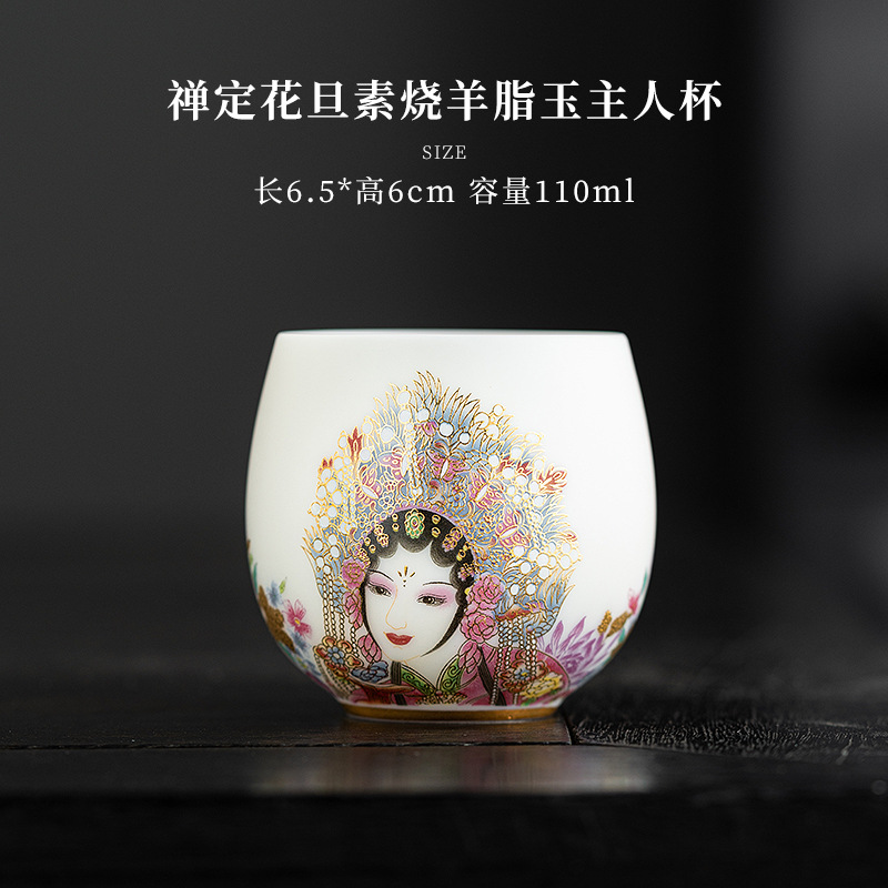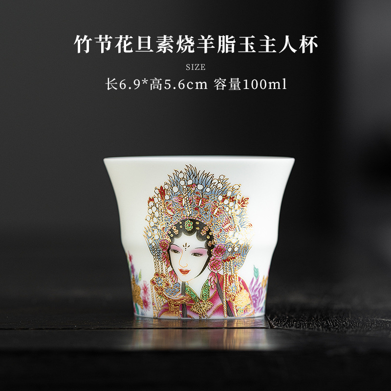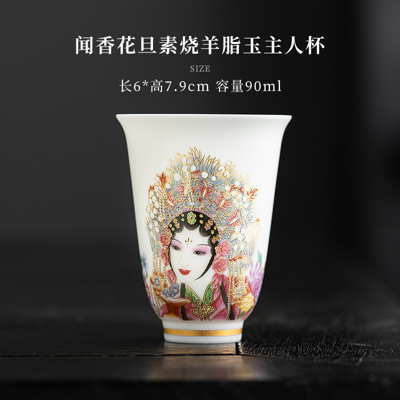 高端羊脂玉素烧闻香杯主人杯中式复古京剧花旦杯高款茶杯酒杯单杯