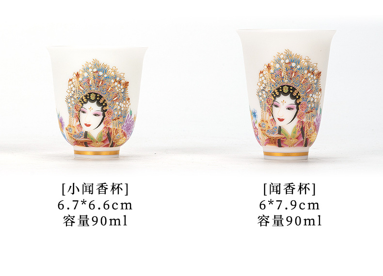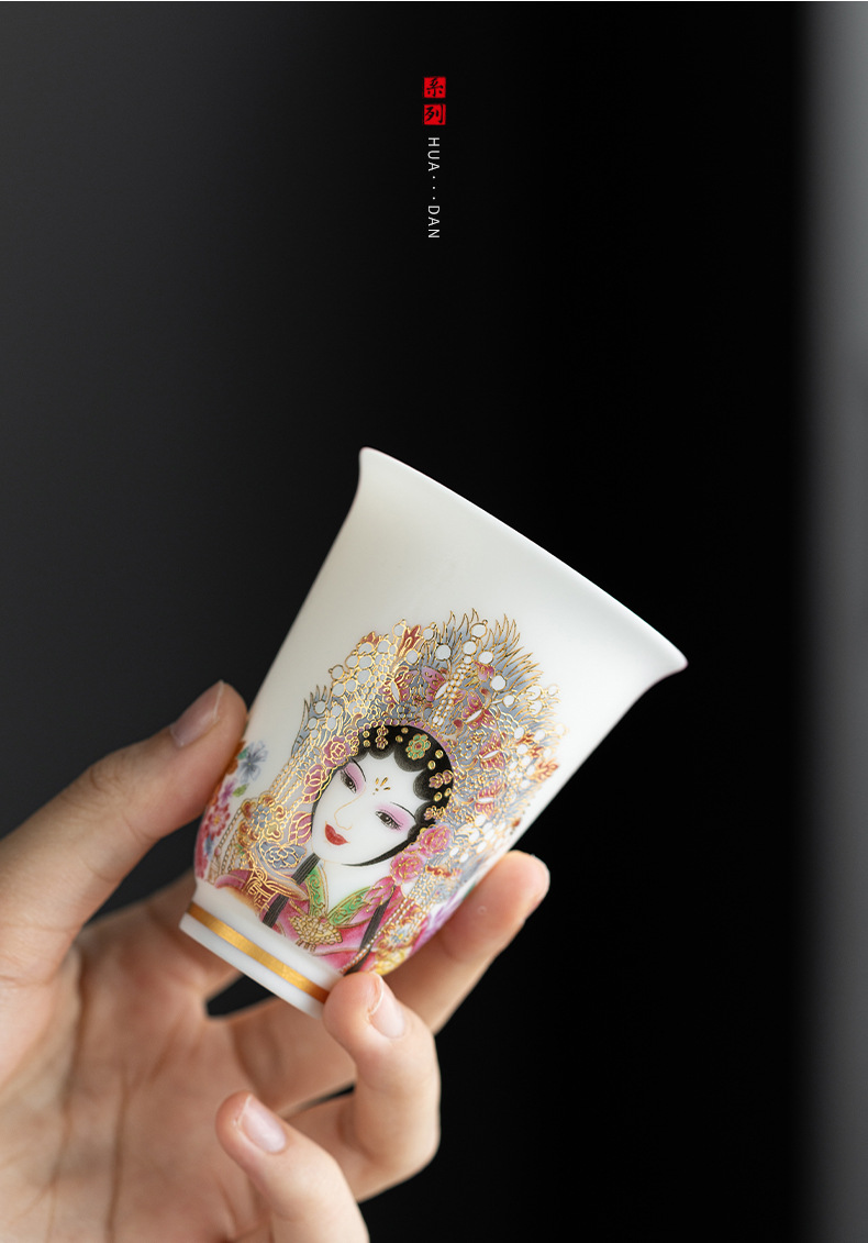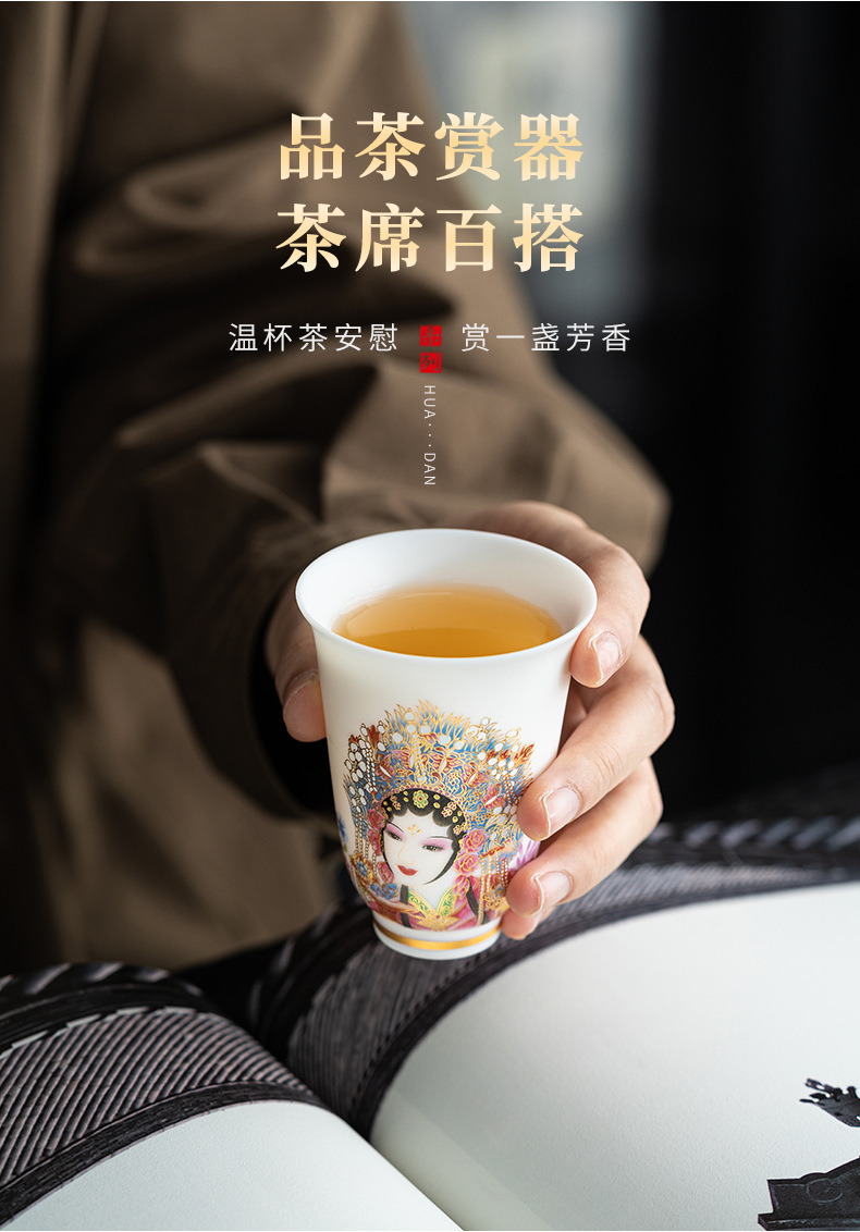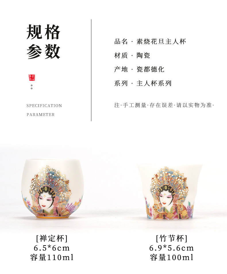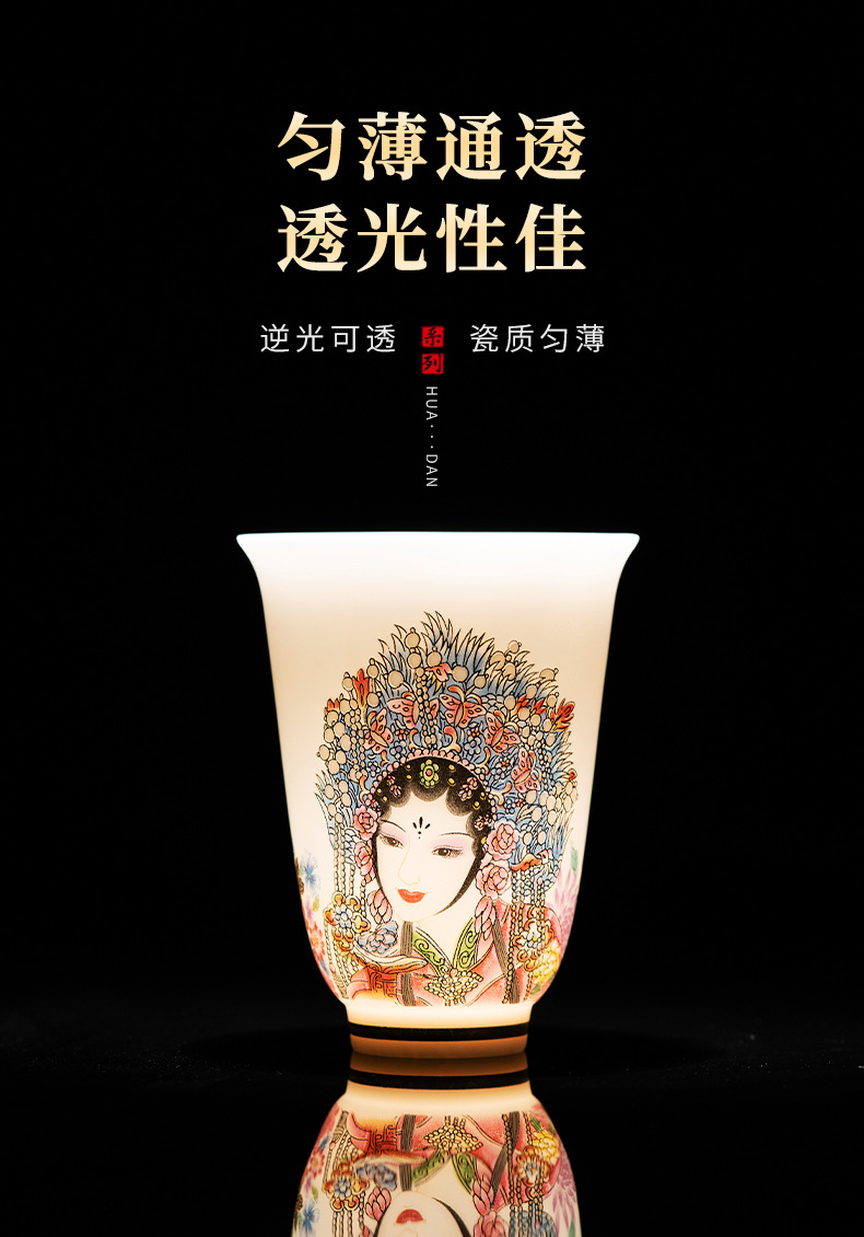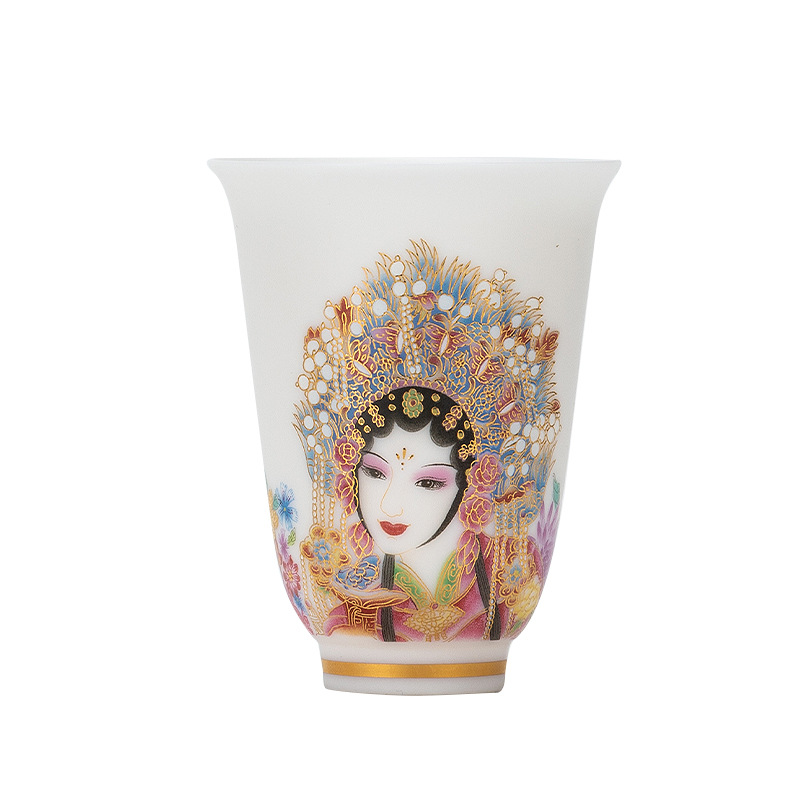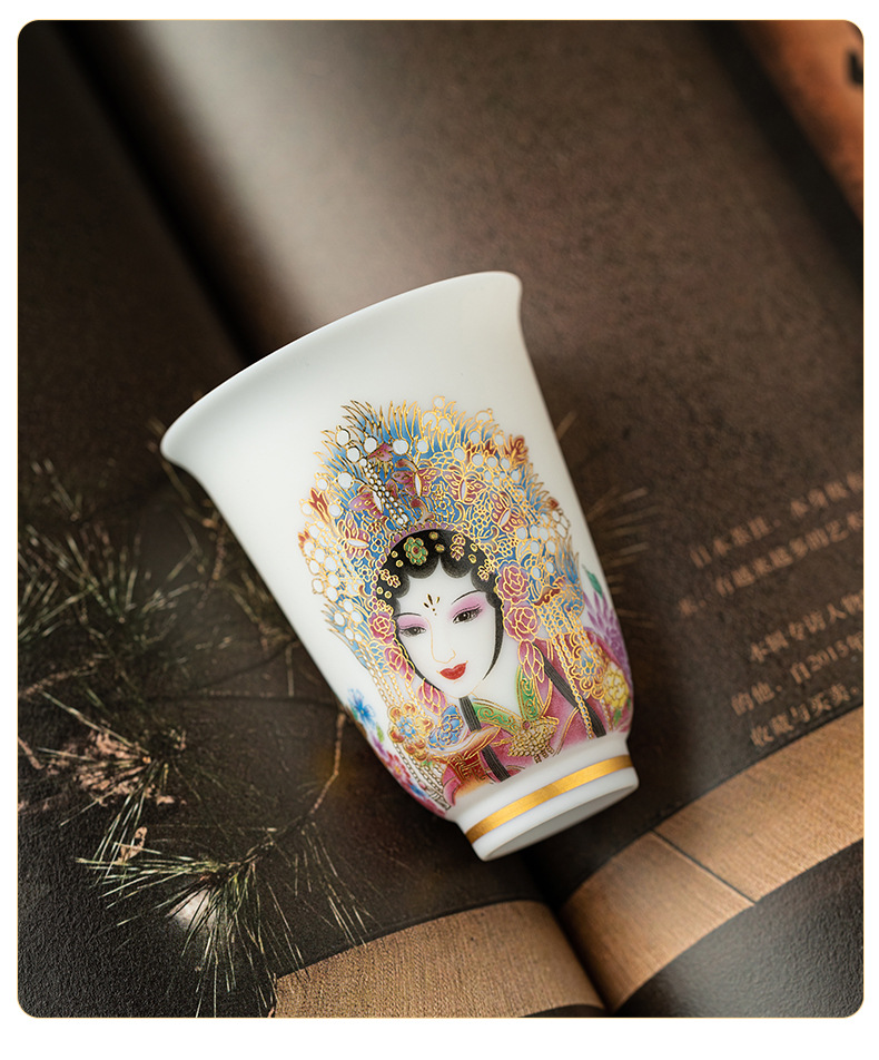 高端羊脂玉素烧闻香杯主人杯中式复古京剧花旦杯高款茶杯酒杯单杯