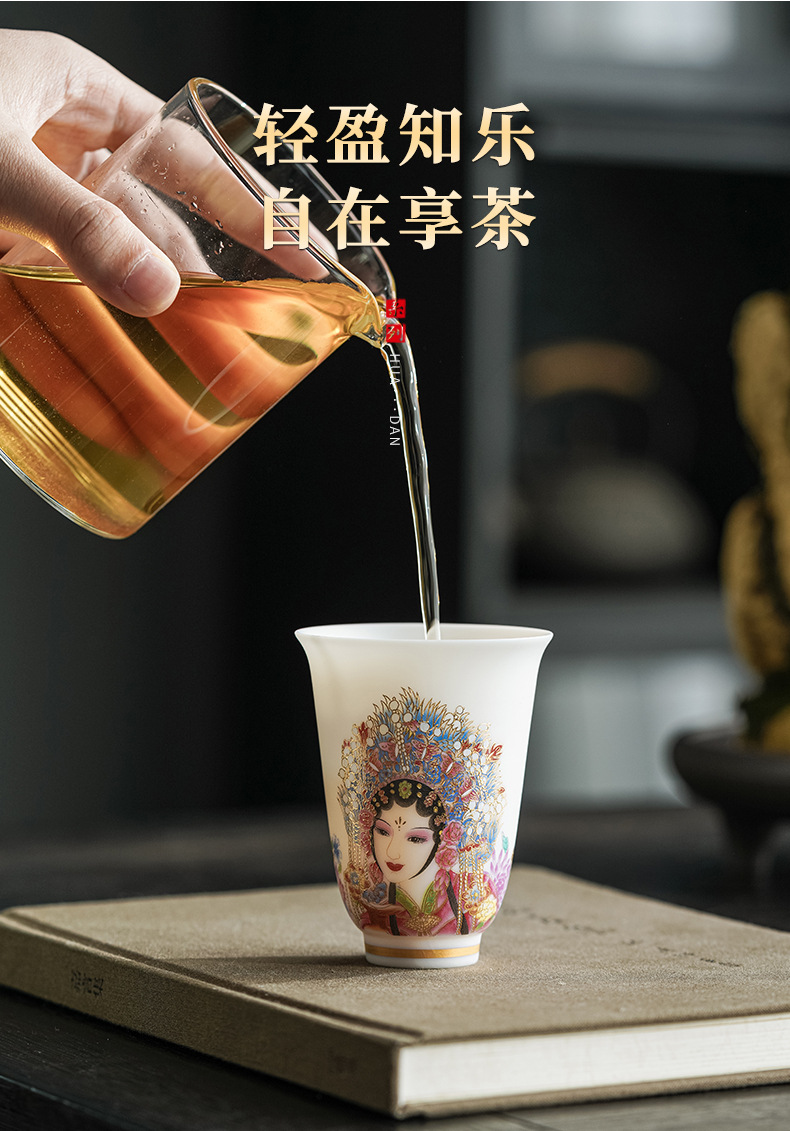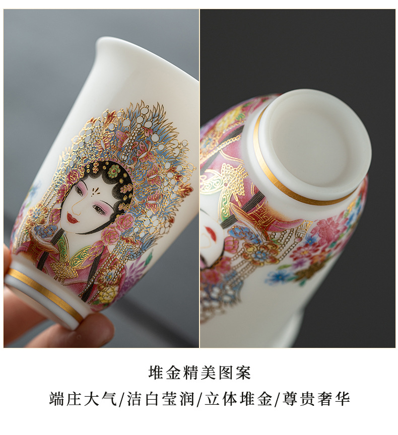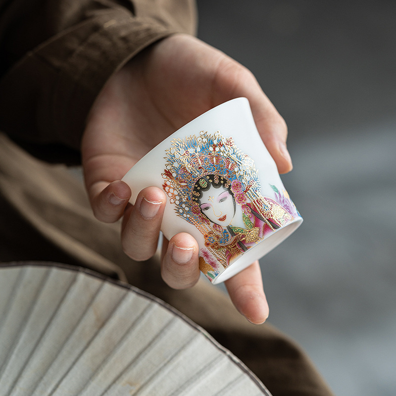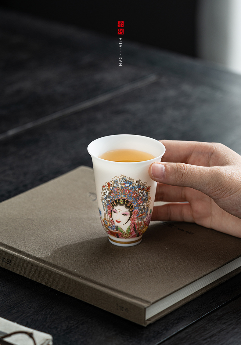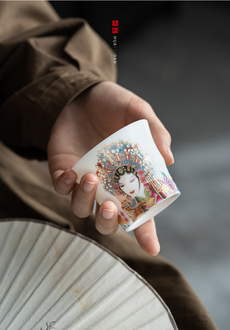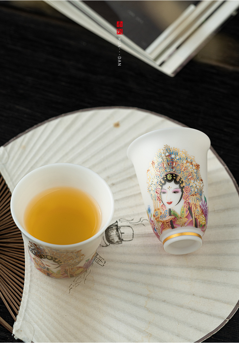 高端羊脂玉素烧闻香杯主人杯中式复古京剧花旦杯高款茶杯酒杯单杯