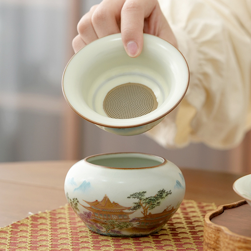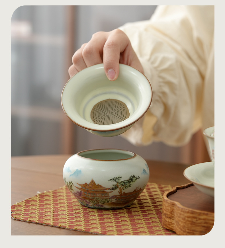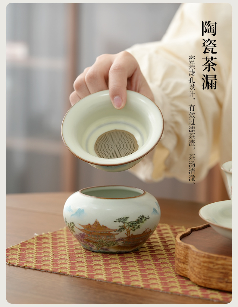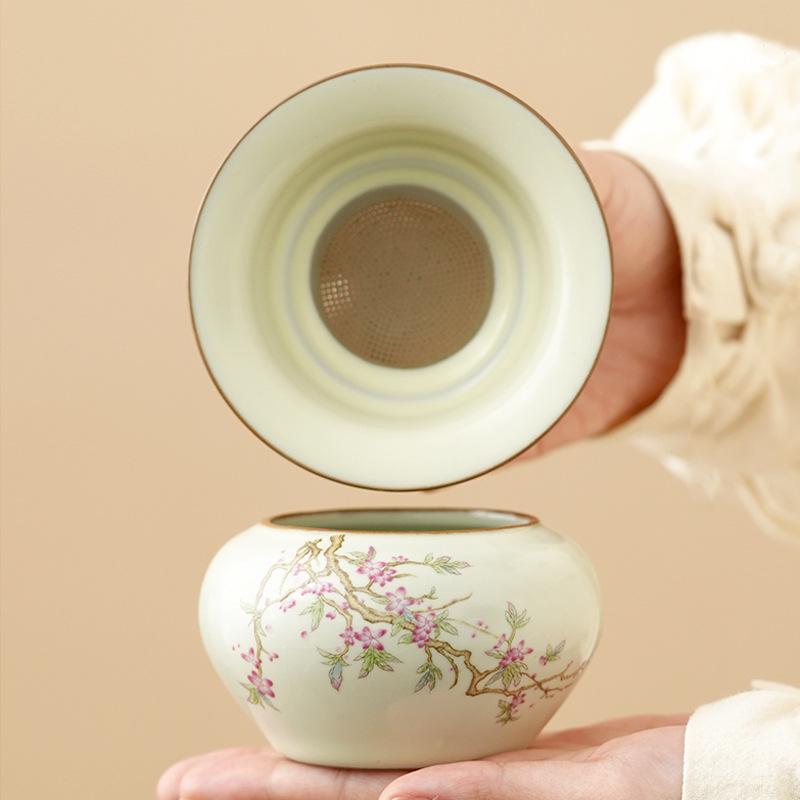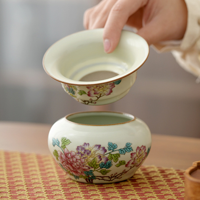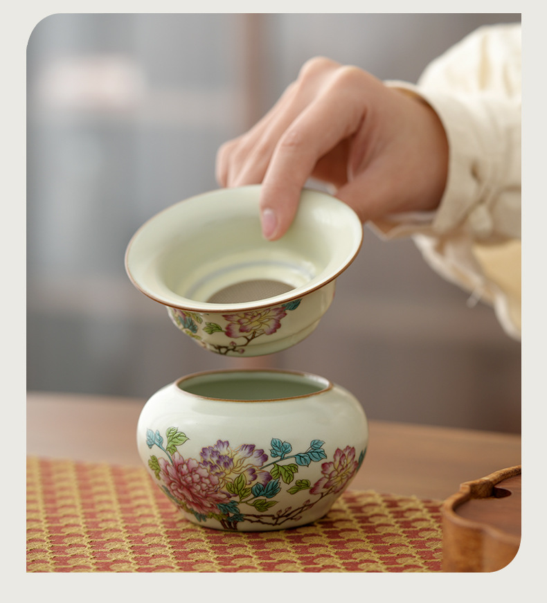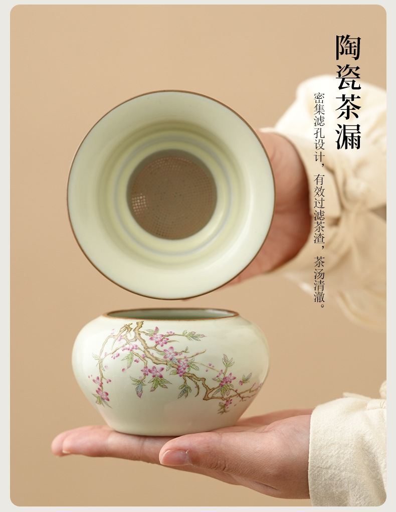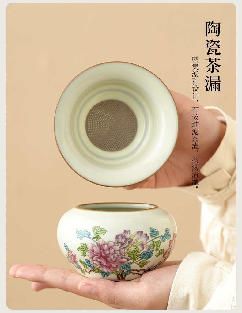 开片黄汝牡丹花汝窑茶漏茶滤一体茶叶过滤网泡茶神器茶隔茶配