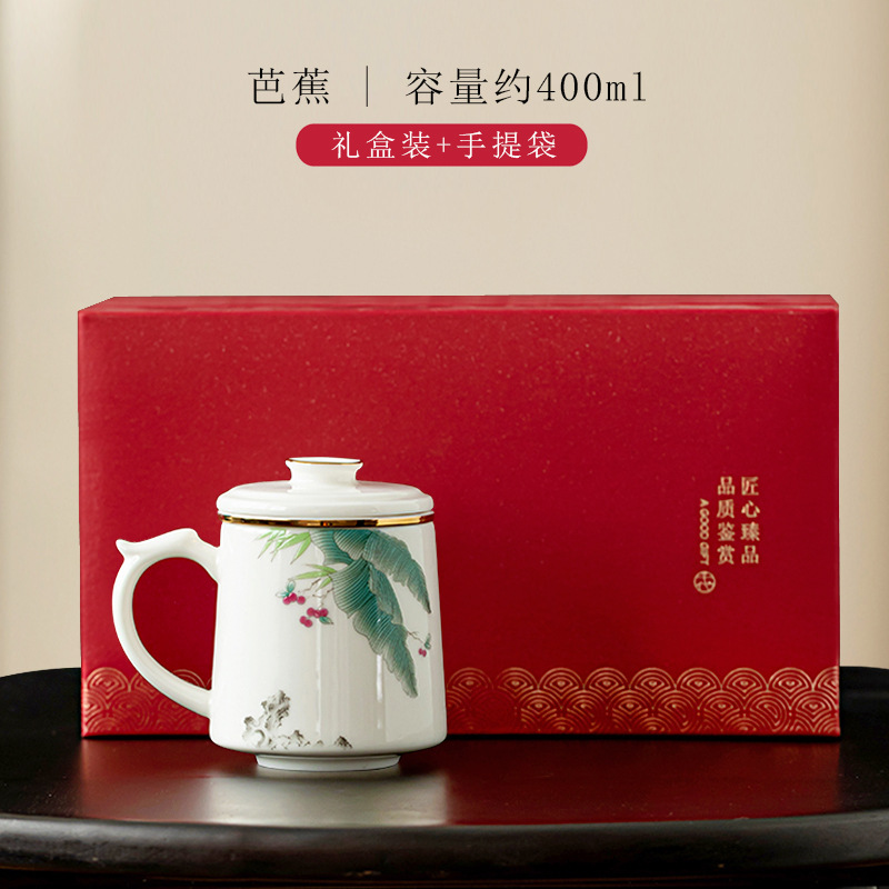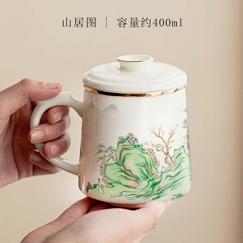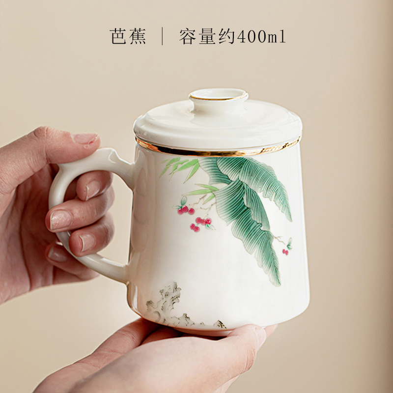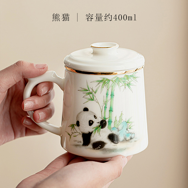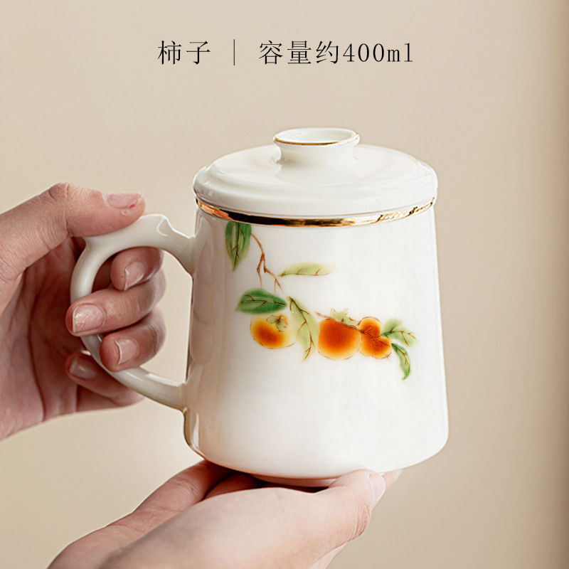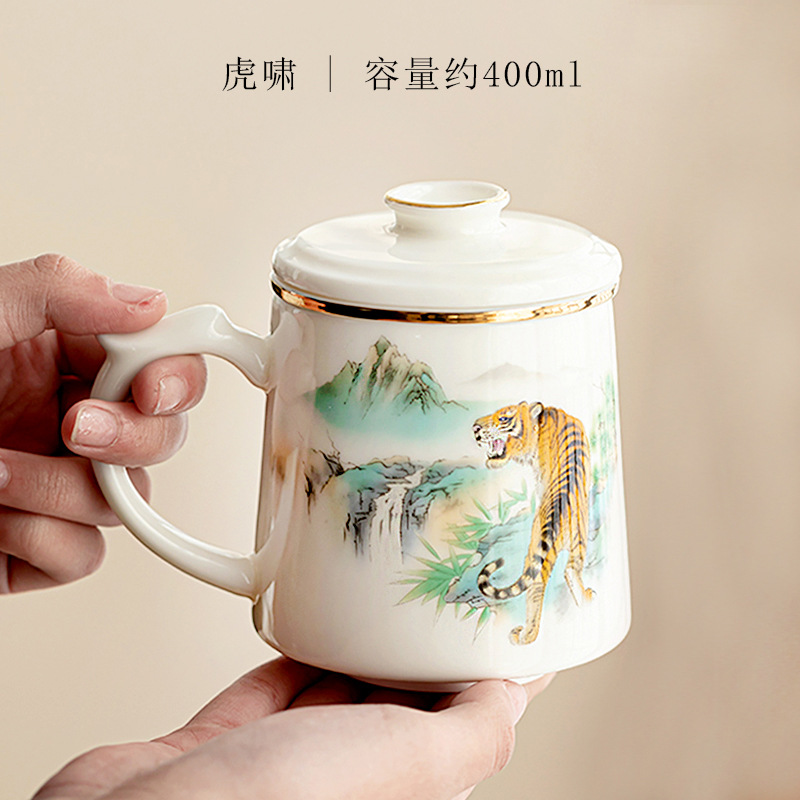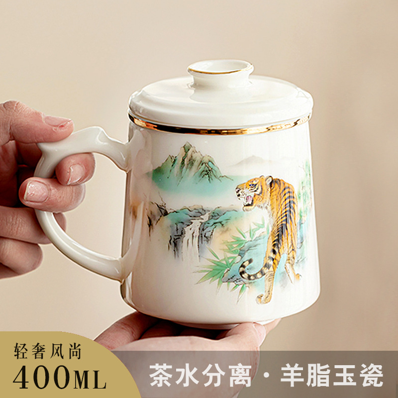陶瓷茶水分离泡茶杯子个人办公室过滤茶杯羊脂玉带盖马克水杯礼品