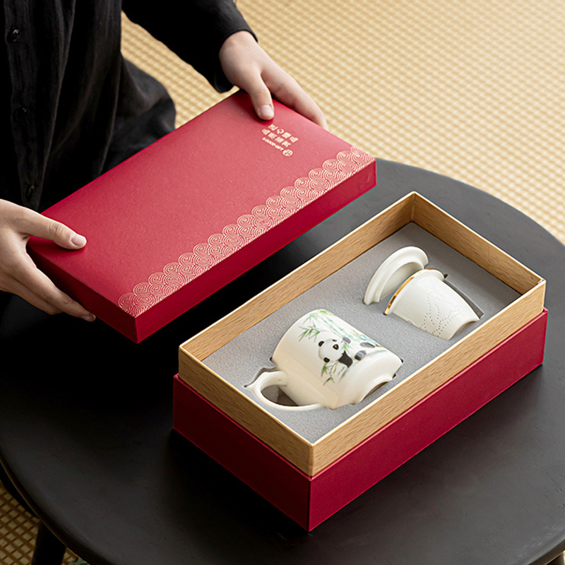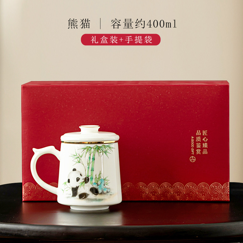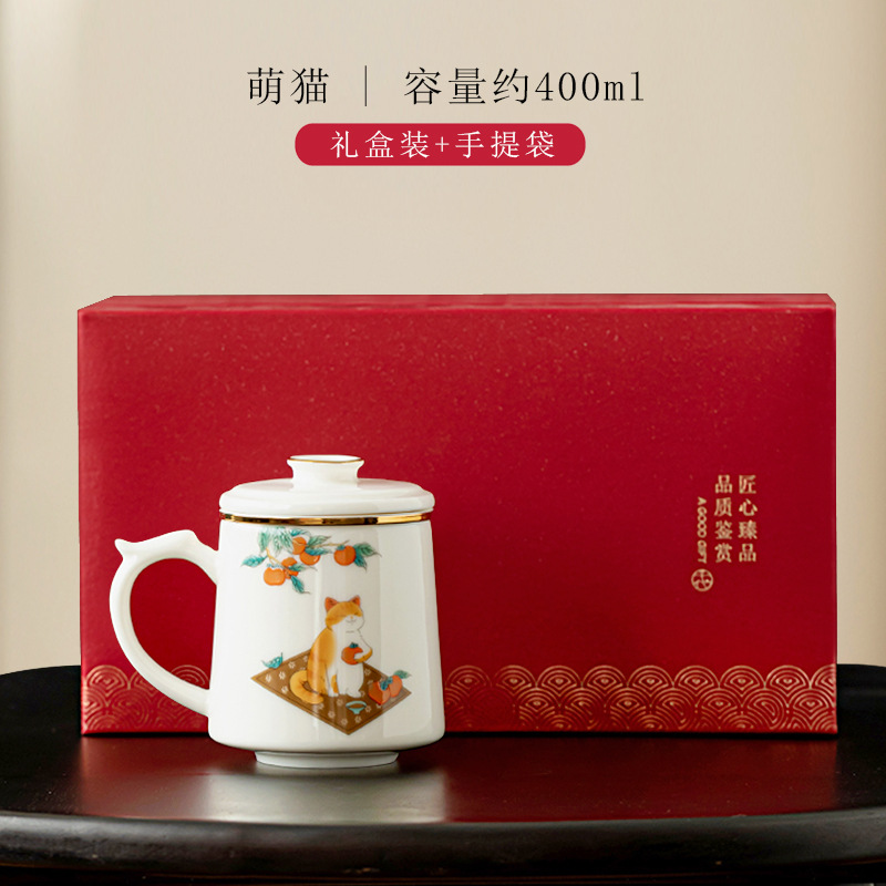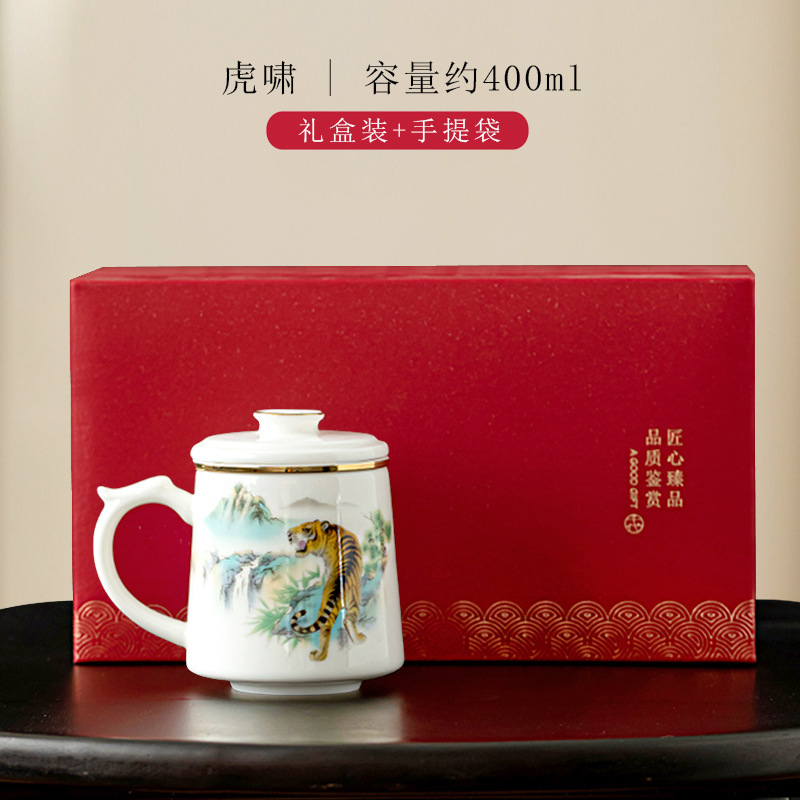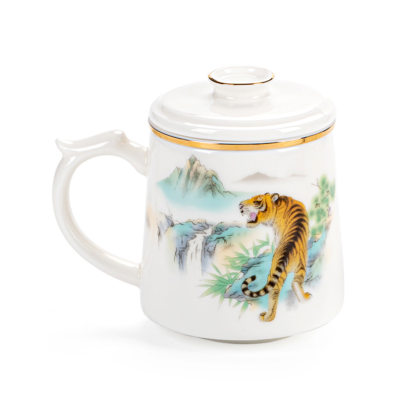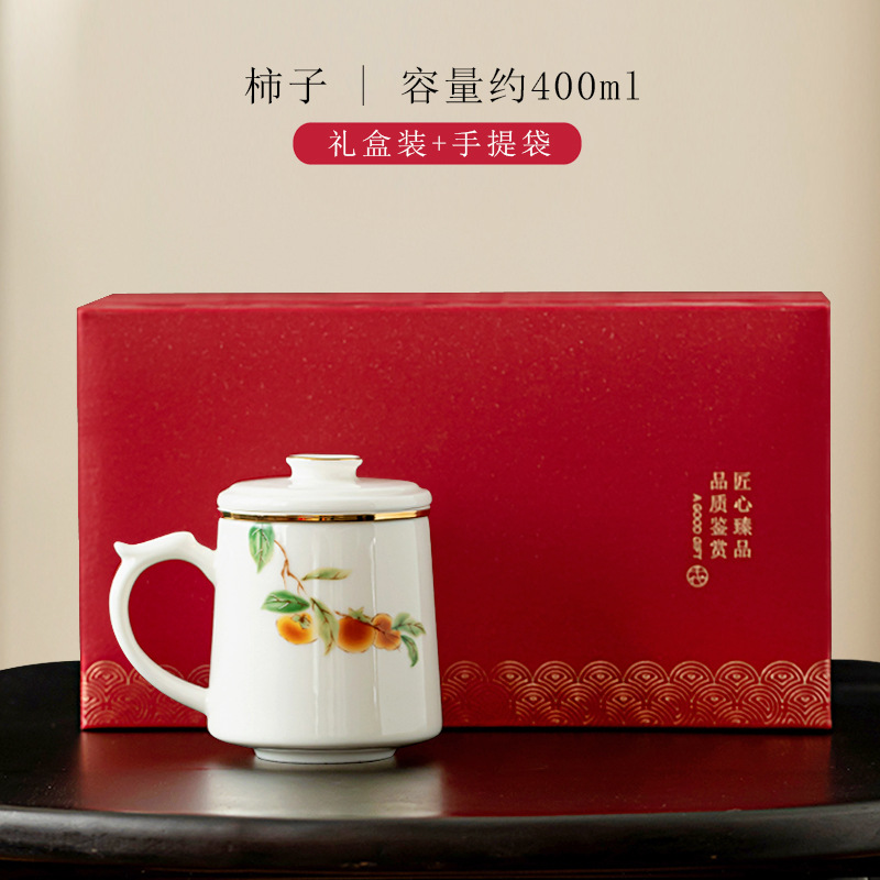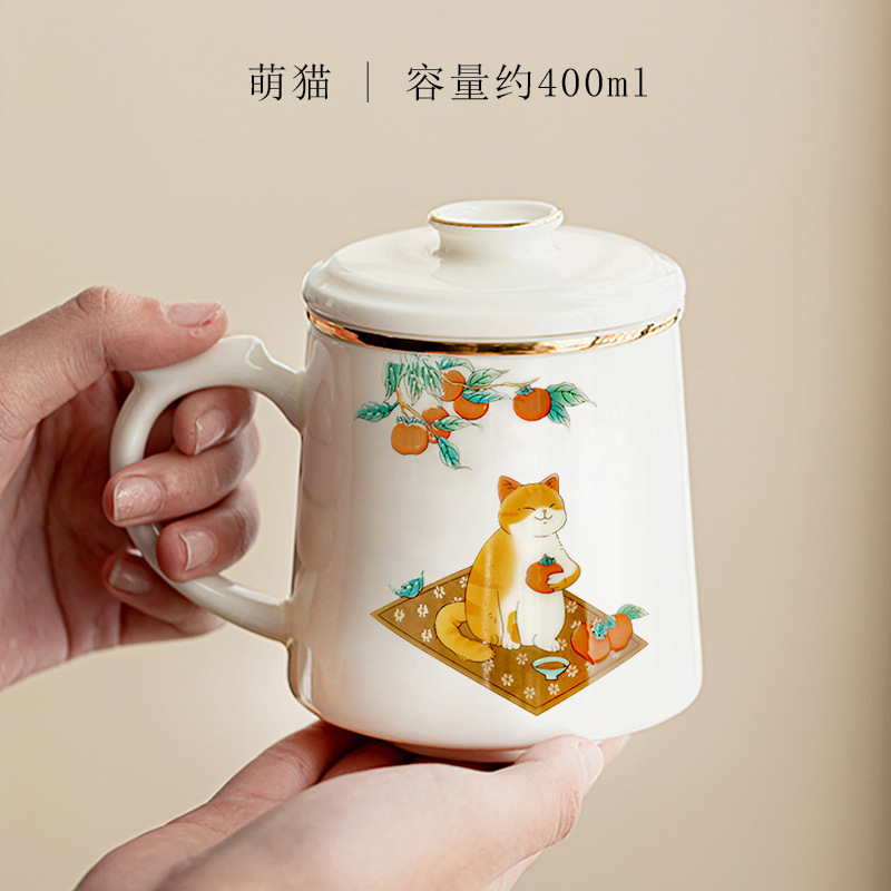 陶瓷茶水分离泡茶杯子个人办公室过滤茶杯羊脂玉带盖马克水杯礼品