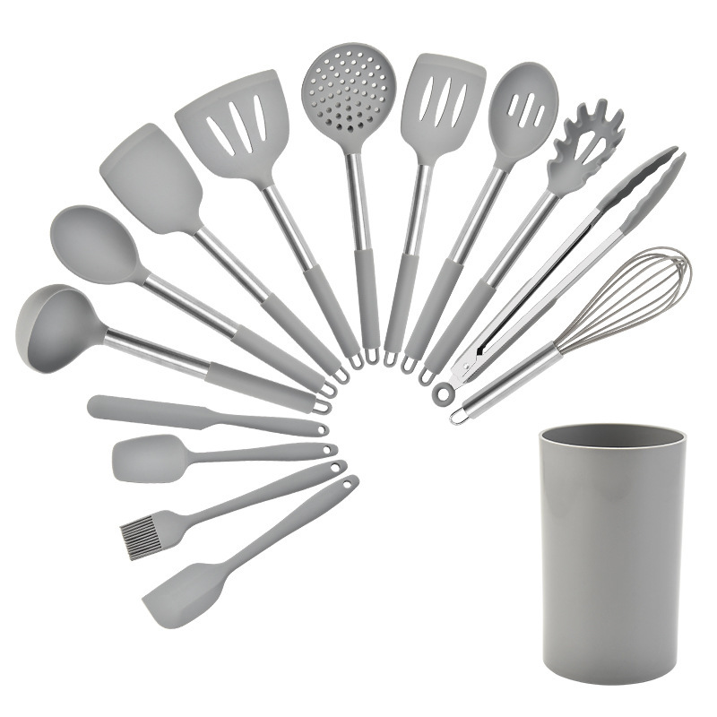 硅胶厨具14件套管柄硅胶铲硅胶汤勺厨具套装食品级耐高温硅胶锅铲