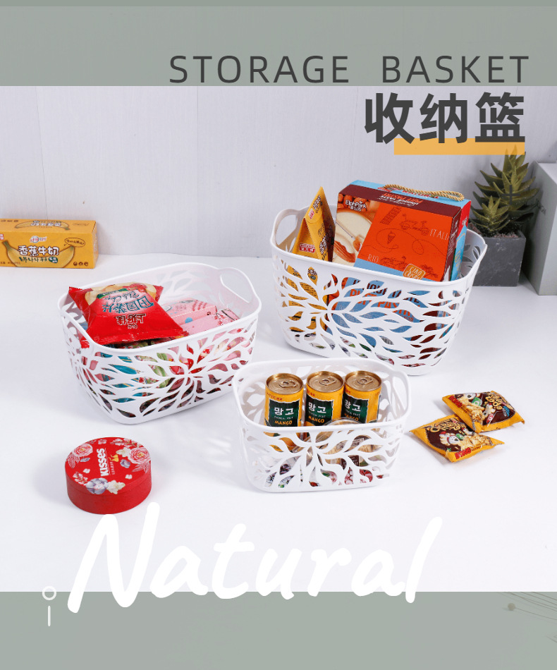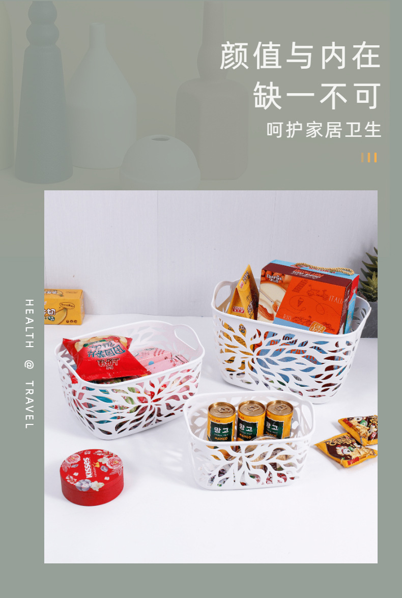 仿藤编塑料收纳筐桌面茶几储物盒 镂空带盖卧室杂物整理置物篮