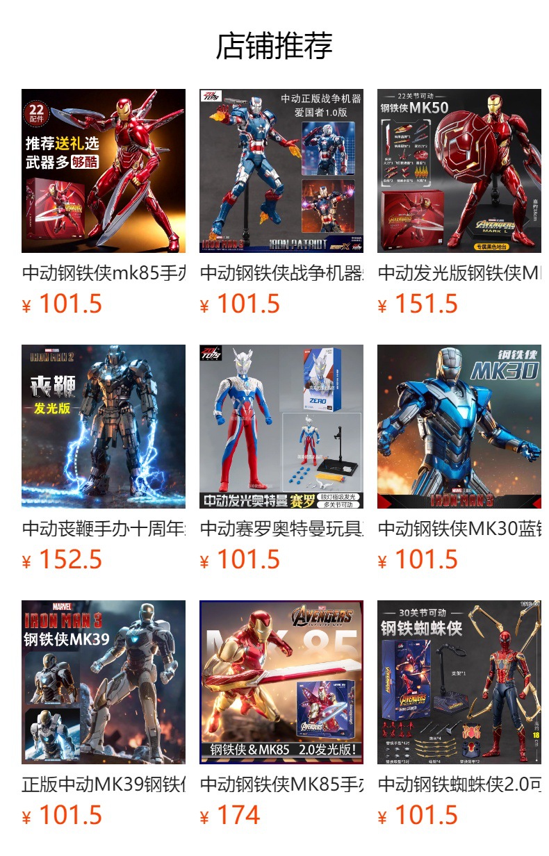 中动漫威复仇者联盟7寸MK85钢铁蜘蛛侠手办公仔摆件玩具美国队长