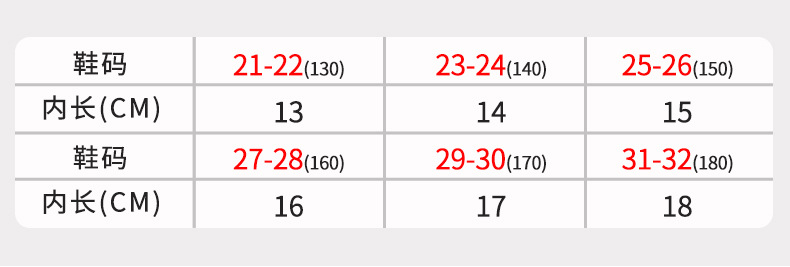 | 31-32码适合脚长17.5cm约5岁半 | USD $1.28 | 8303 piece available |