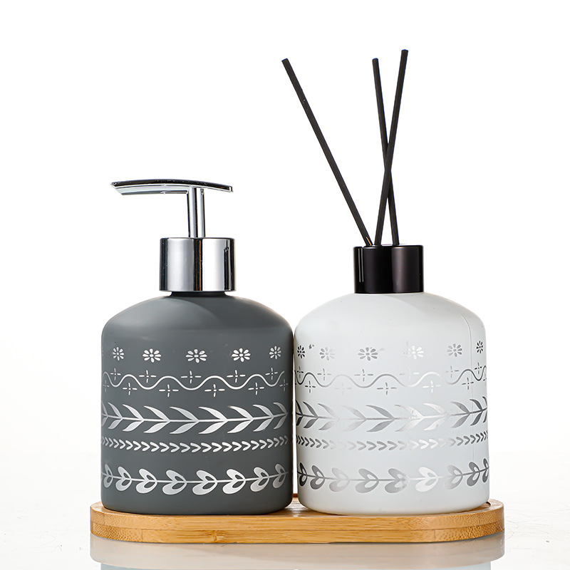 小巧按压式化妆品分装花纹洗发水沐浴露仿瓷洗手液瓶子乳液空瓶