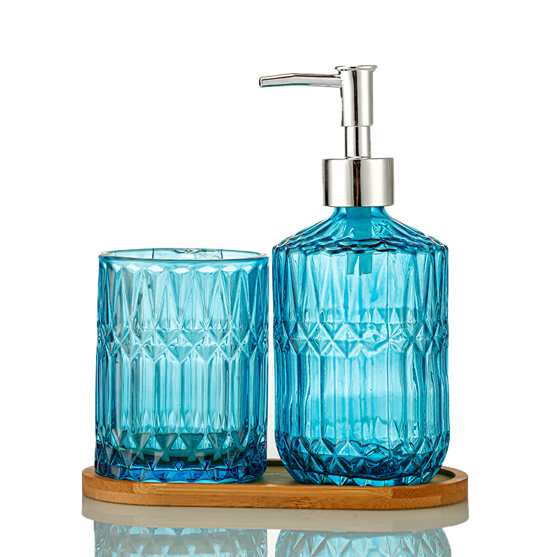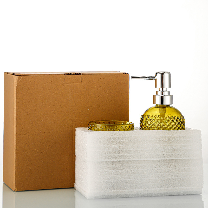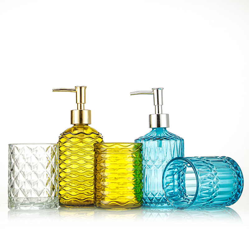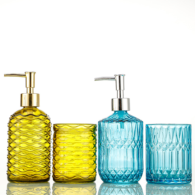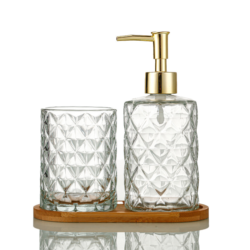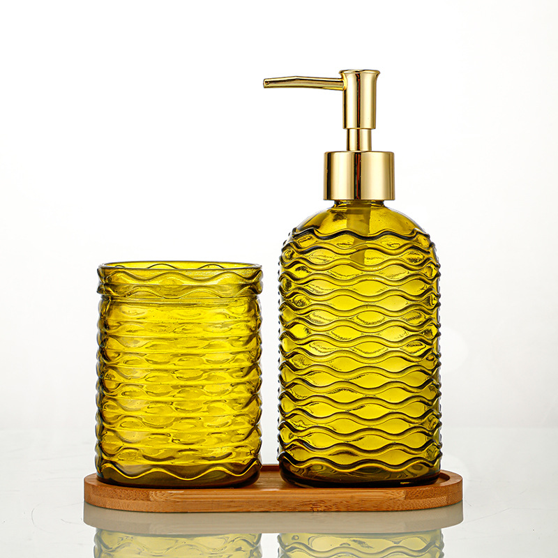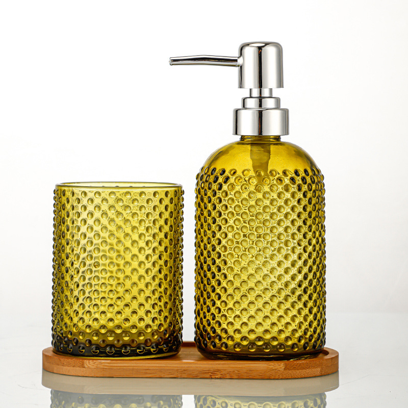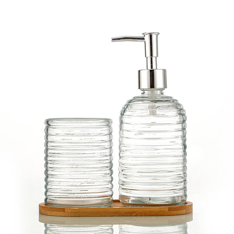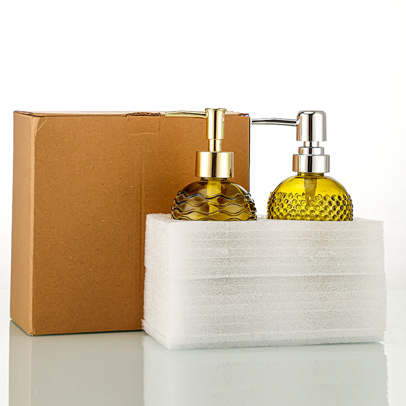批发按压两只装套装圆形洗手液瓶玻璃皂液分装卫浴用洗发沐浴露瓶