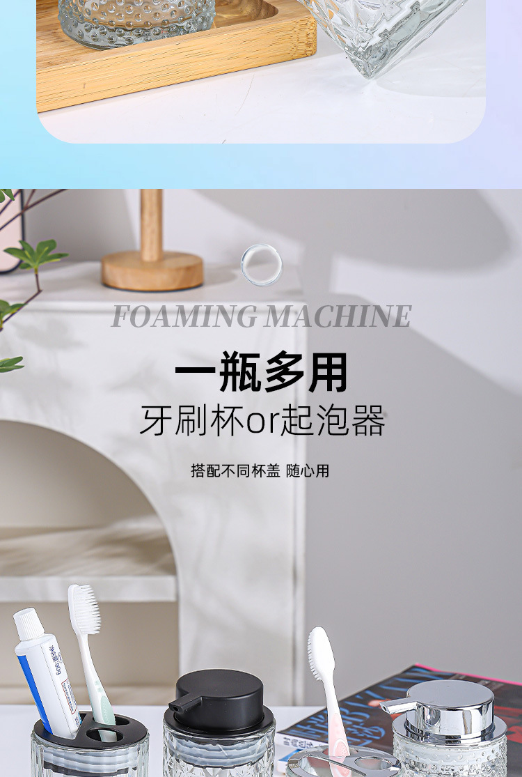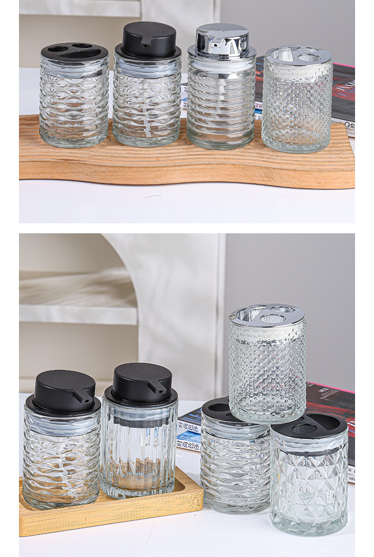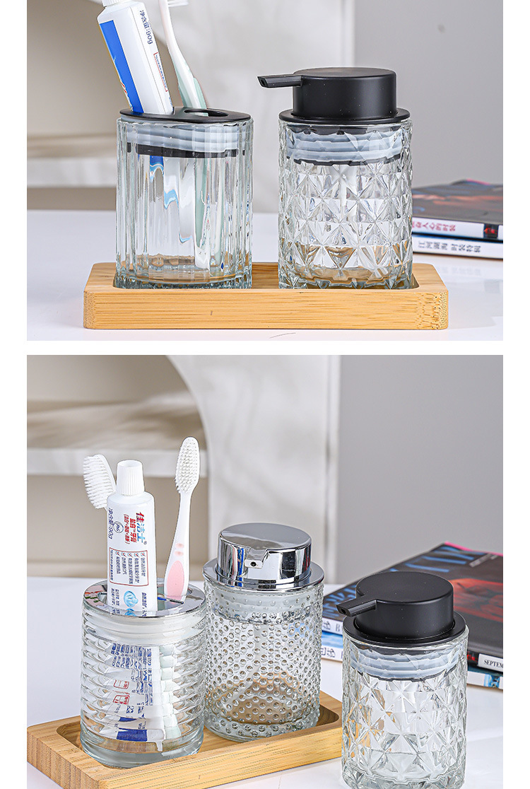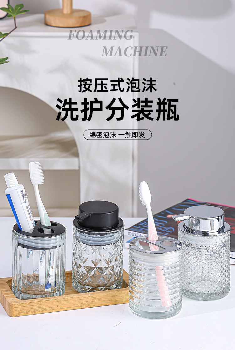 牙刷杯套装按压圆形洗手液瓶瓷玻璃皂液分装卫浴用洗发露沐浴露瓶