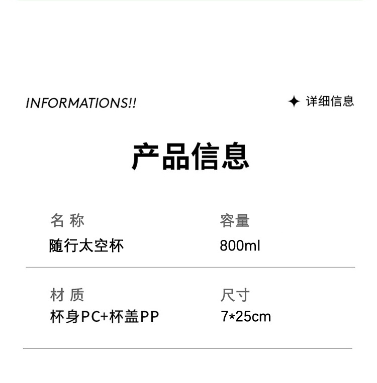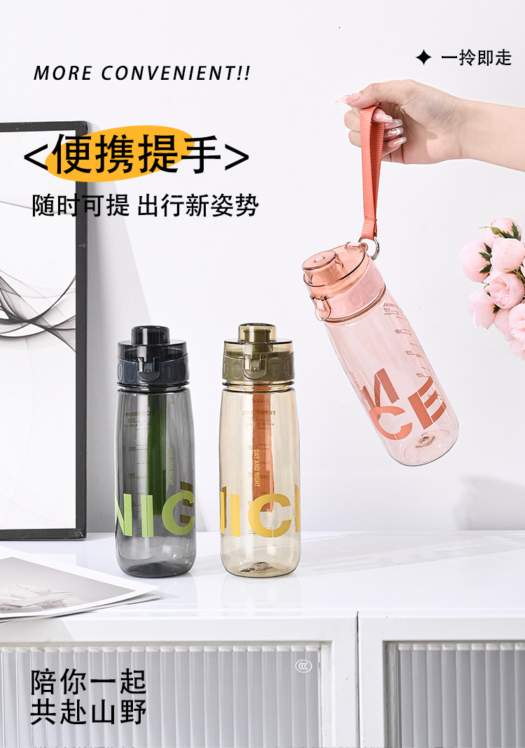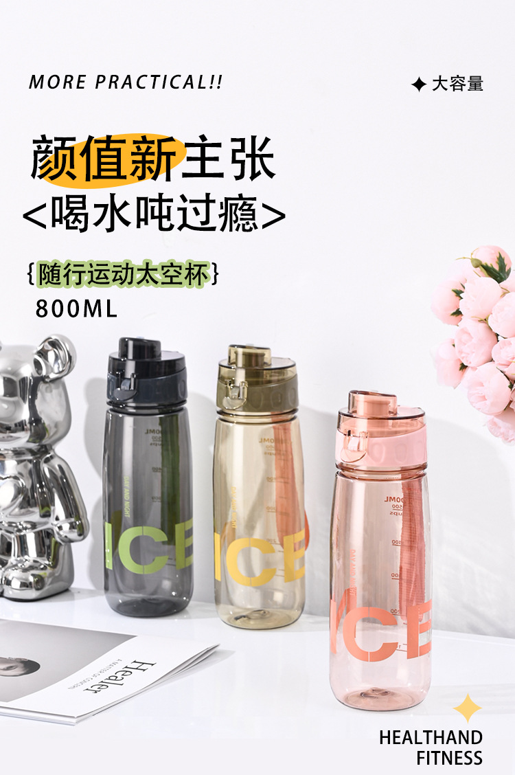 简约耐高温800ml 学生便携随手运动提手 太空杯夏季创意 塑料水杯
