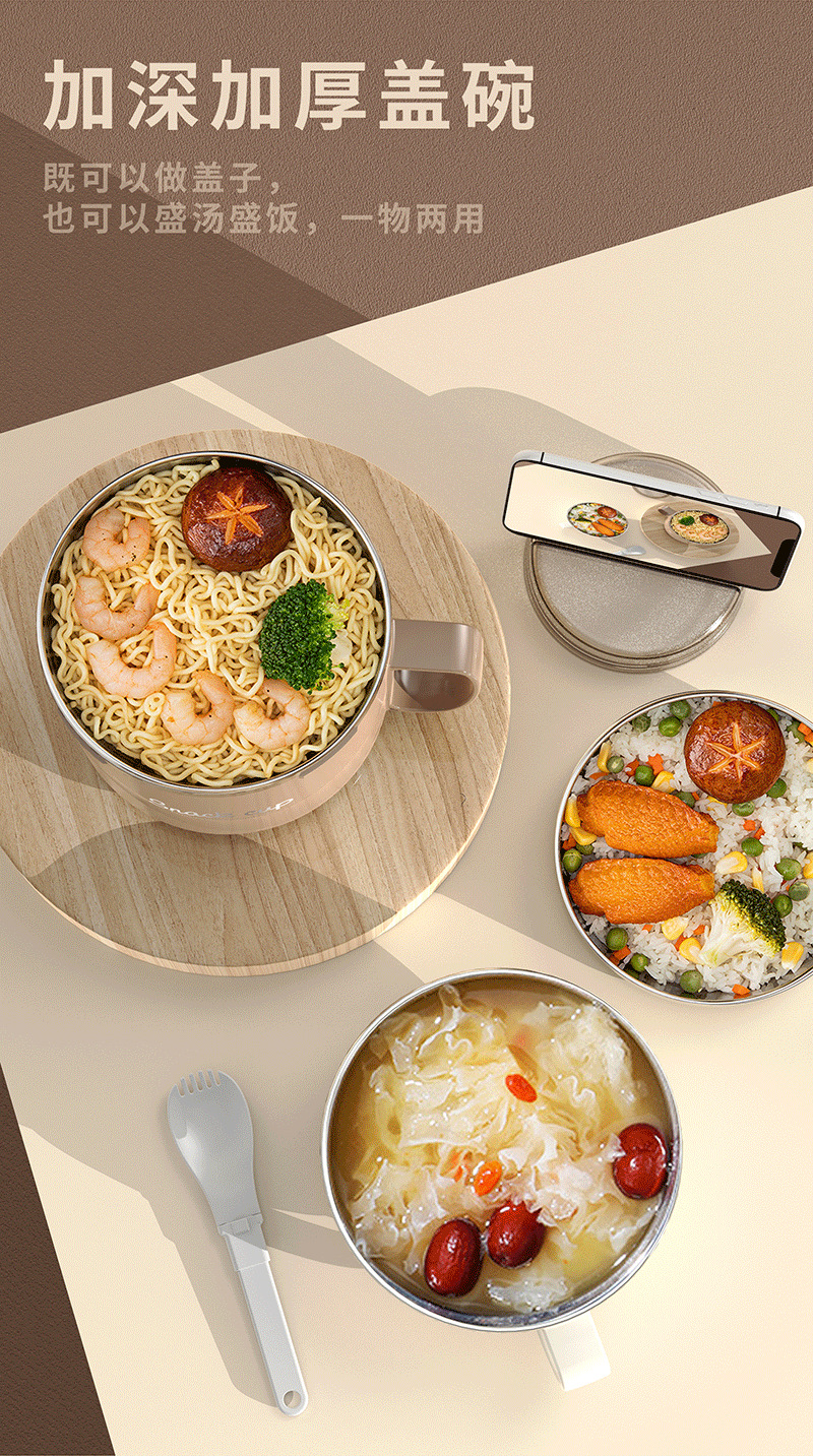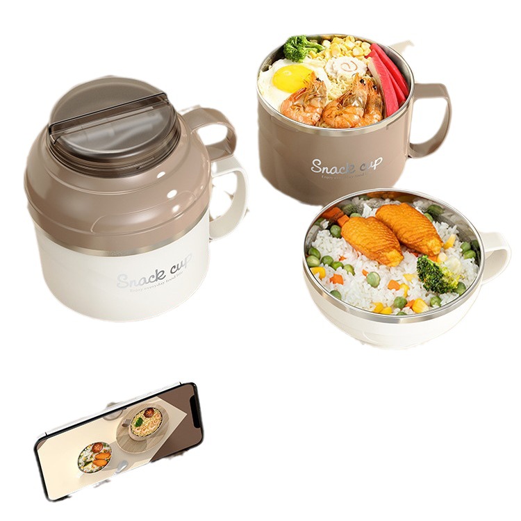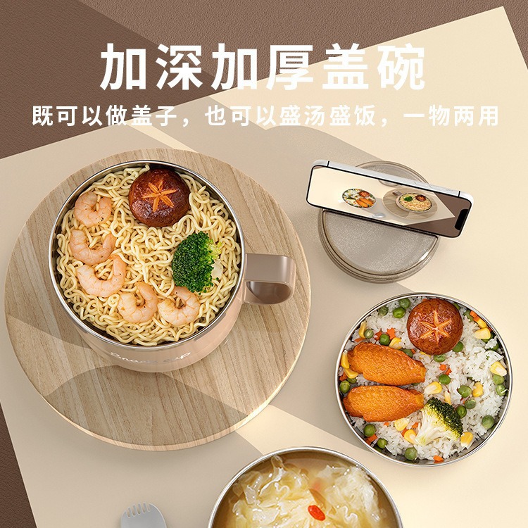 201不锈钢带盖快餐杯泡面碗宿舍大容量饭盒食堂上班族双层便当盒