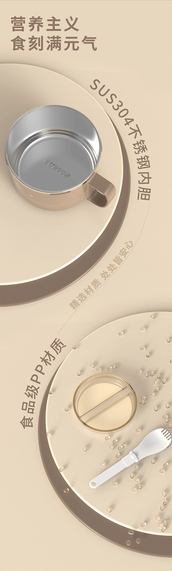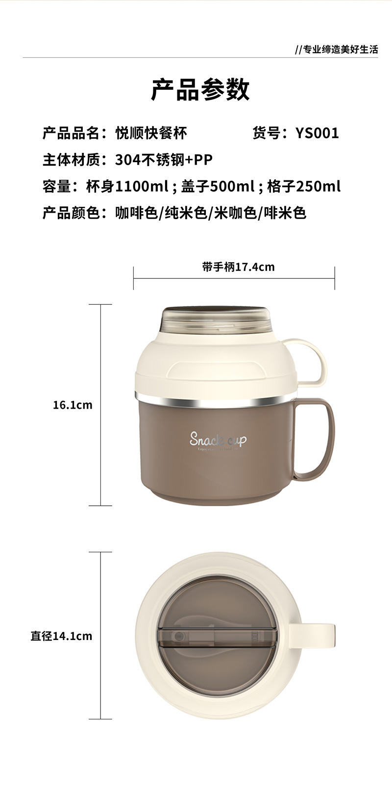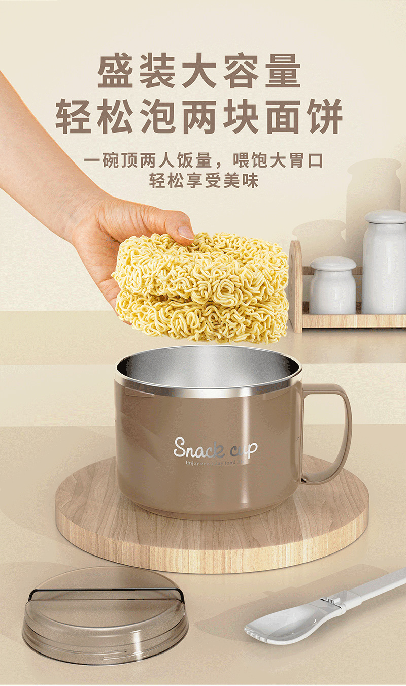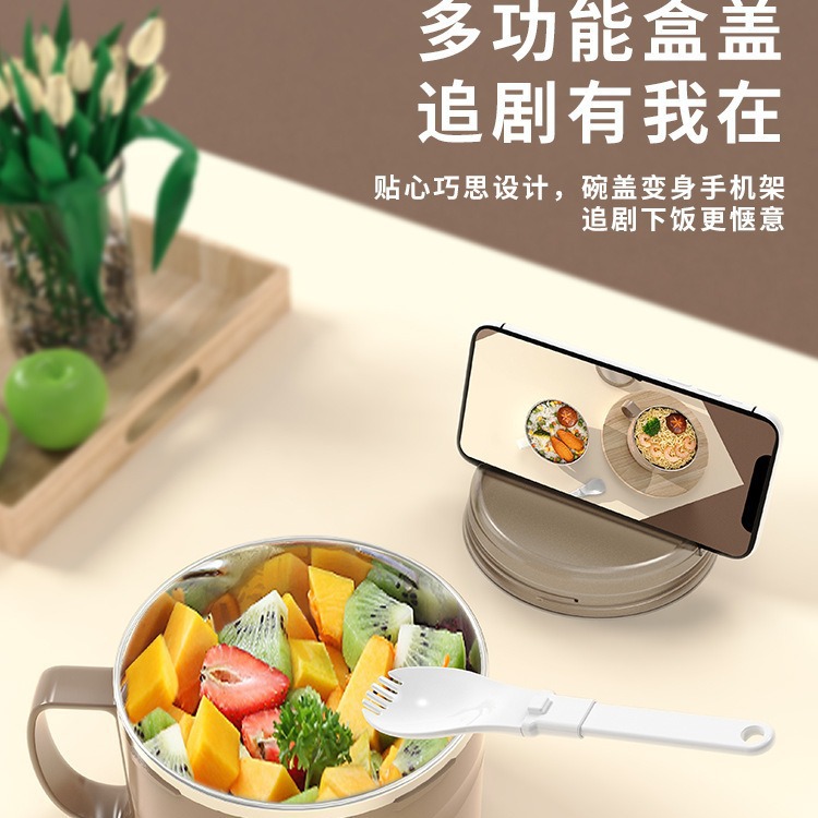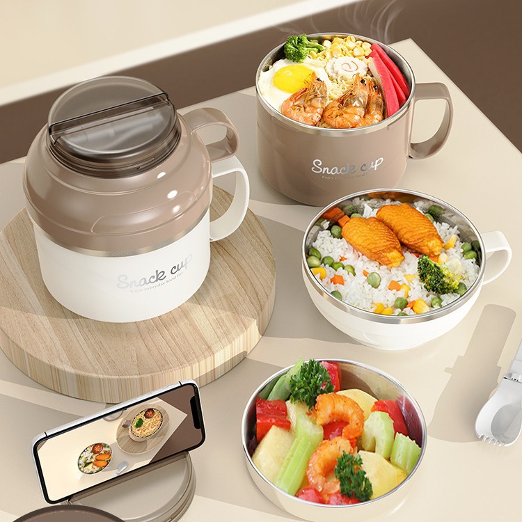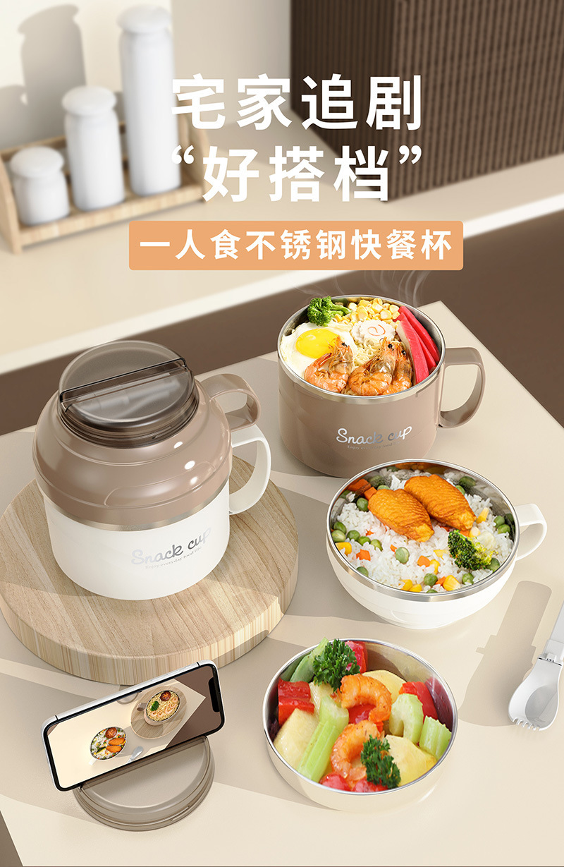 304不锈钢快餐杯双层饭盒带盖带勺学生宿舍泡面汤碗上班族便当盒