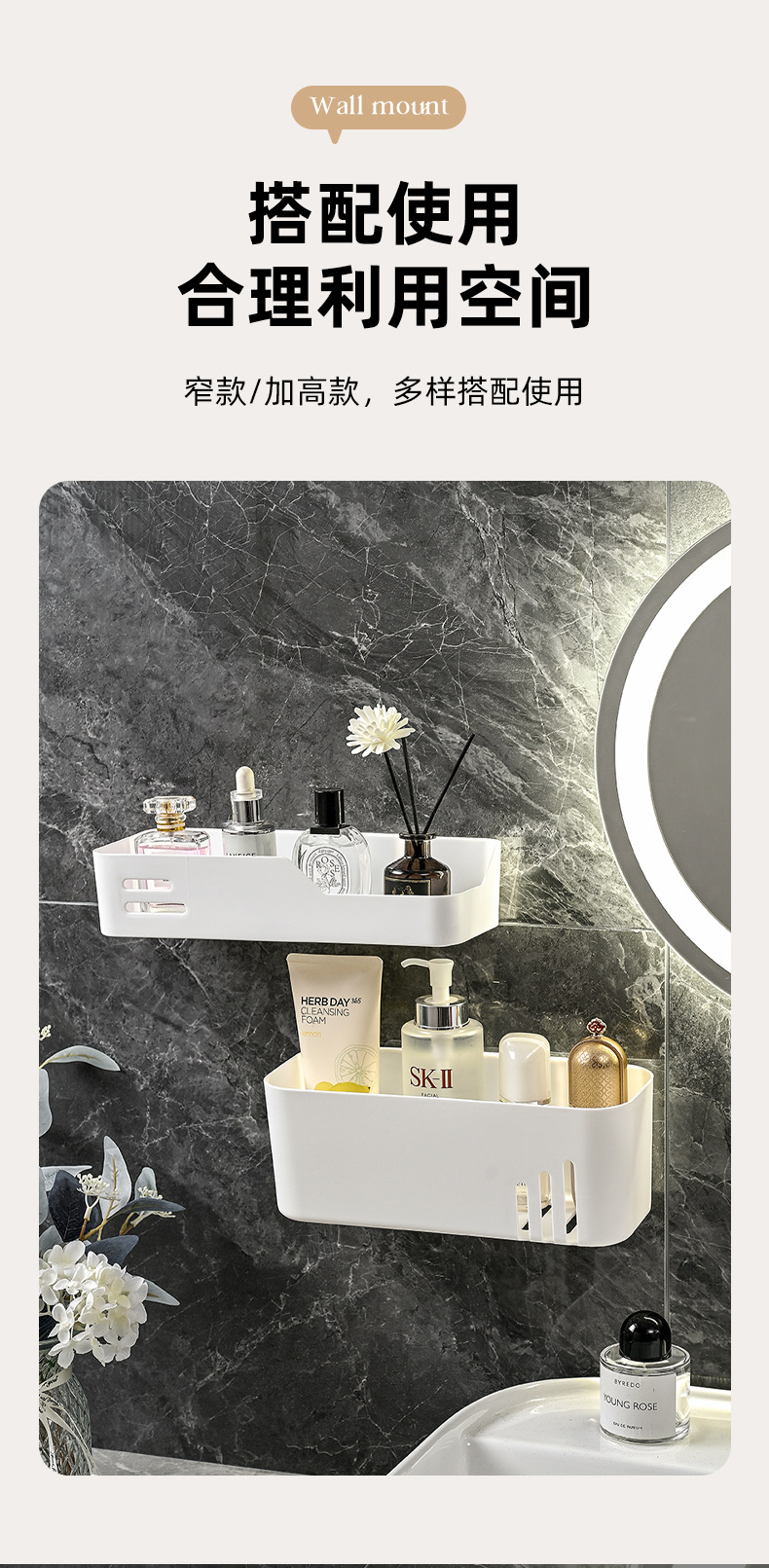 化妆品收纳架洗漱台墙上收纳卫生间置物架免打孔壁挂式浴室洗手间