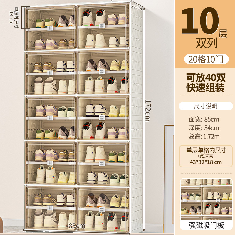 超薄小户型鞋子收纳盒免安装拆叠一体式多层透明维尼图图折叠鞋柜