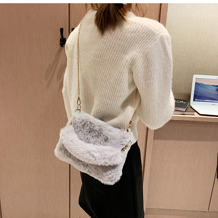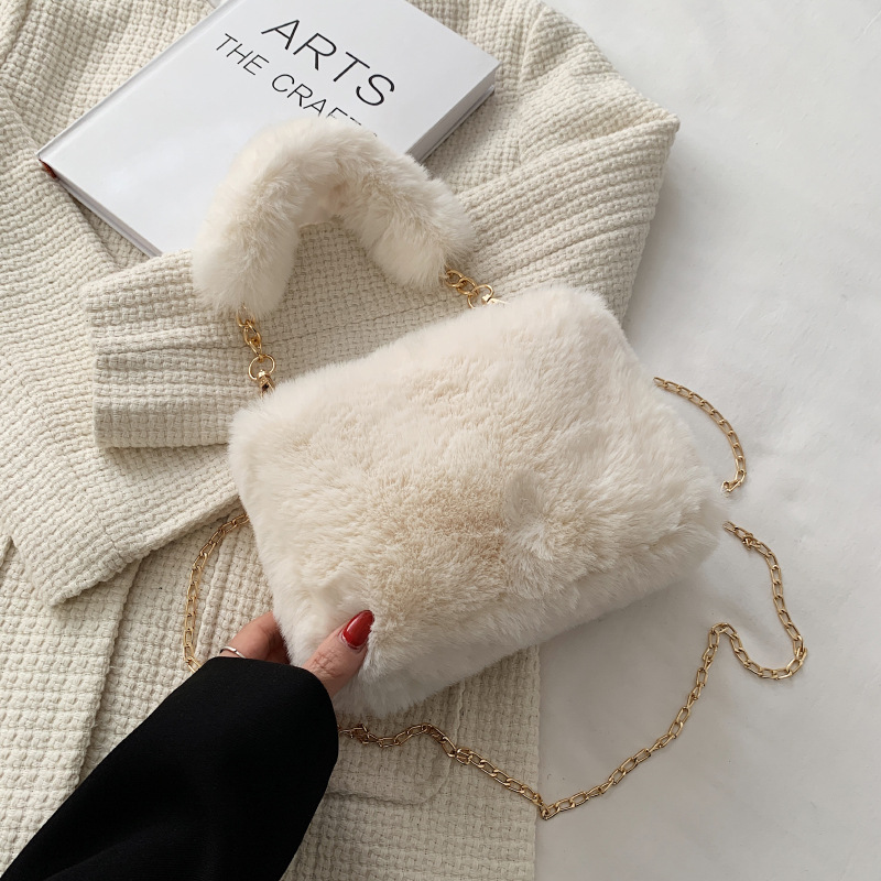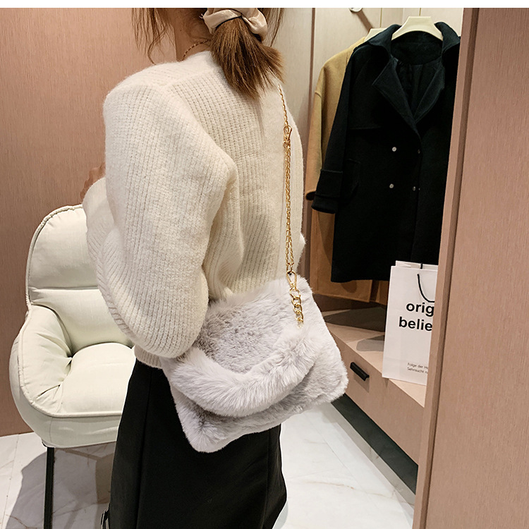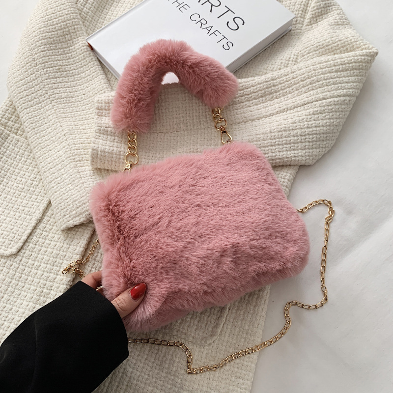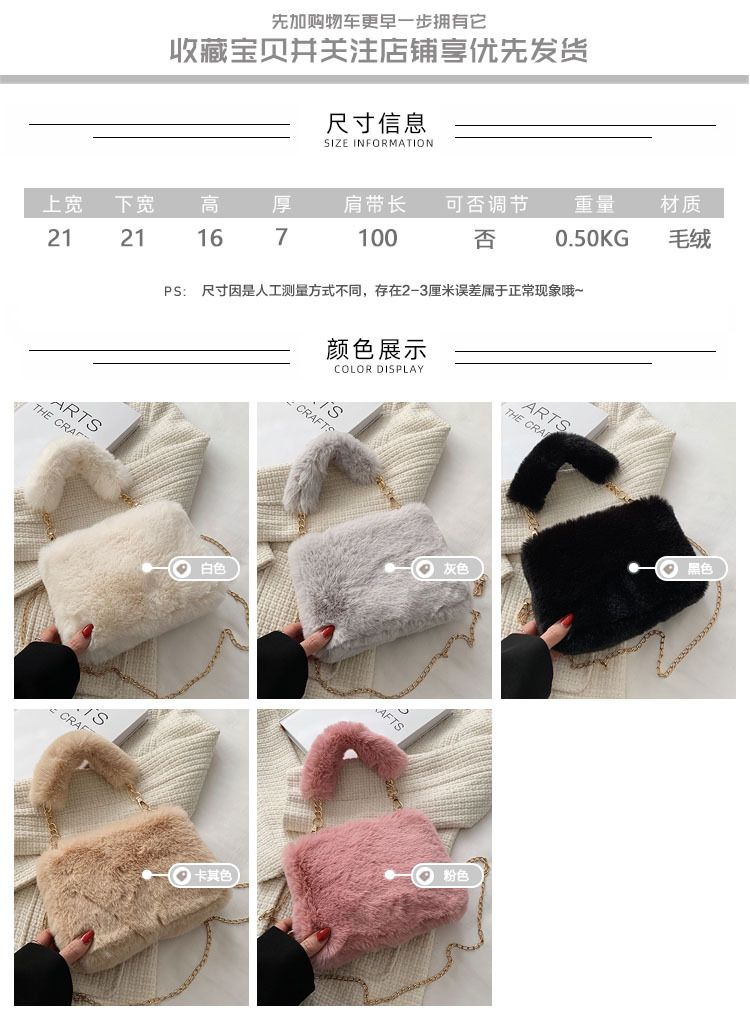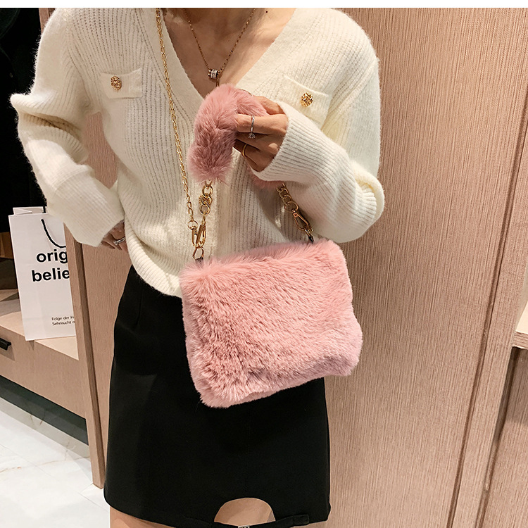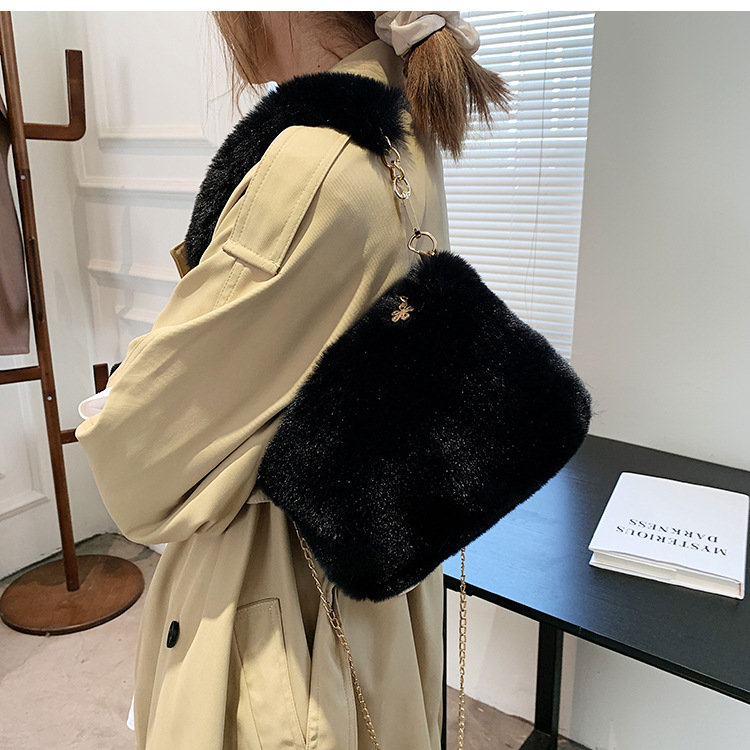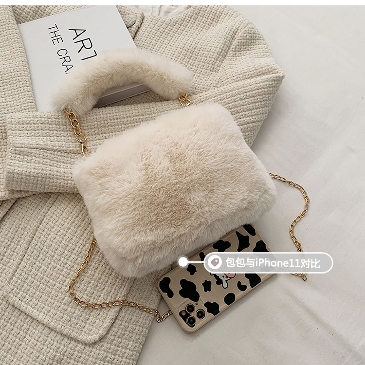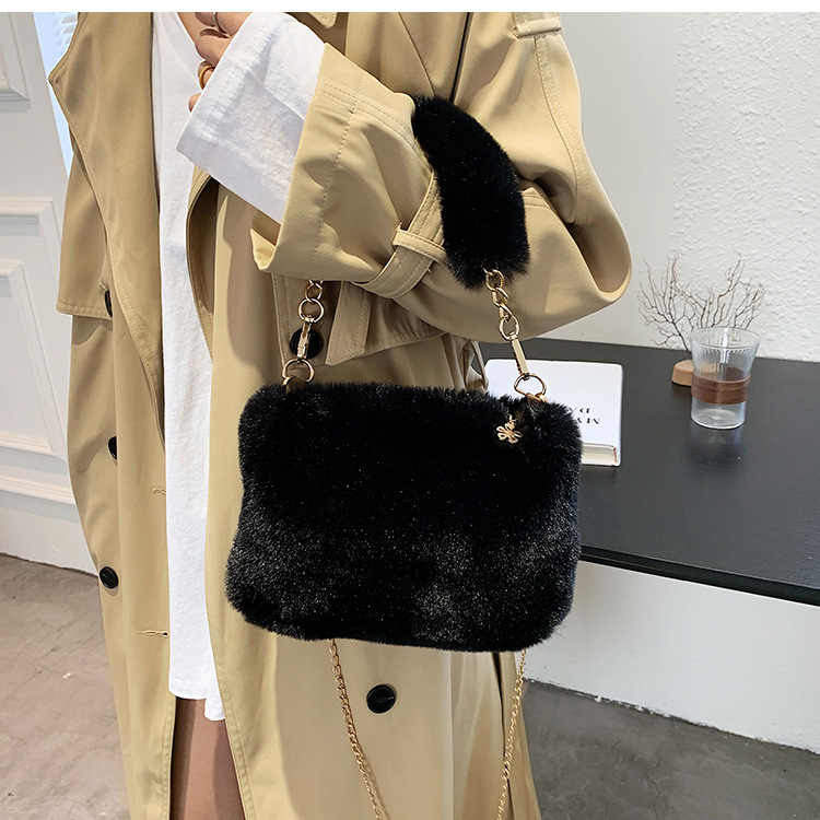 秋冬毛绒包包2023新款包包女ins小众链条斜挎包时尚小方包毛毛包1