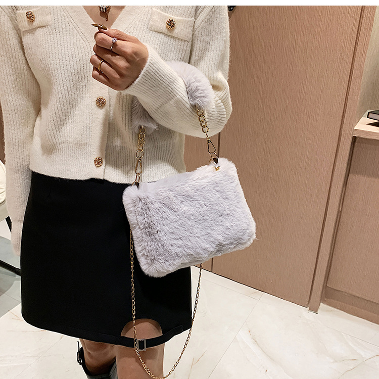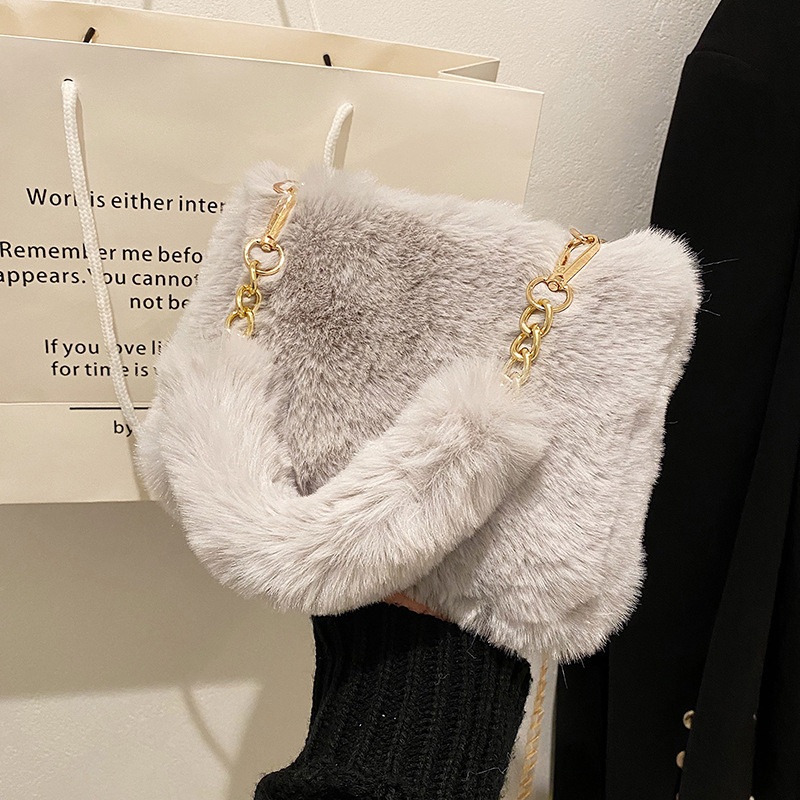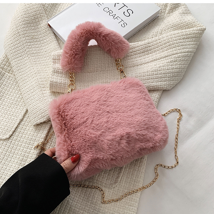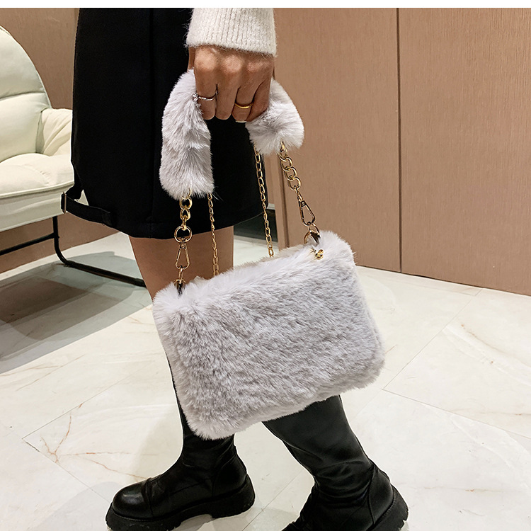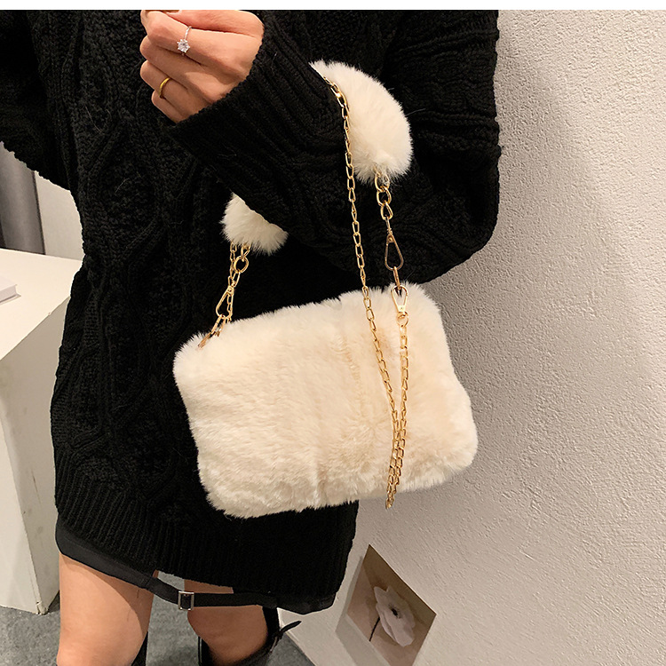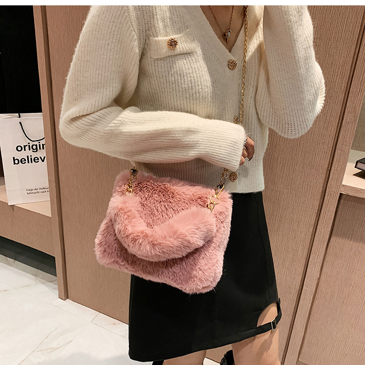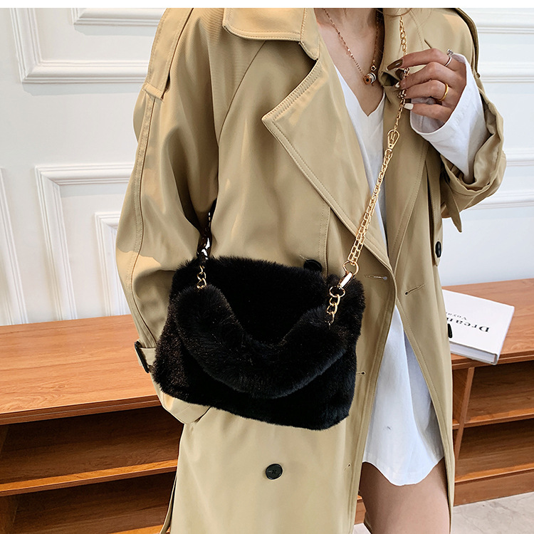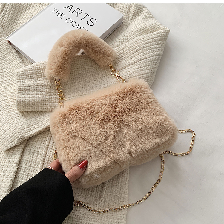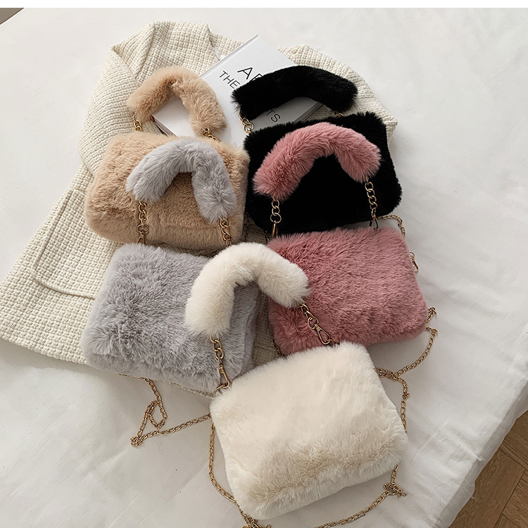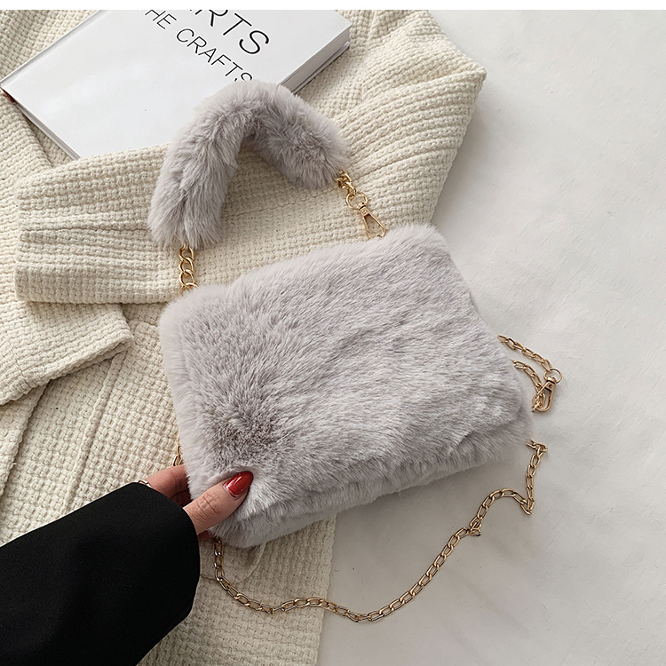 秋冬毛绒包包2023新款包包女ins小众链条斜挎包时尚小方包毛毛包1