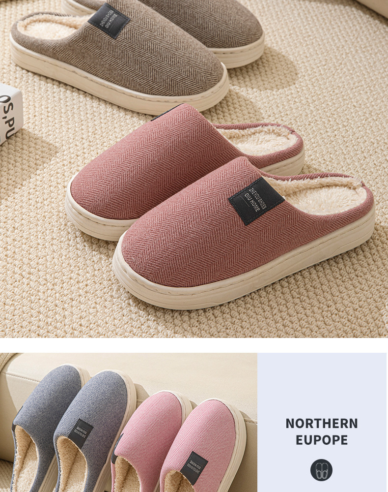 拖鞋批发秋冬厚底男士棉拖鞋情侣室内保暖防滑拖鞋女韩版情侣棉拖