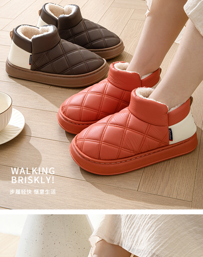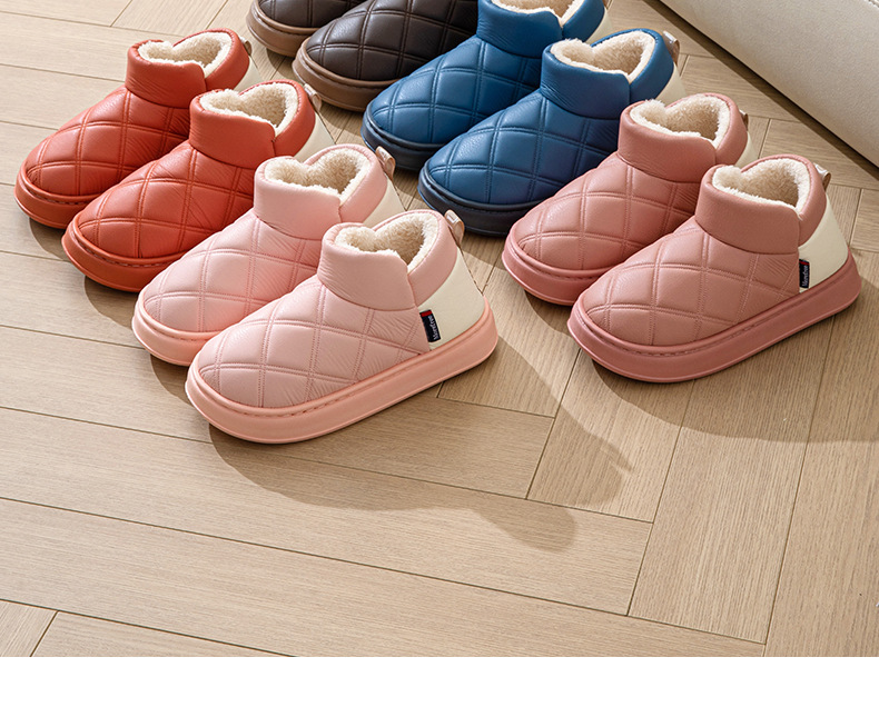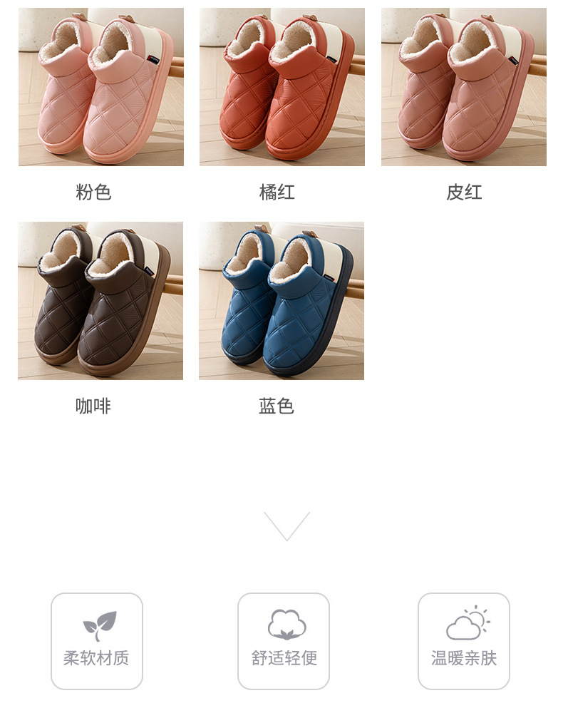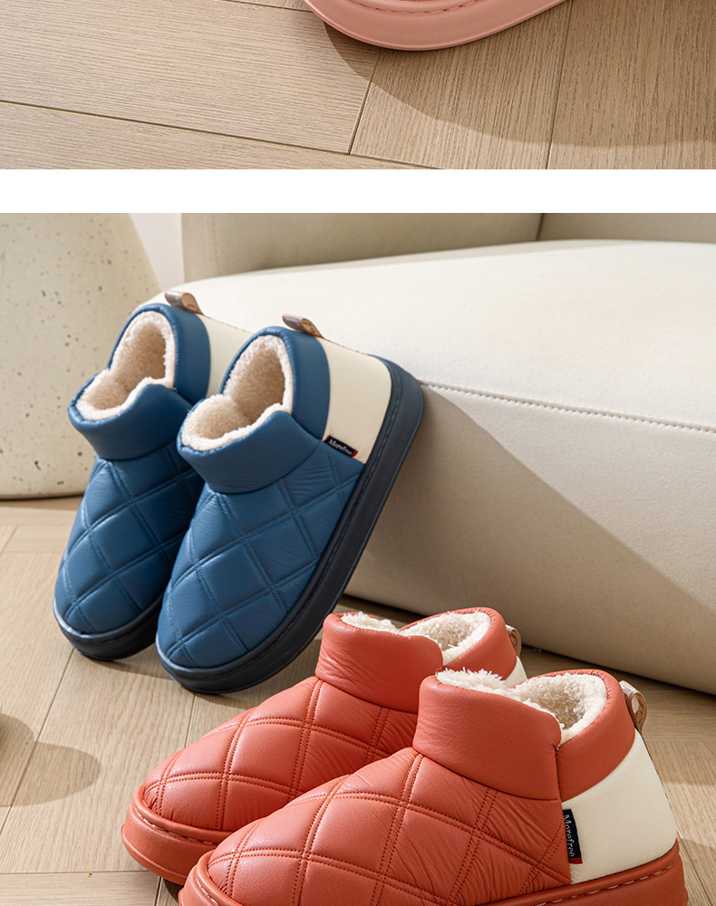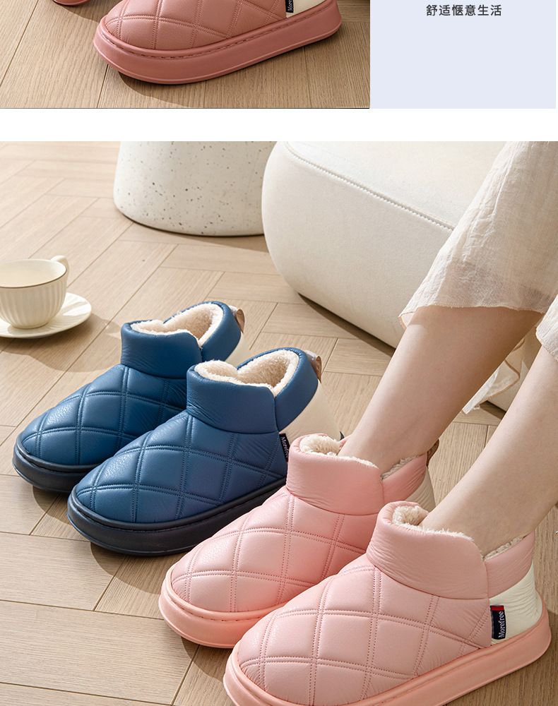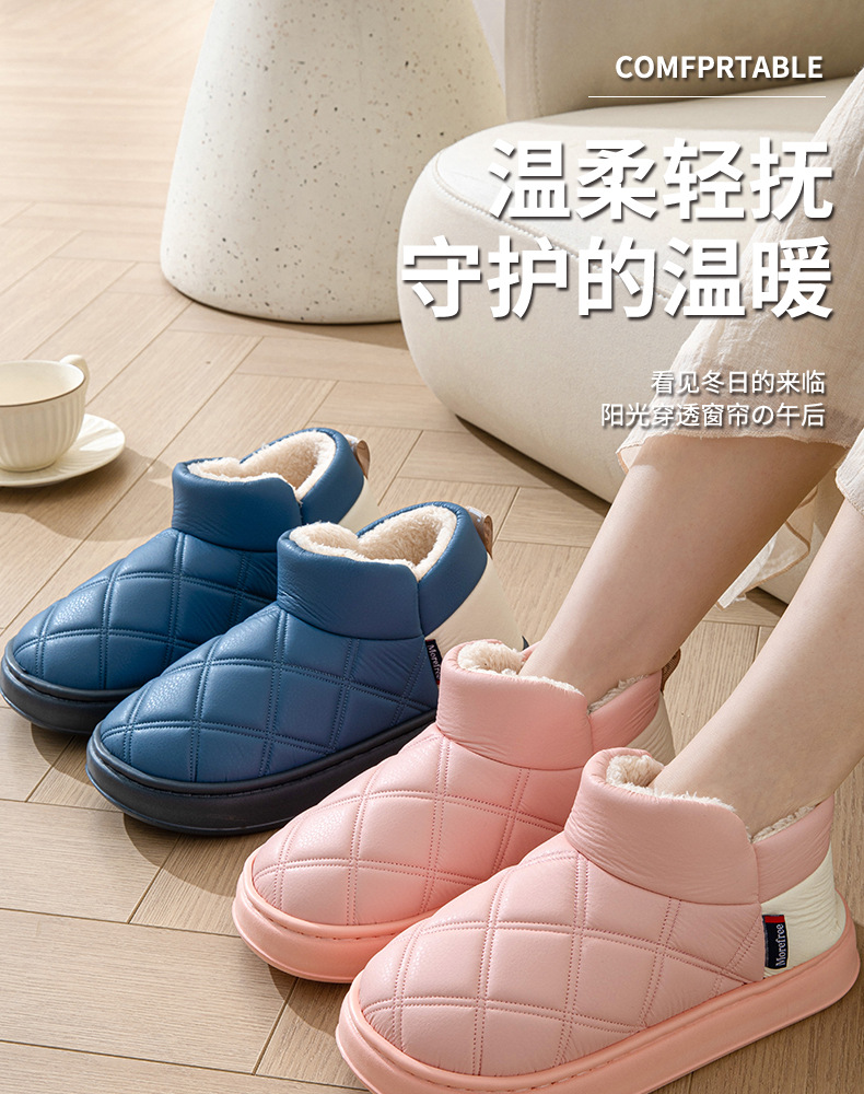PU皮棉鞋女冬季防水居家防滑情侣高帮棉鞋室外厚底加绒保暖棉鞋男