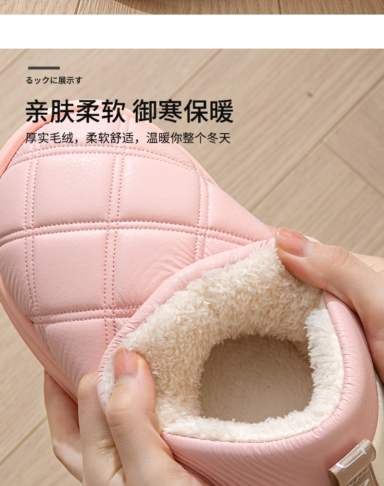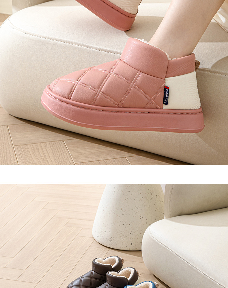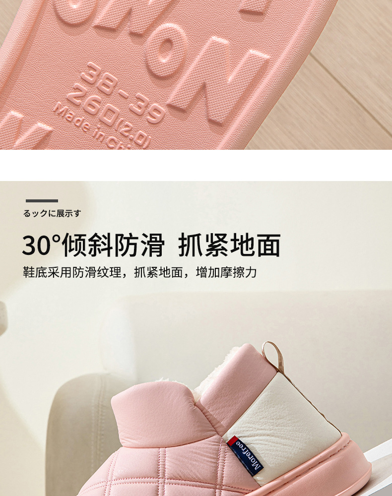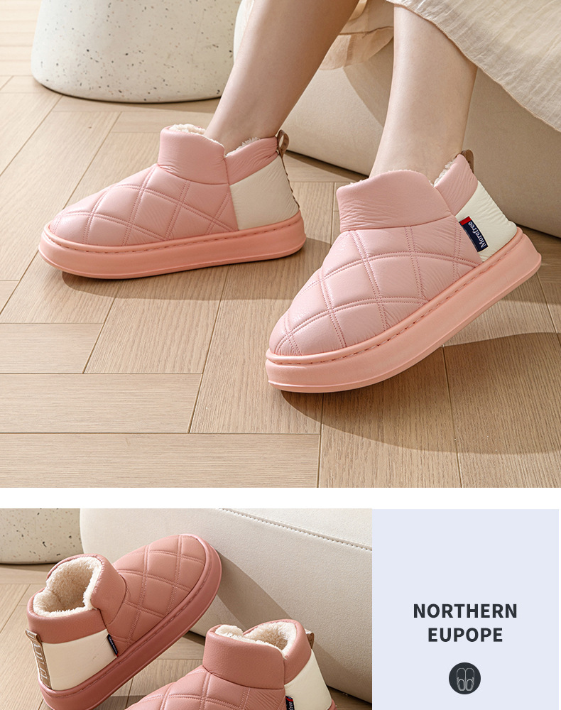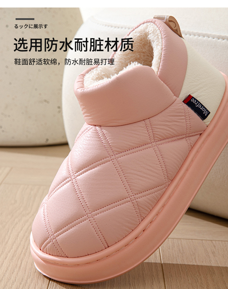 PU皮棉鞋女冬季防水居家防滑情侣高帮棉鞋室外厚底加绒保暖棉鞋男
