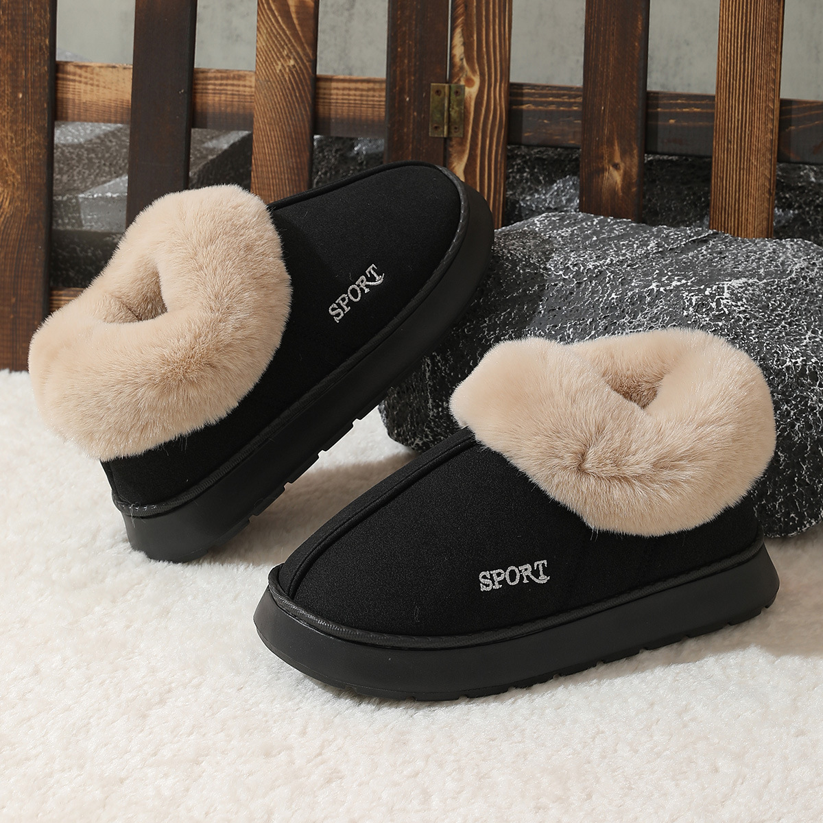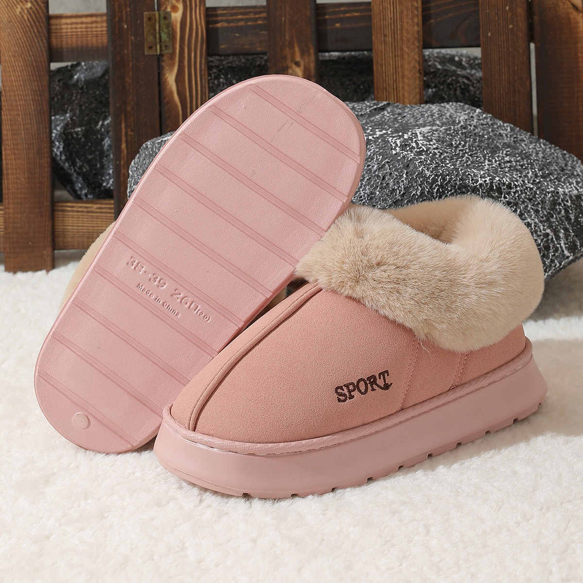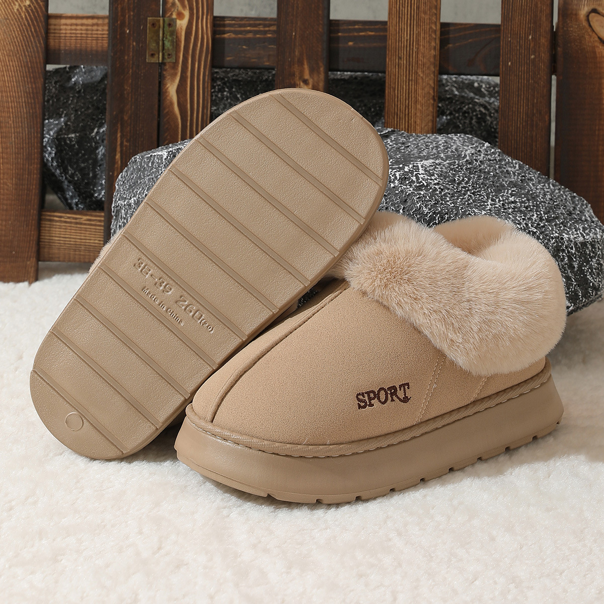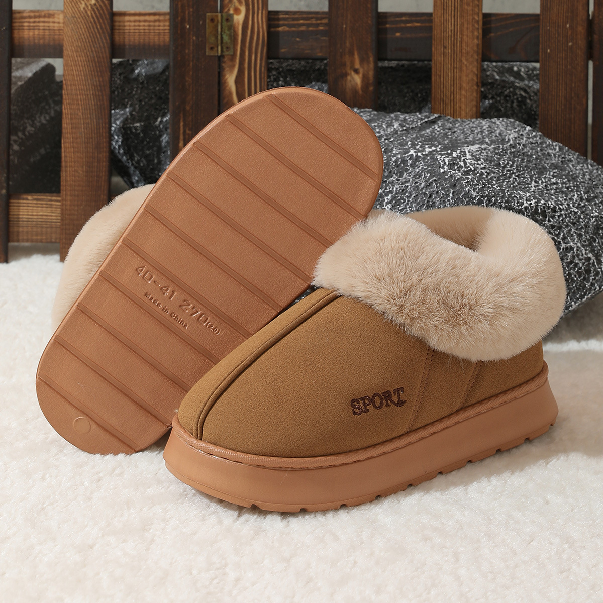 跨境代发棉鞋女冬季居家室内保暖加绒毛毛防滑厚底外穿包跟棉鞋女