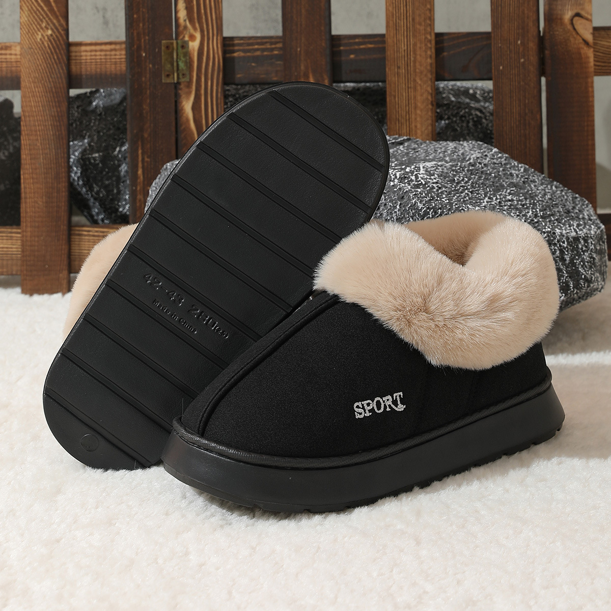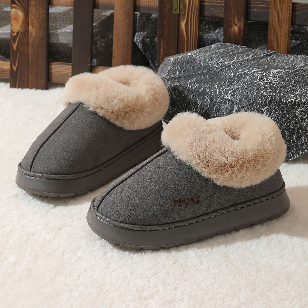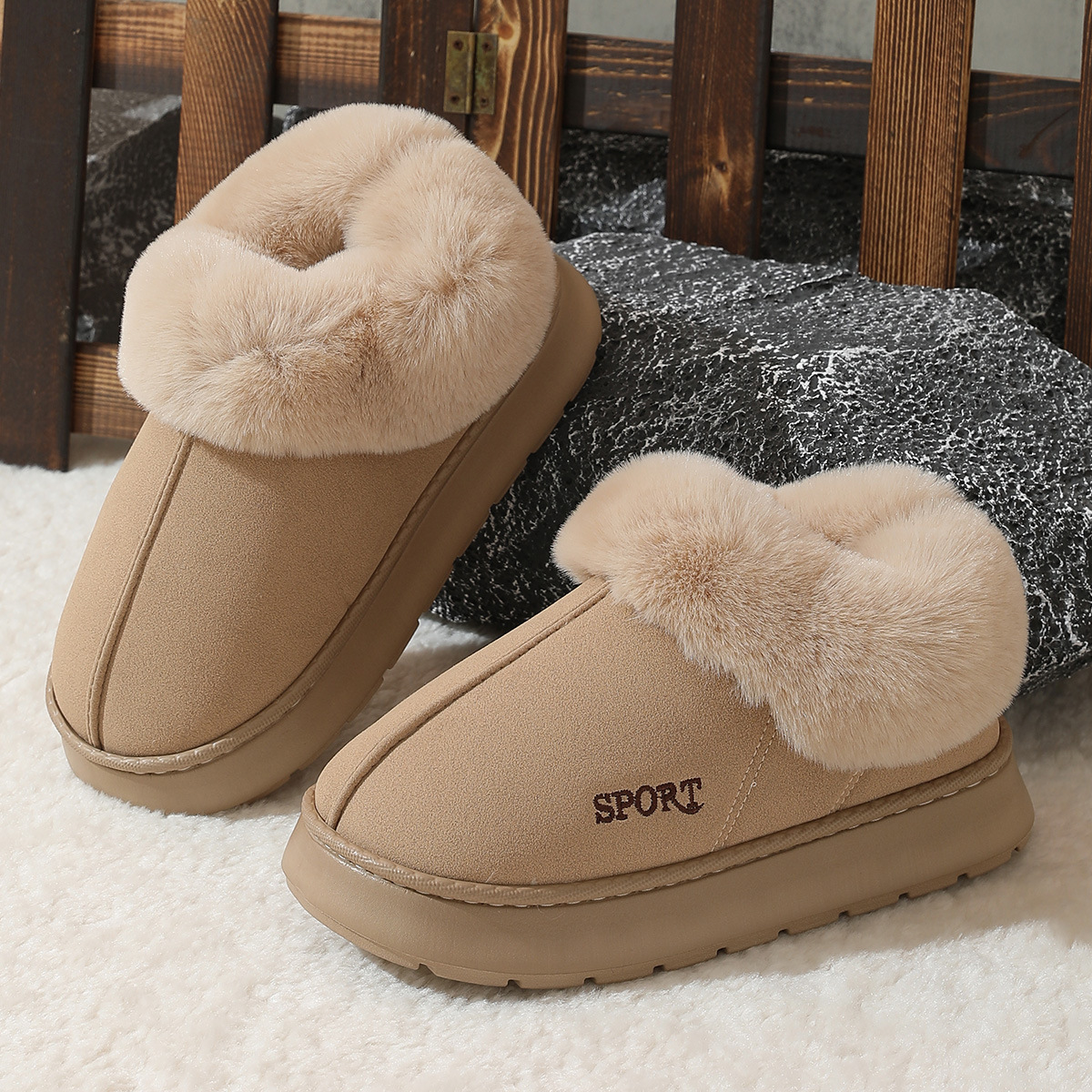 跨境代发棉鞋女冬季居家室内保暖加绒毛毛防滑厚底外穿包跟棉鞋女