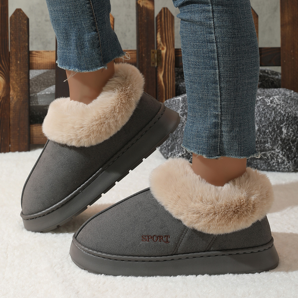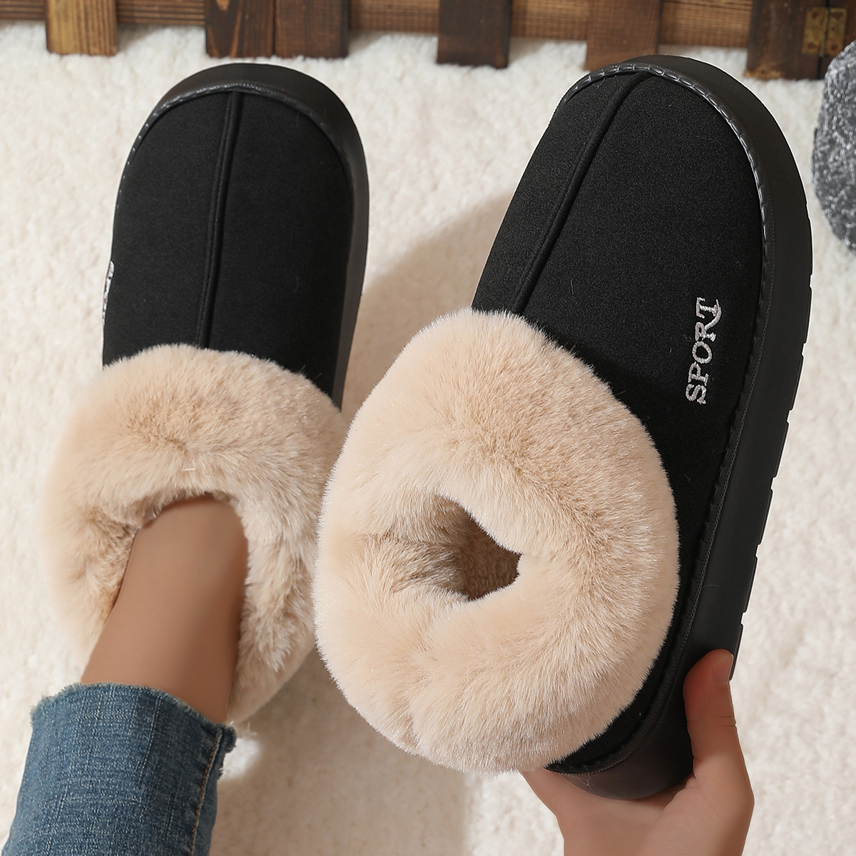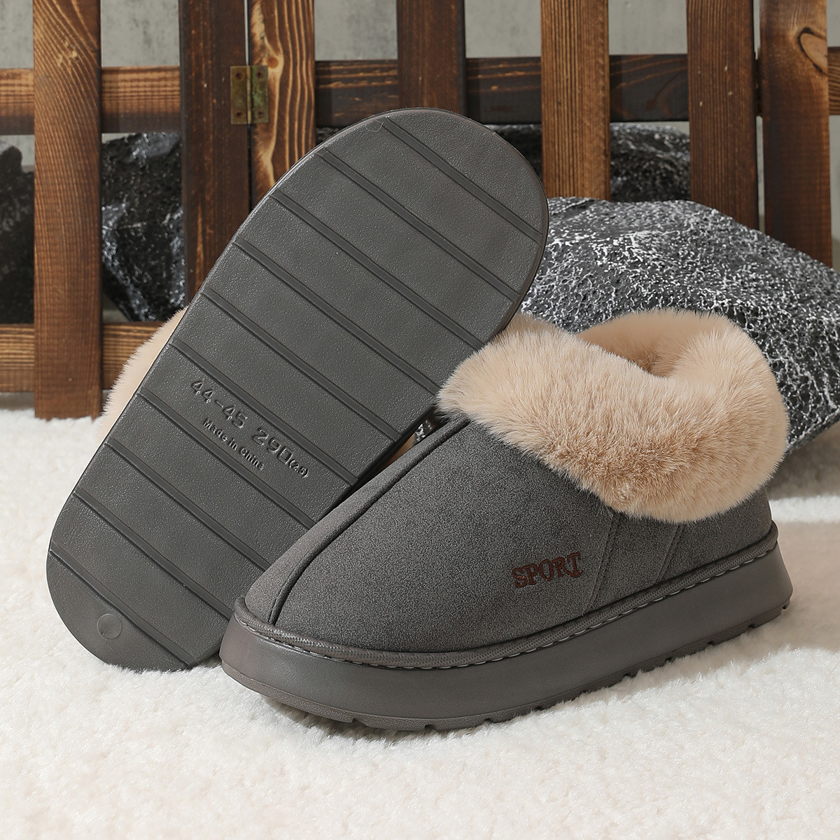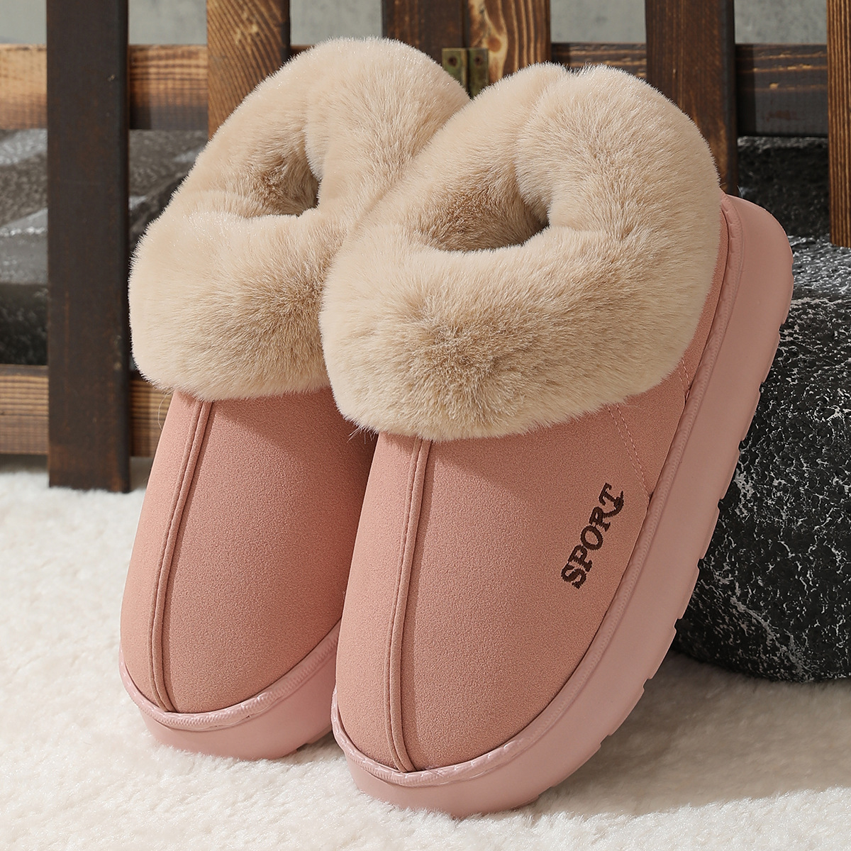 跨境代发棉鞋女冬季居家室内保暖加绒毛毛防滑厚底外穿包跟棉鞋女