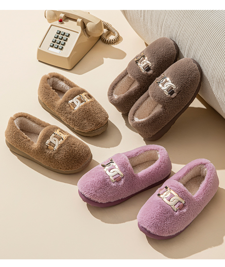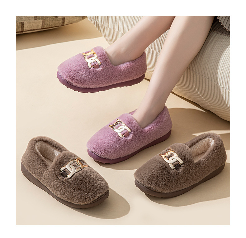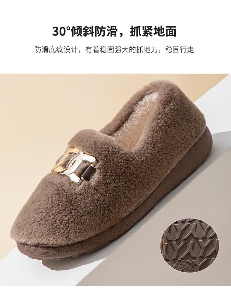 跨境豆豆鞋女冬季保暖家居包跟棉拖鞋加厚毛毛可爱防滑月子鞋女士