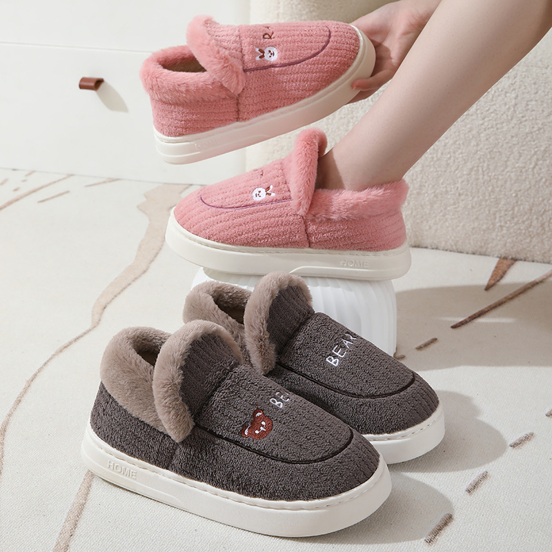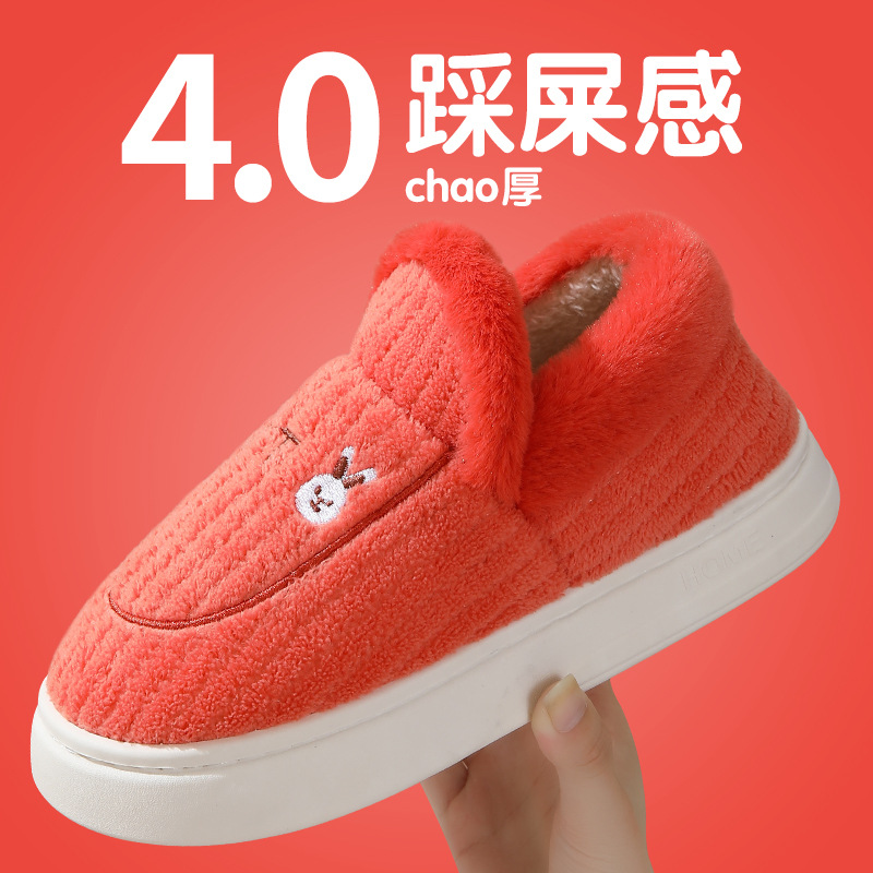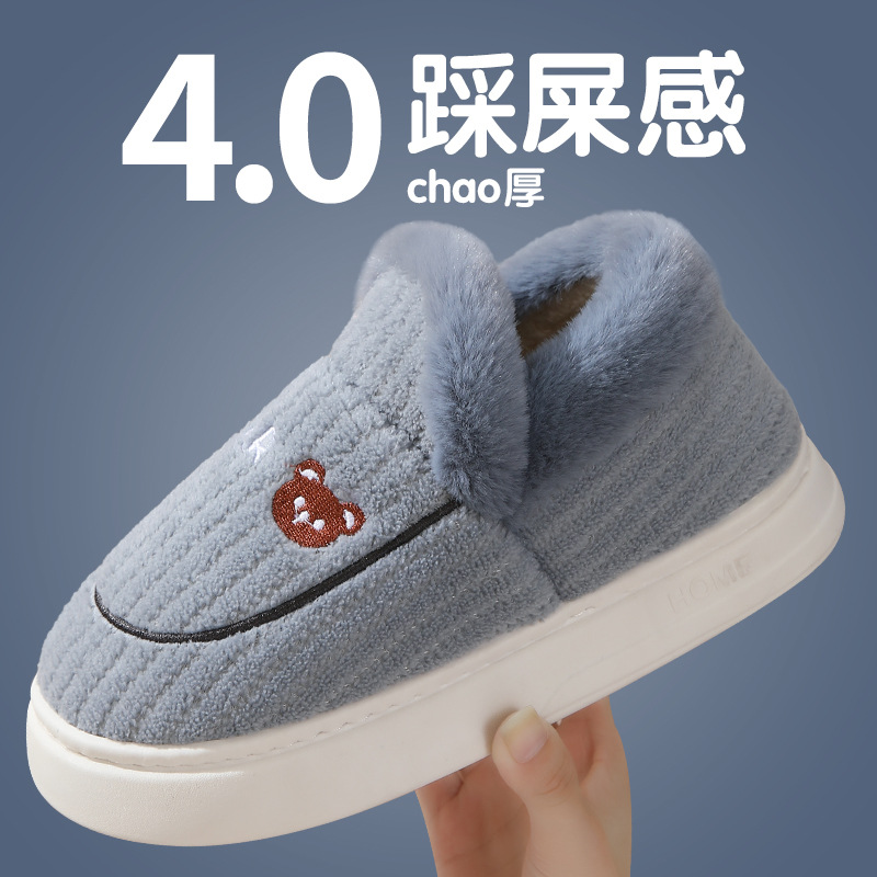 跨境新款加厚棉鞋带后跟棉鞋情侣家居室内外厚底保暖冬天毛绒棉鞋