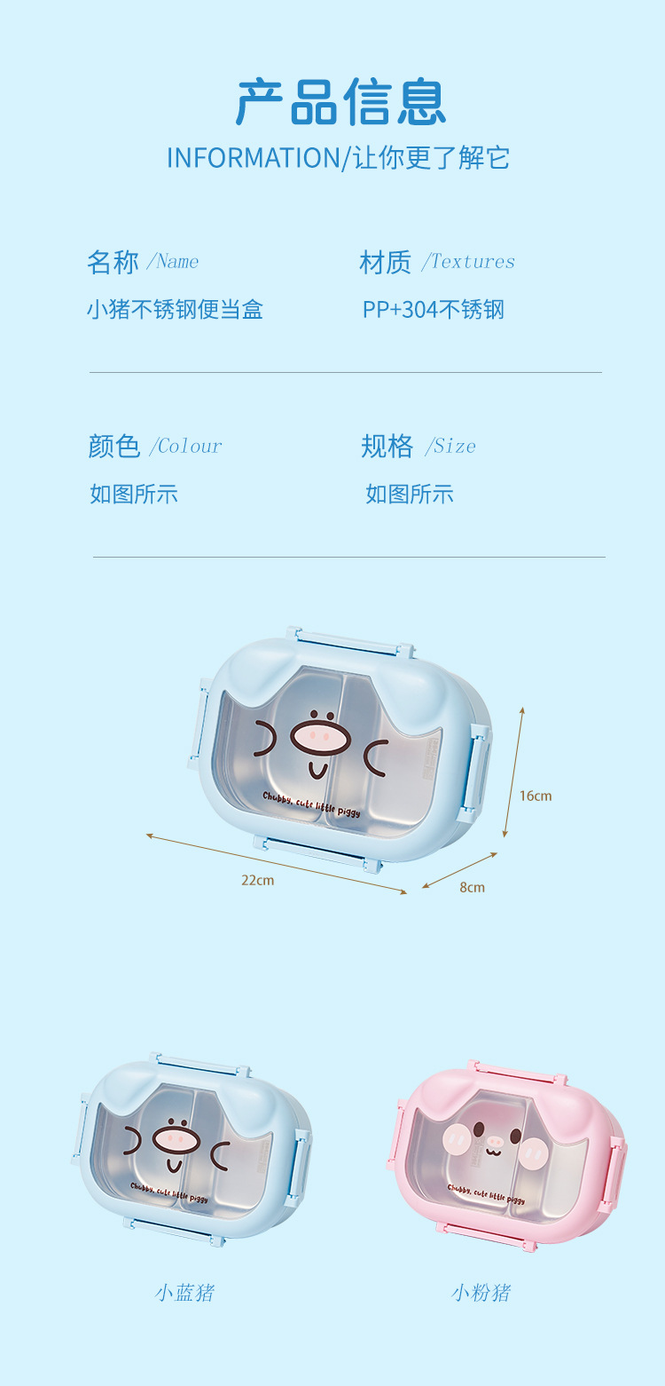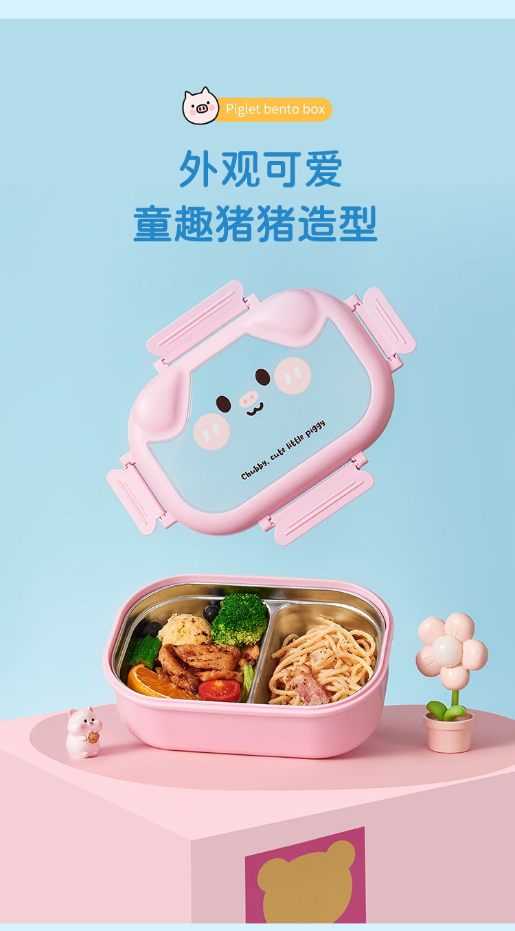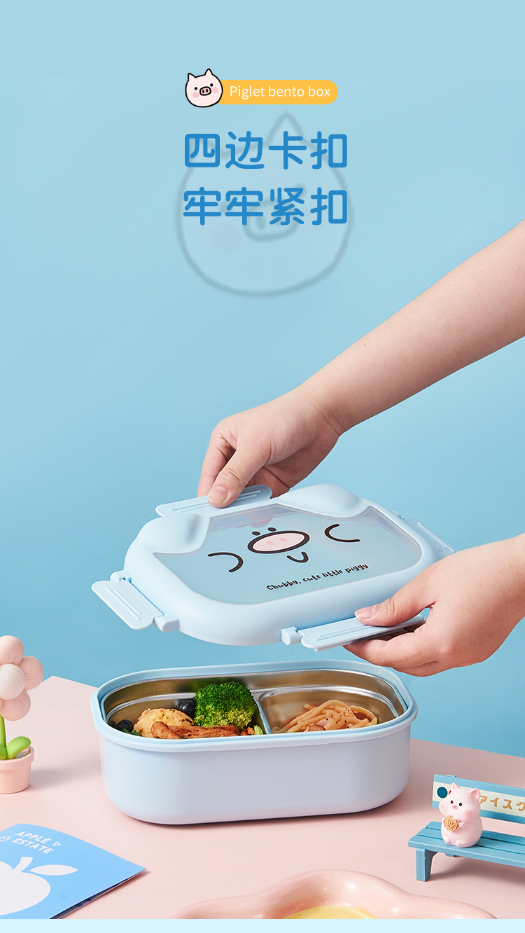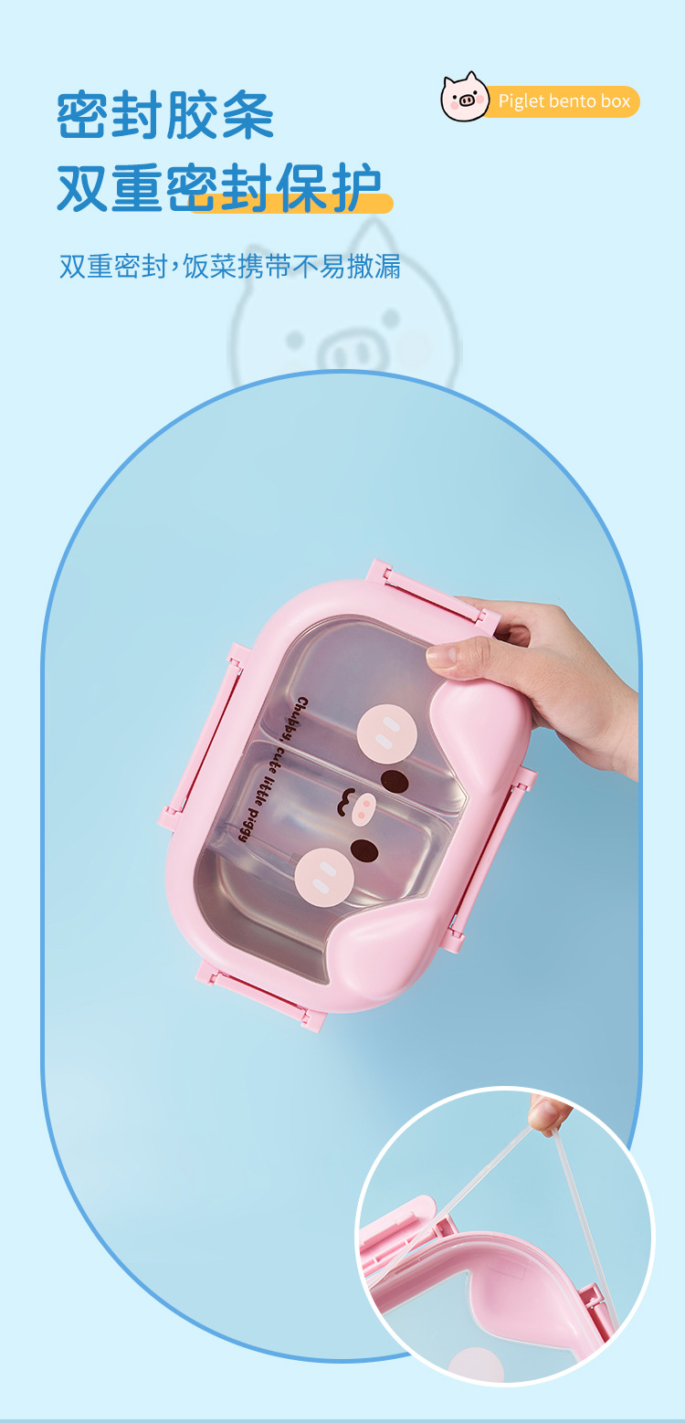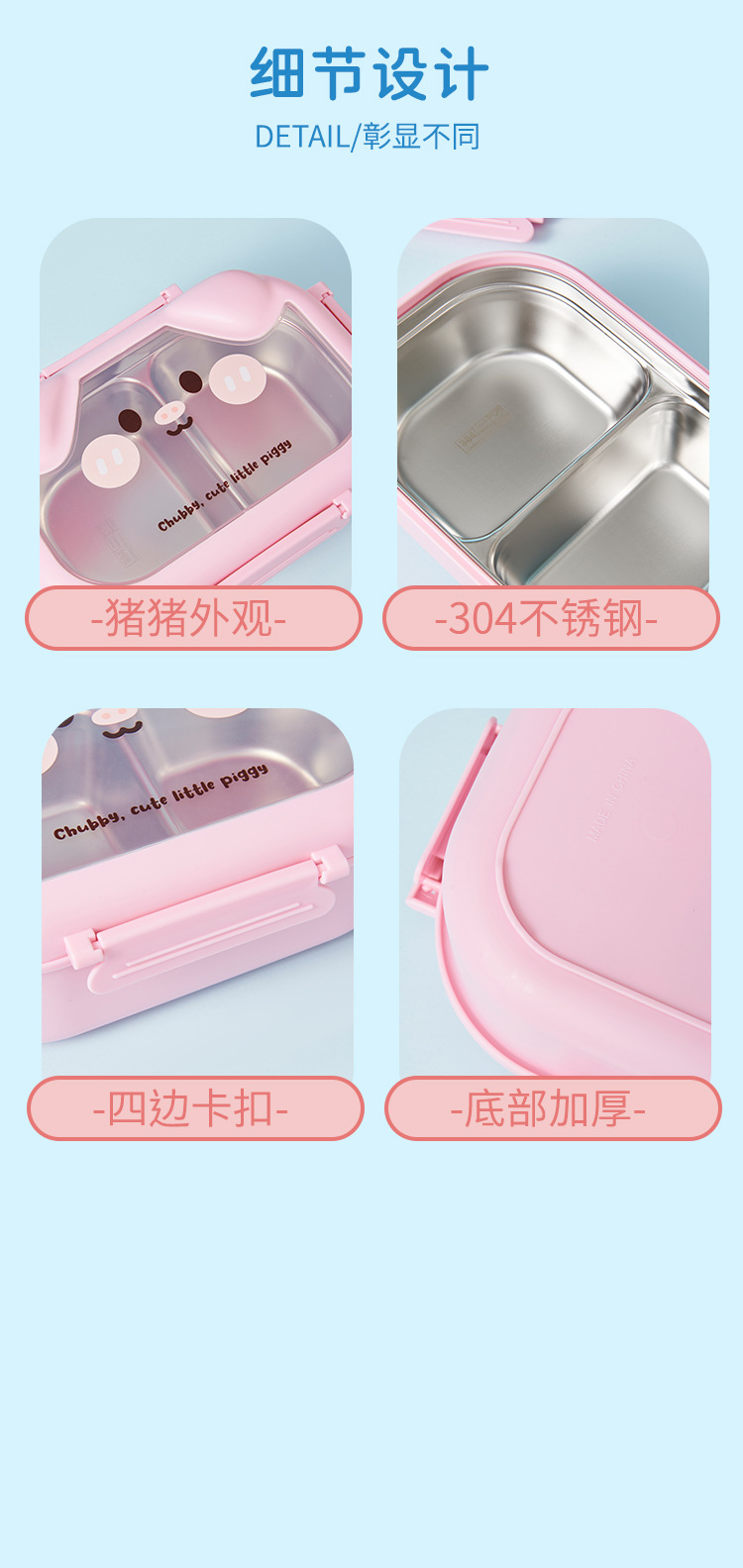 小猪猪可爱不锈钢带盖饭盒上班族学生超大容量便当超市饭盒