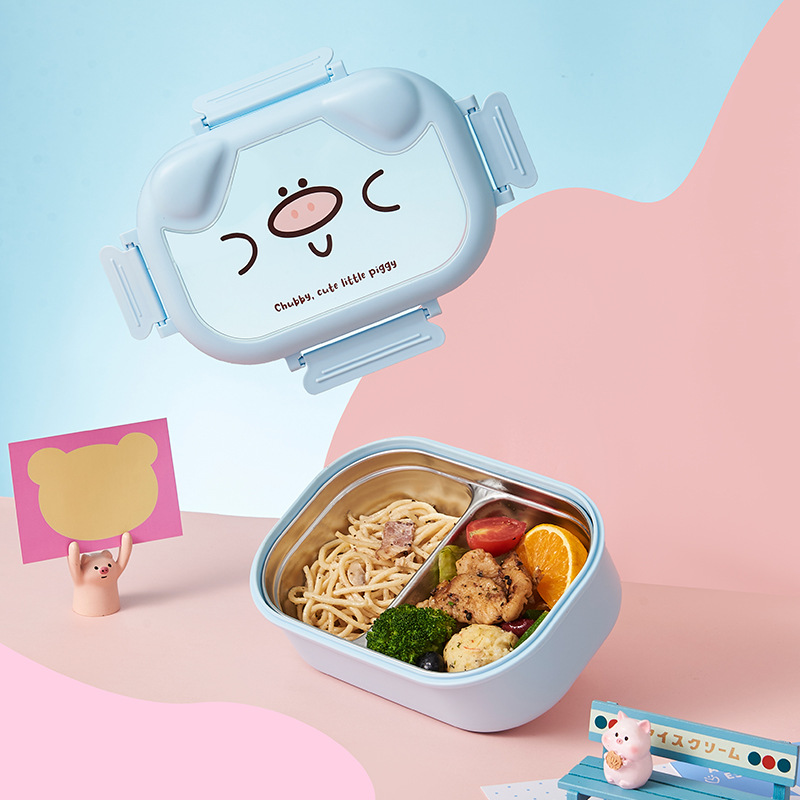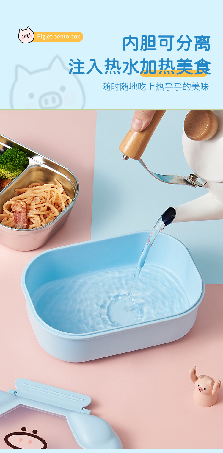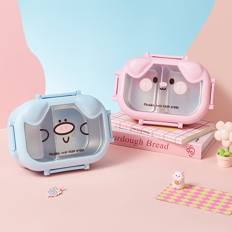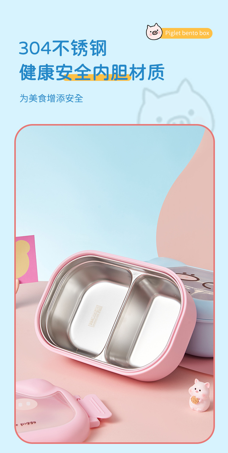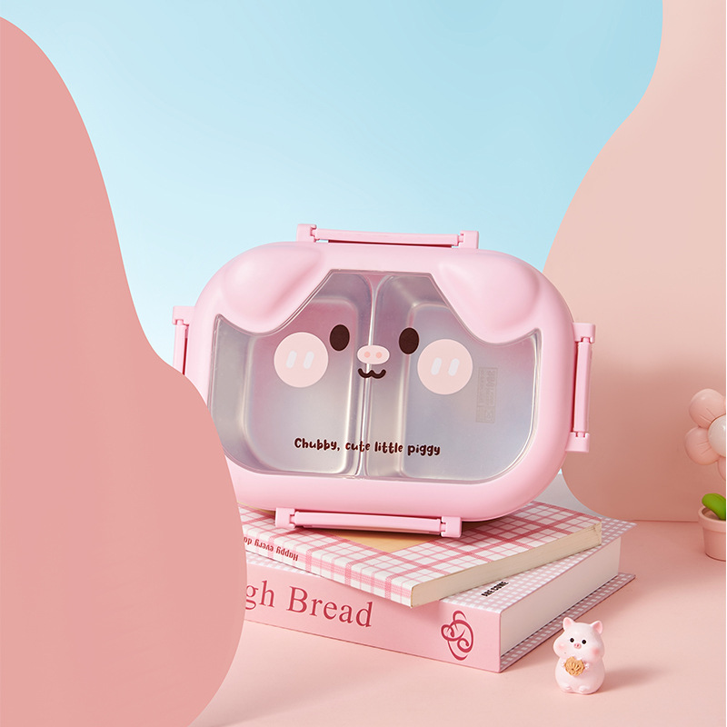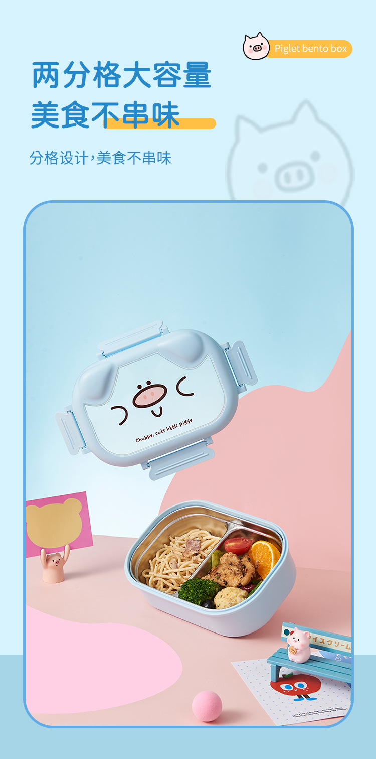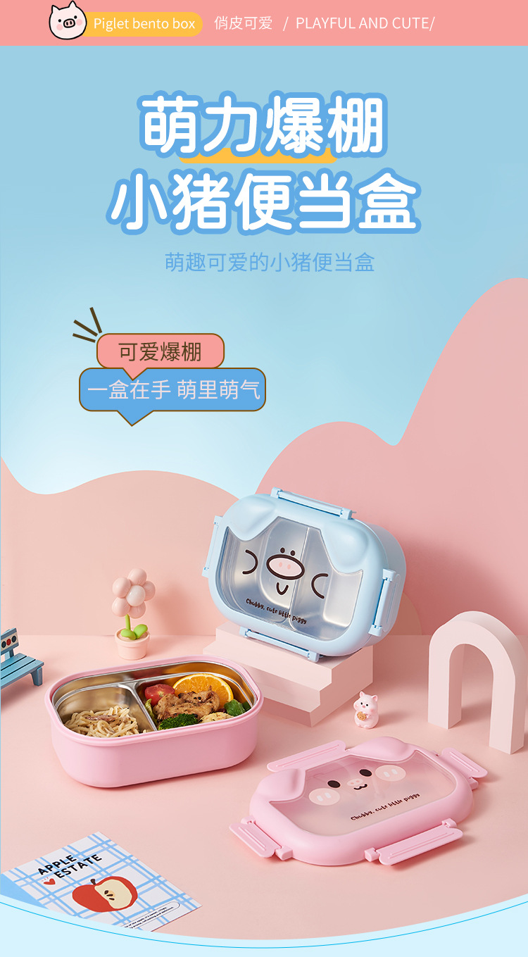 小猪猪可爱不锈钢带盖饭盒上班族学生超大容量便当超市饭盒
