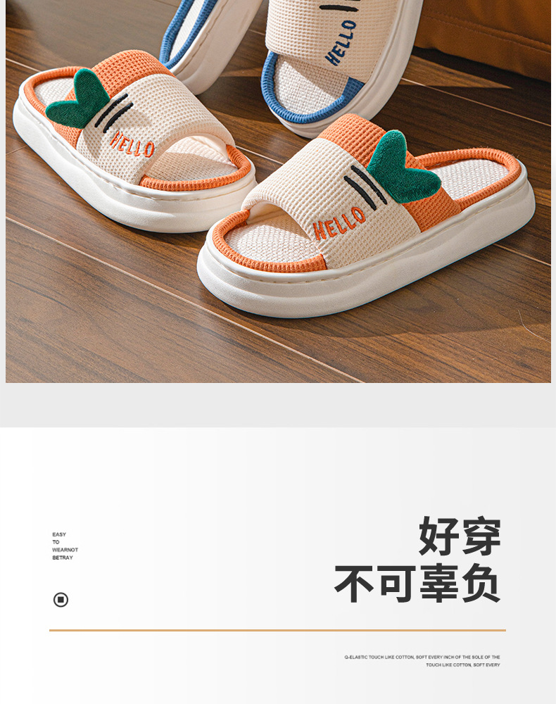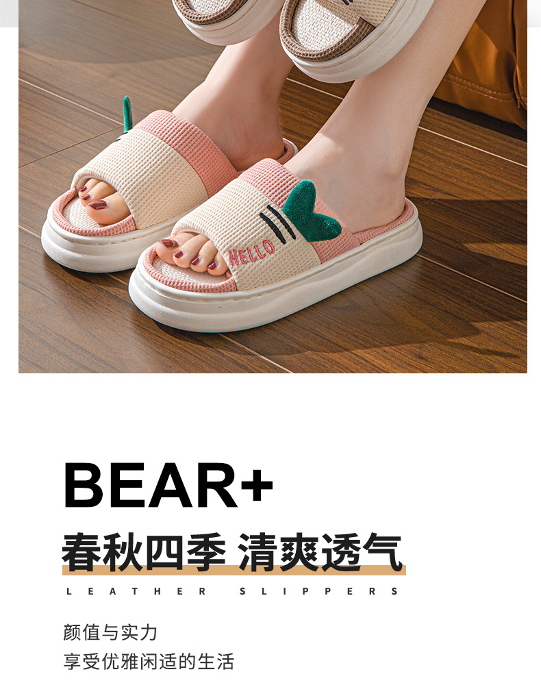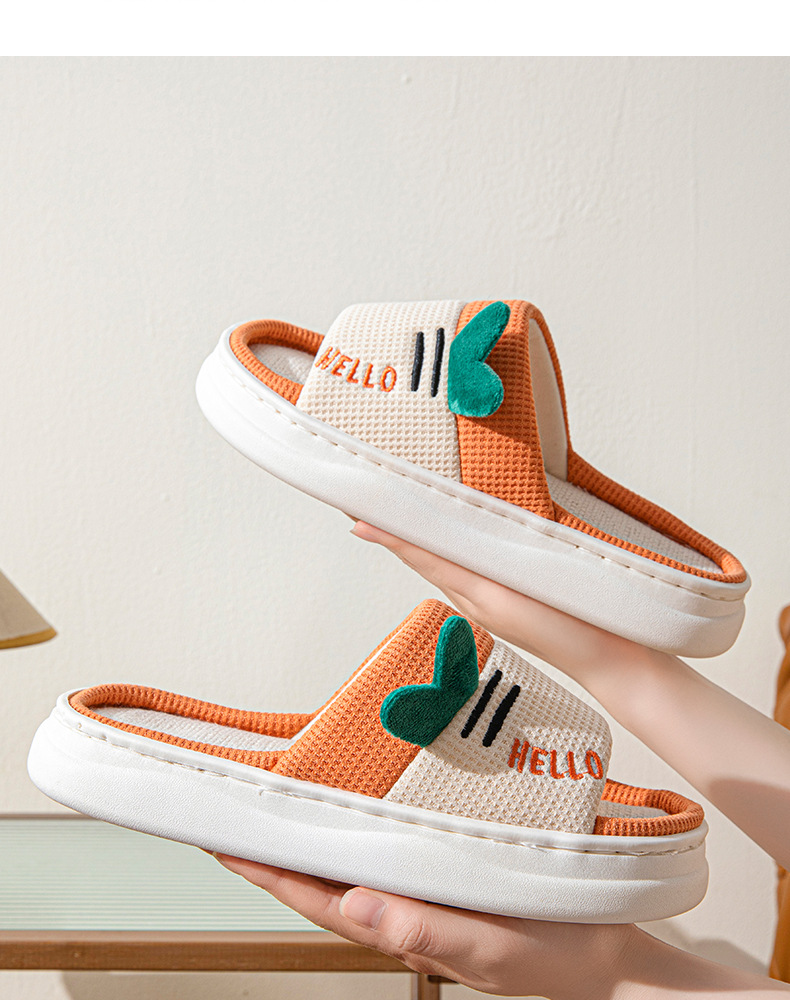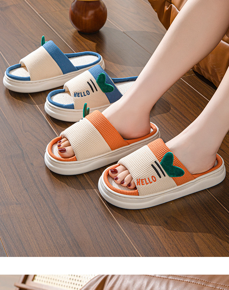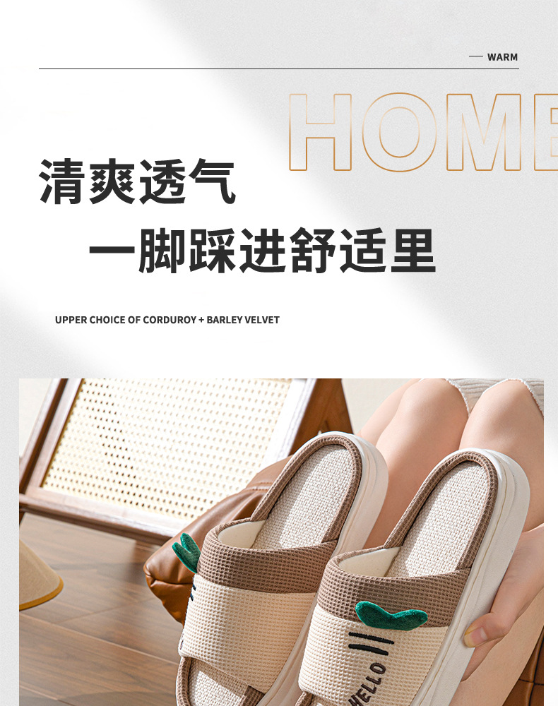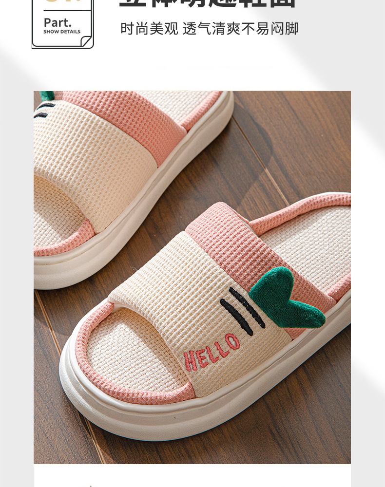 亚麻拖鞋女款可爱卡通棉麻布开口拖鞋室内四季情侣防滑地板拖鞋男