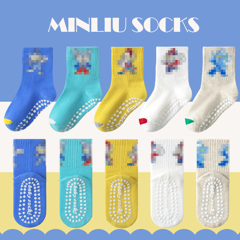 儿童袜秋冬点胶防滑地板袜蹦床袜子笑脸纯色男女童宝宝袜童袜批发