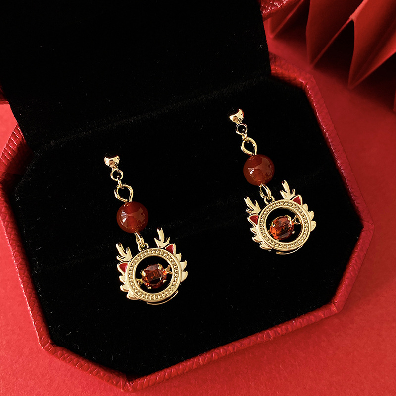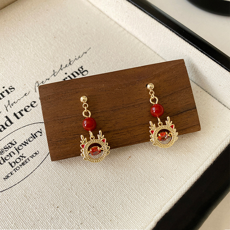 下游爆款生肖龙新年耳钉小巧精致国风耳环龙年本命年耳饰女秋冬款