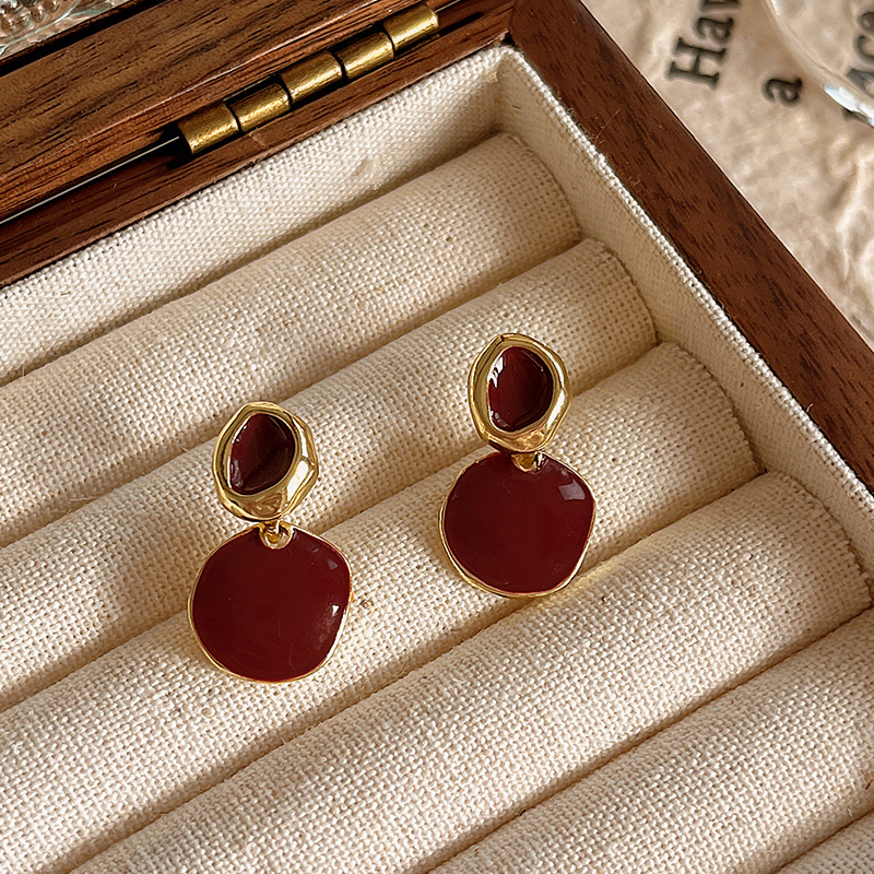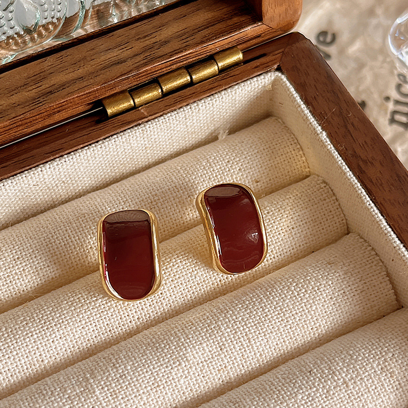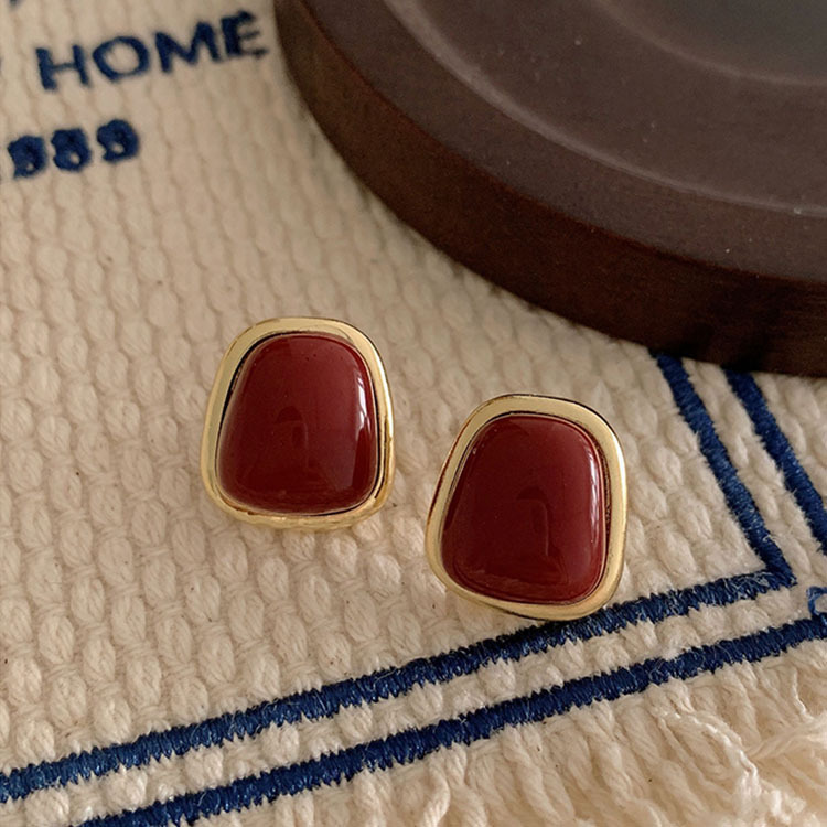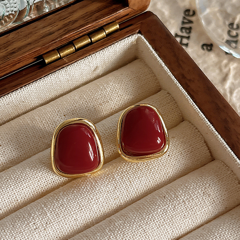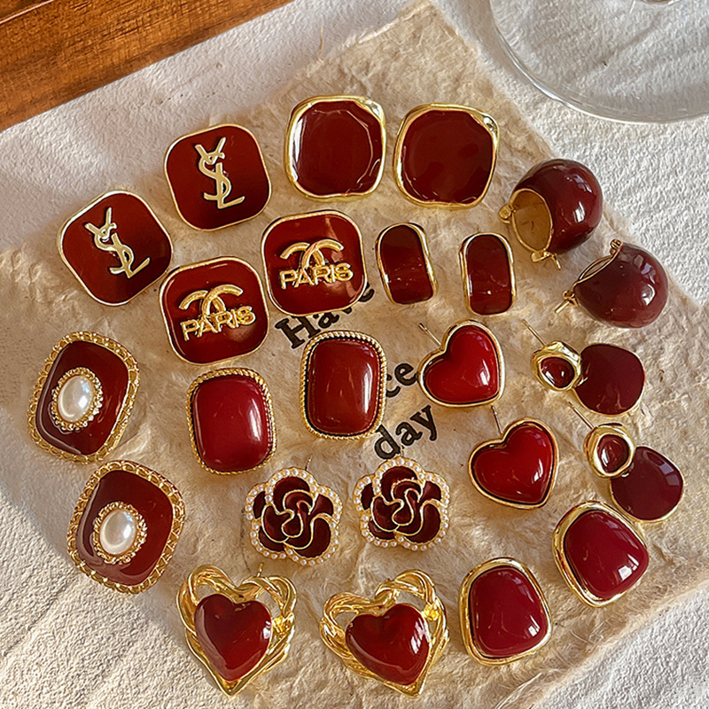红色系耳环复古港风高级感耳钉2023新款爆款独特小众秋冬过年耳饰