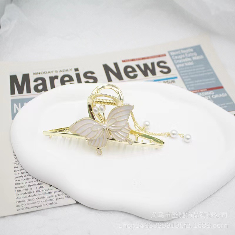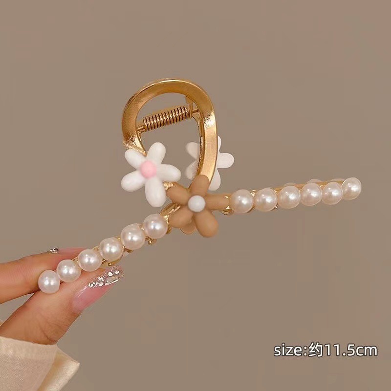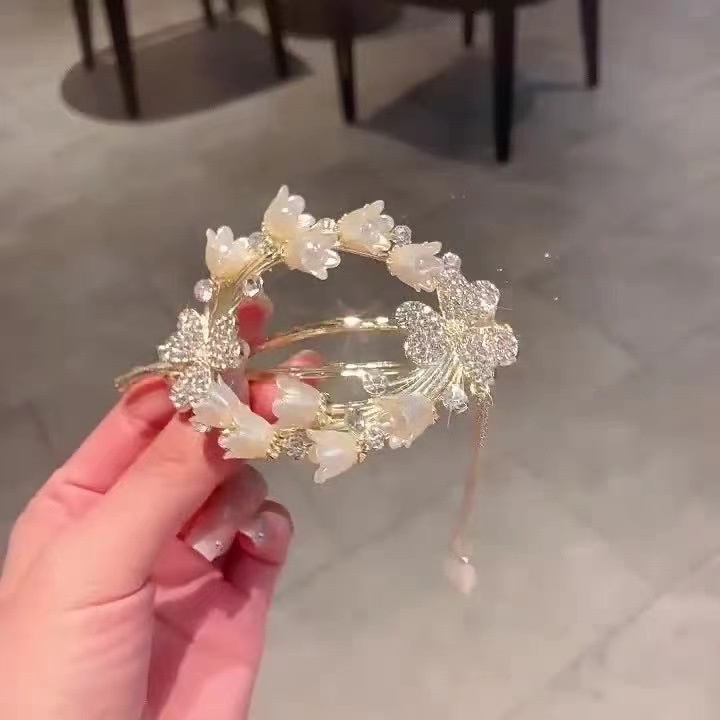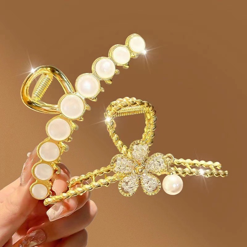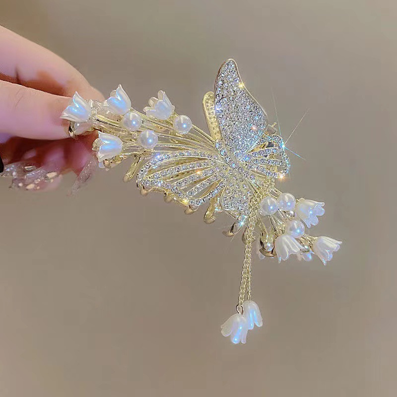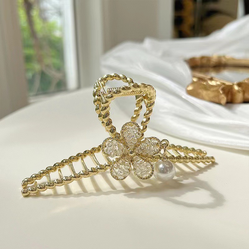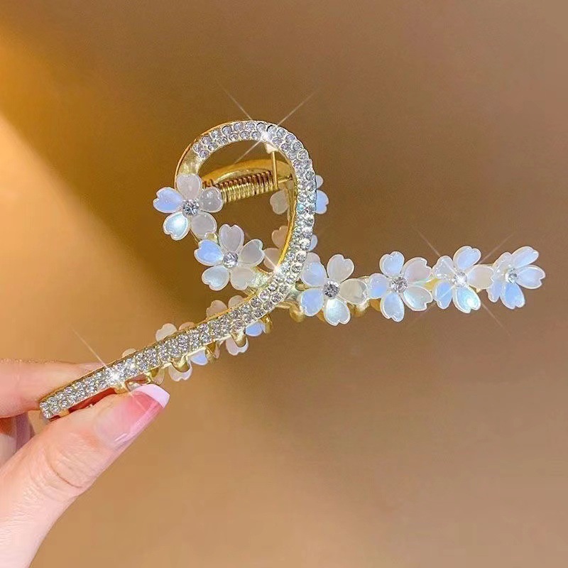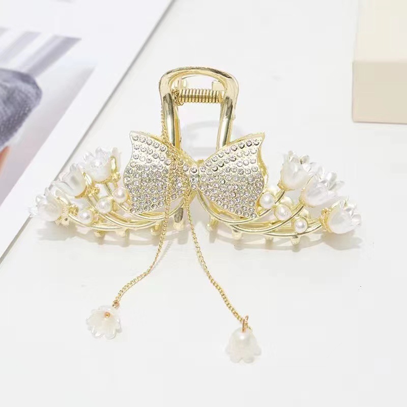 碎花水钻合金抓夹珍珠流苏盘发麦穗发夹铃兰花盘发鲨鱼夹发批发