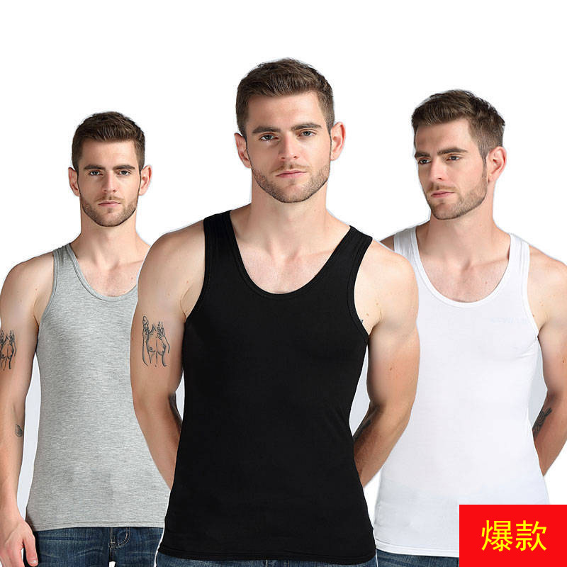 个性印花背心圆领男士紧身修身弹性加印新款青少年汗背心一件代发