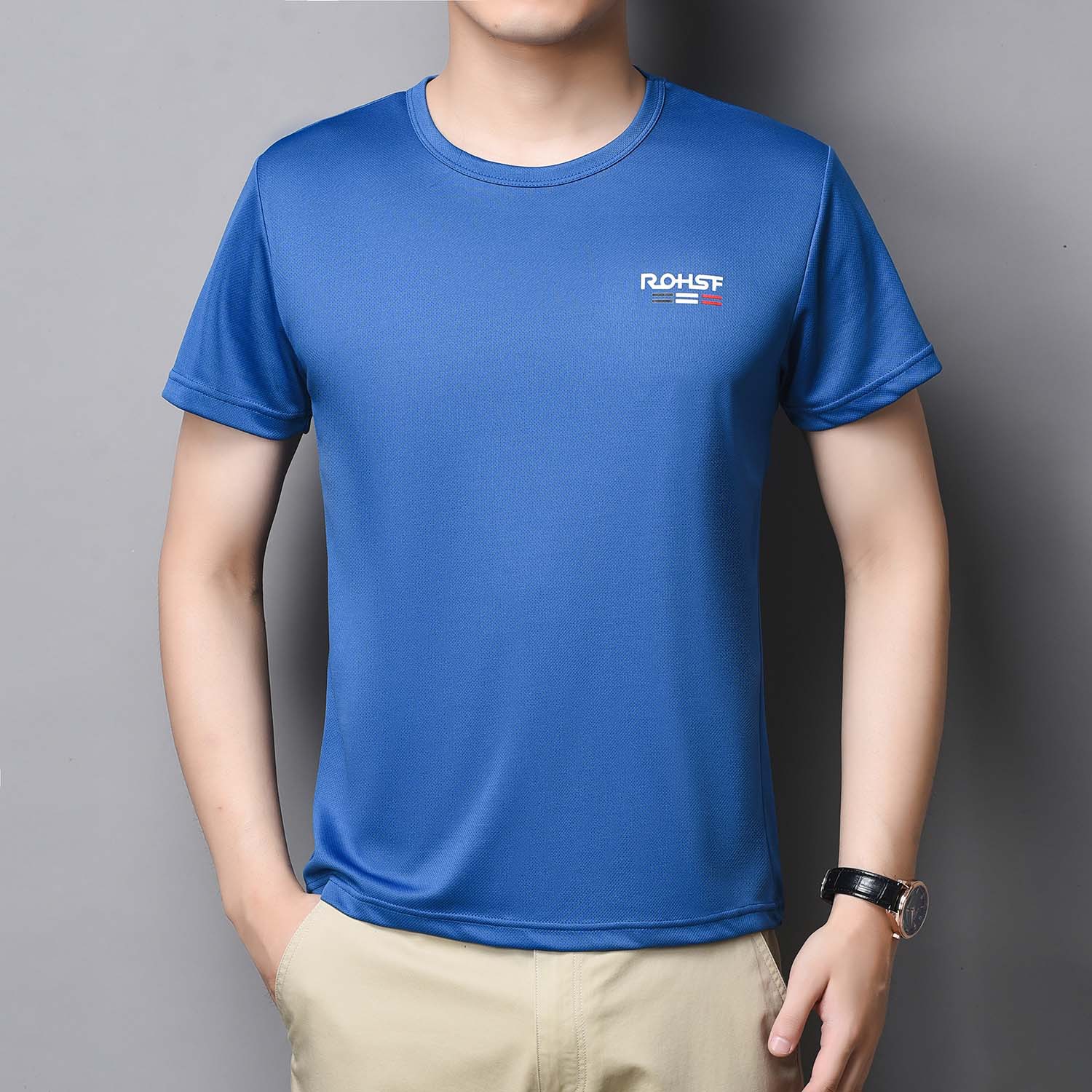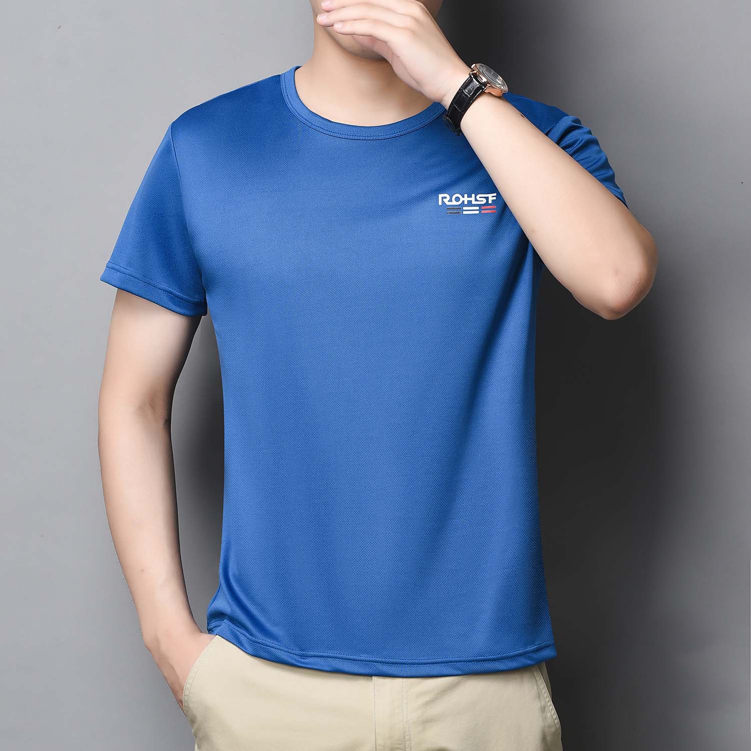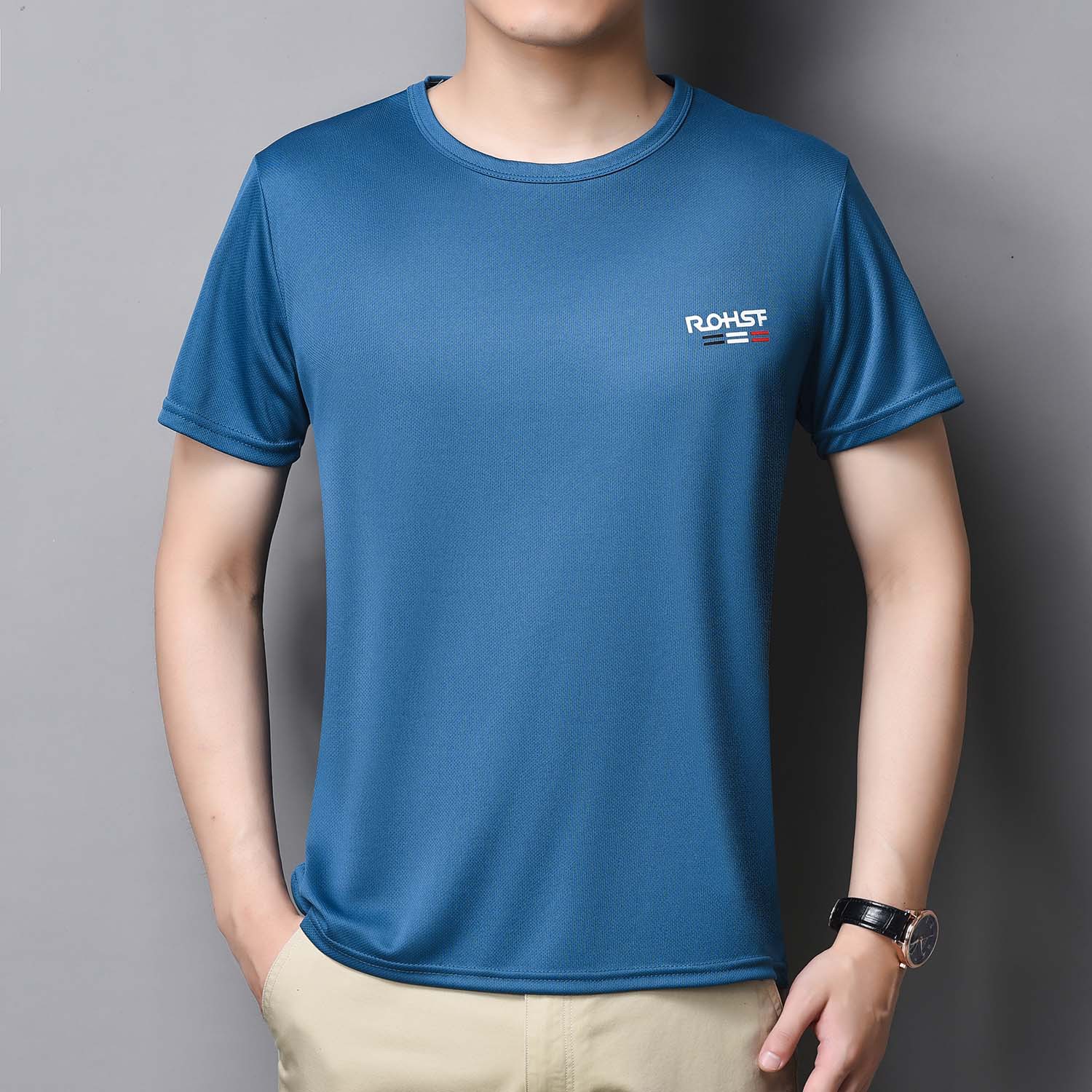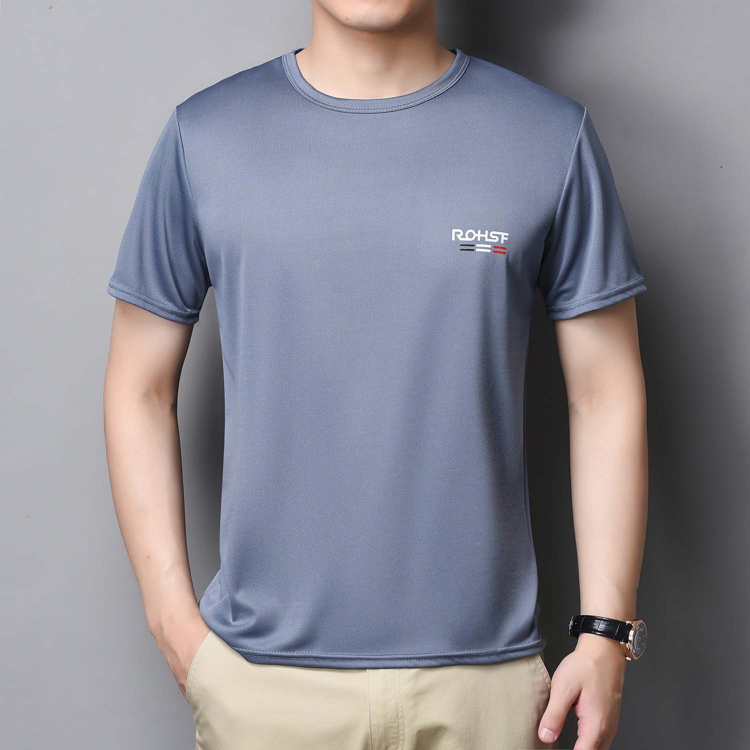t恤衫男士时尚夏季2022新款宽松冰丝速干衣短袖弹力网眼圆领薄款