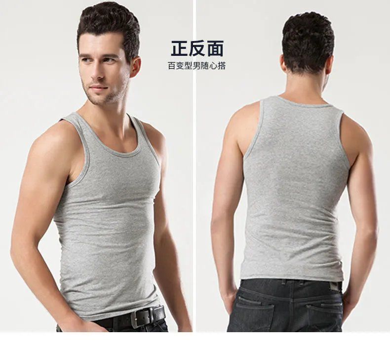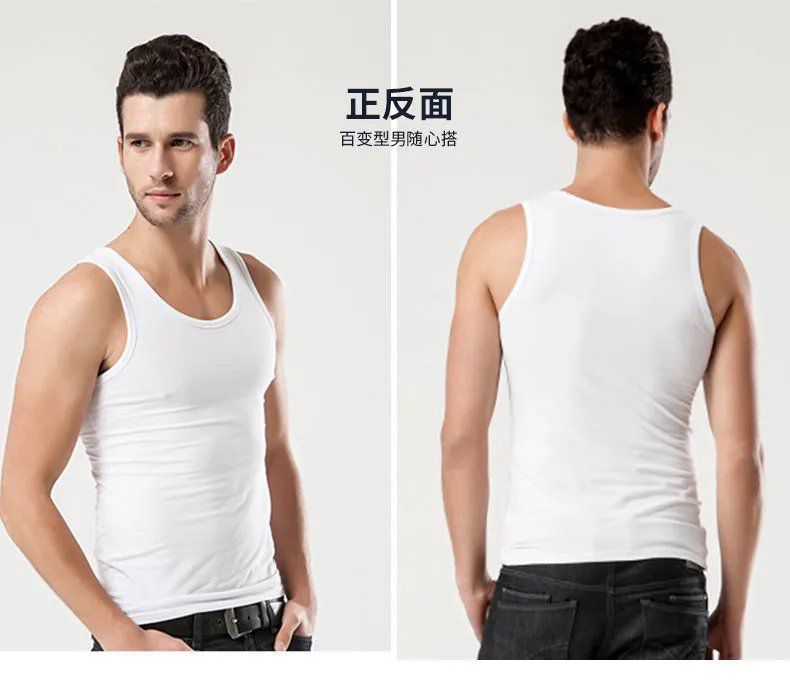 夏季纯色大码背心男健透气弹力男士背心青少年跨栏运动汗衫打底潮