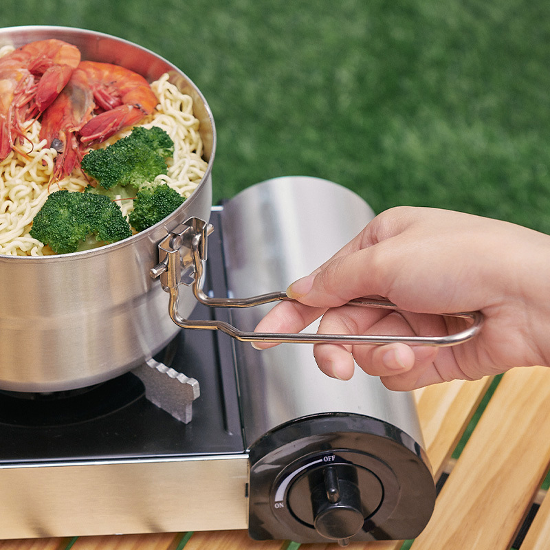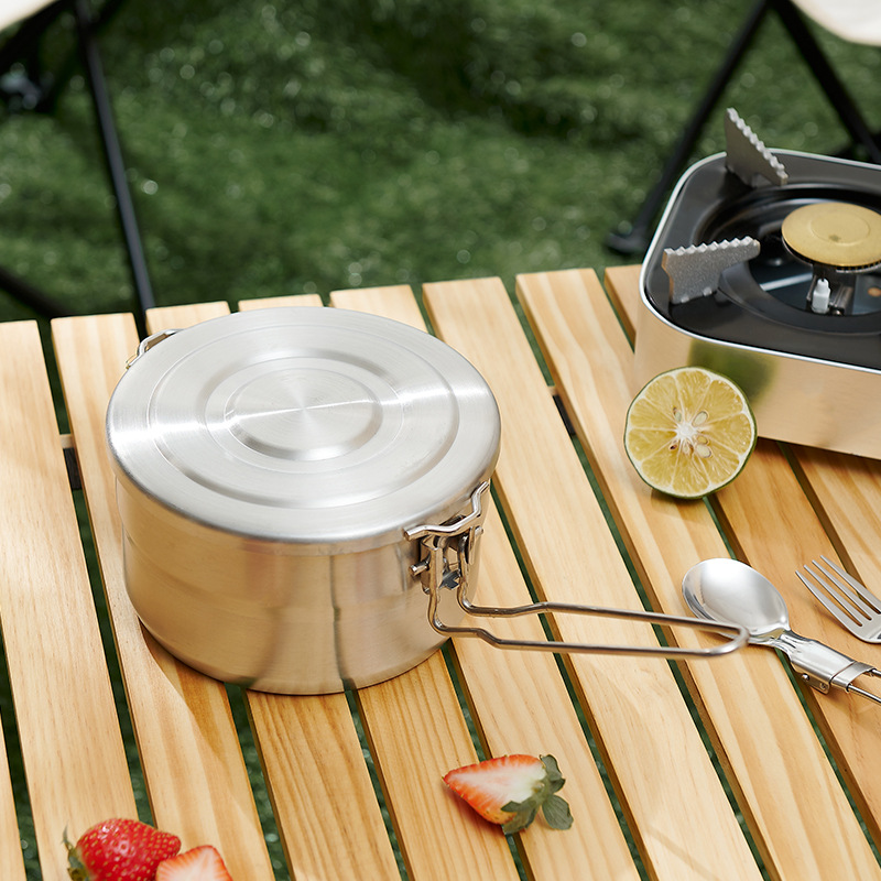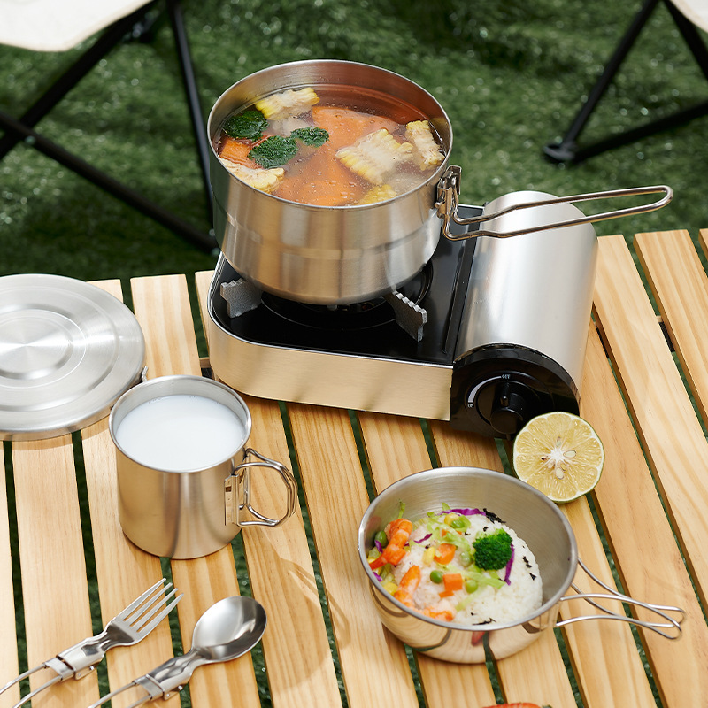 户外野营6件套装登山野炊餐具可折叠便捷式便当锅套装可收纳露营