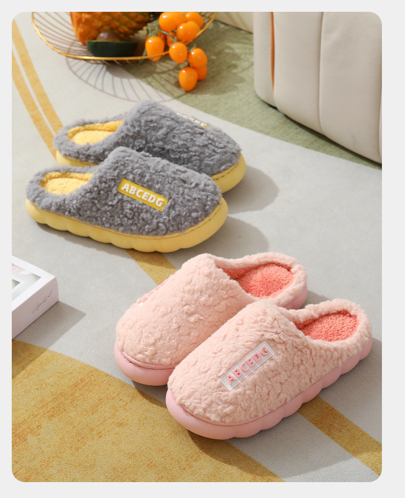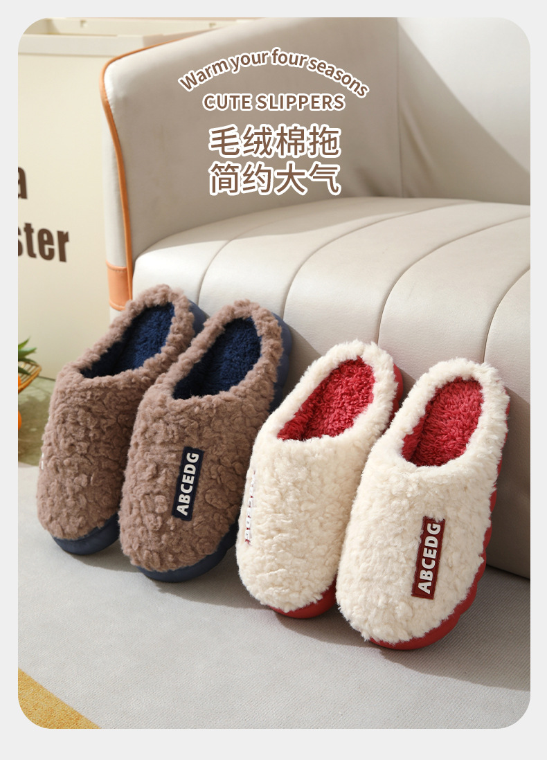 新款时尚棉拖鞋女秋冬季配色厚底防滑保暖情侣月子鞋家用拖鞋加绒