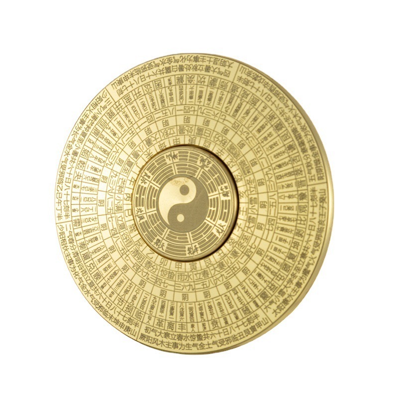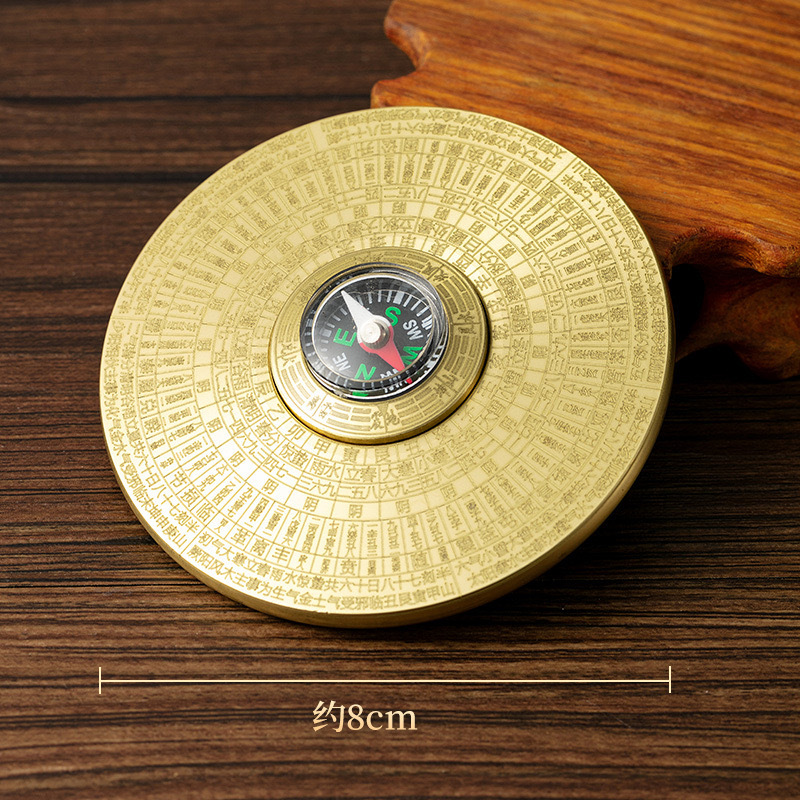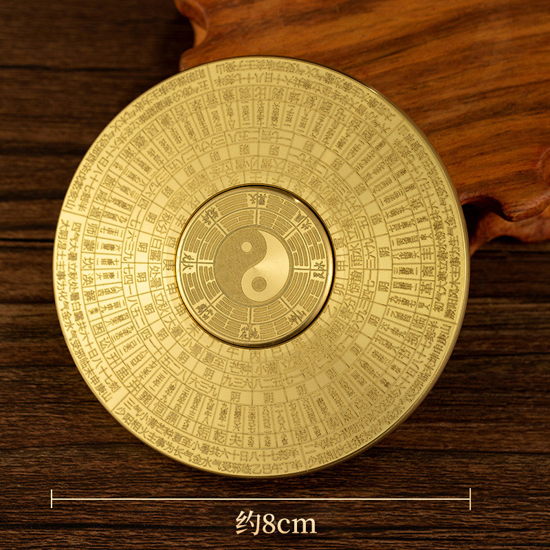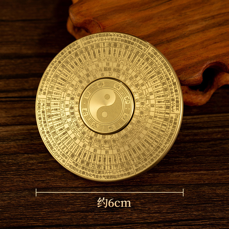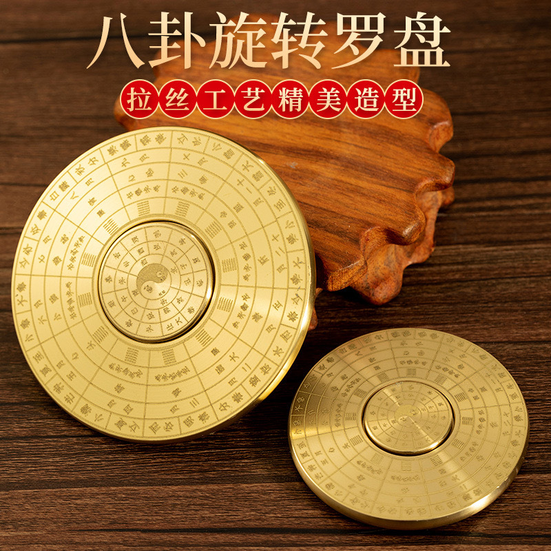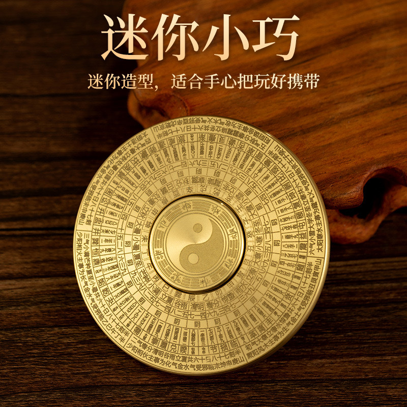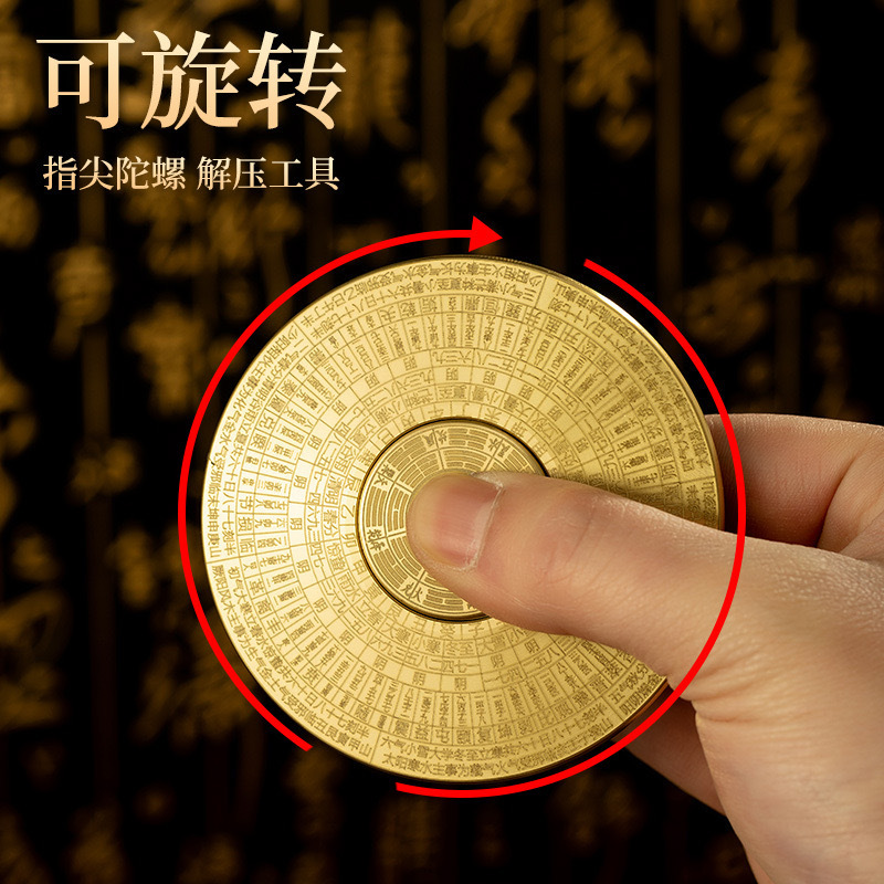 黄铜八卦罗盘指尖陀螺金属工艺品实心摆件纯铜手把件可旋转铜器