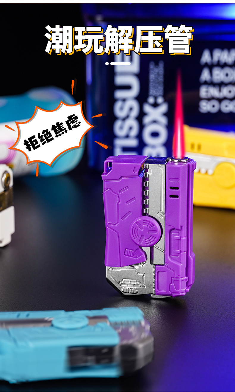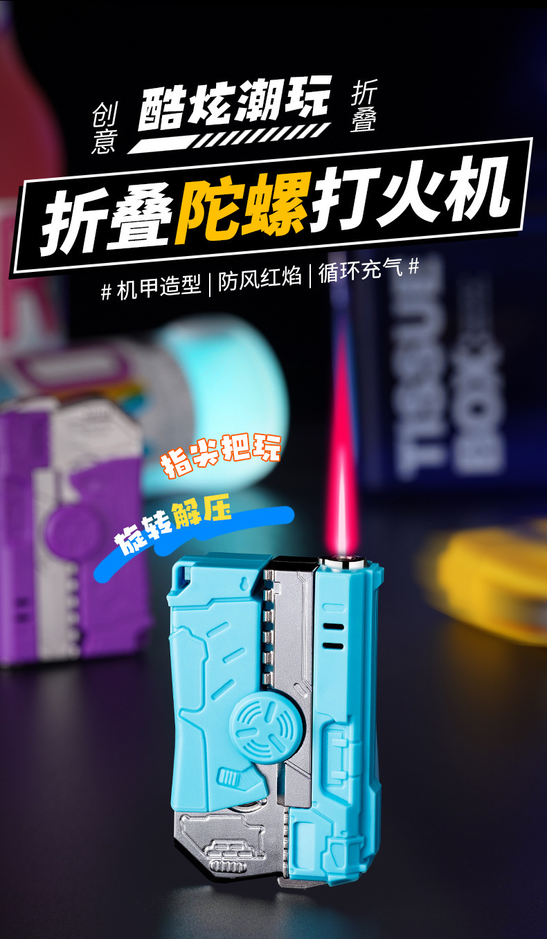 指尖解压陀螺打火机高颜值创意个性充气直冲火机折叠型潮流男士
