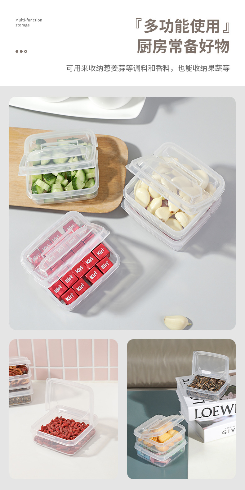 芝士分装盒冰箱水果密封保鲜盒翻盖黄油块收纳盒葱姜蒜佐料储存盒