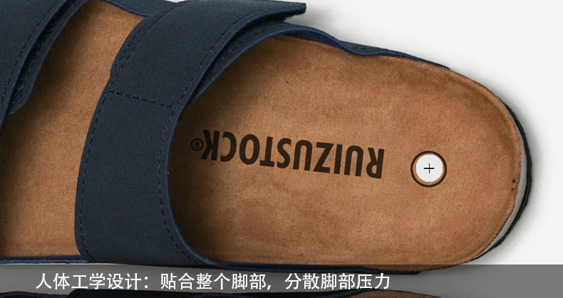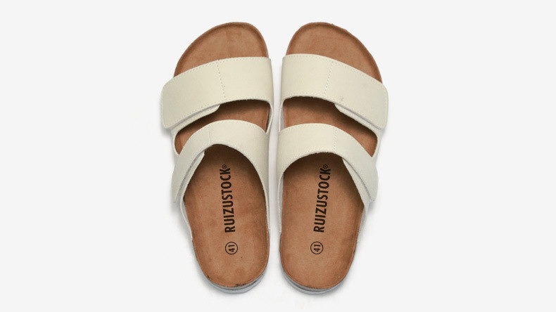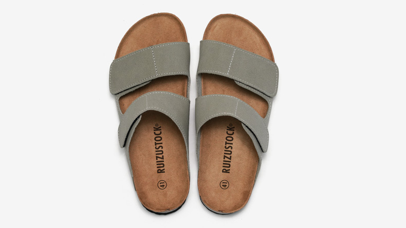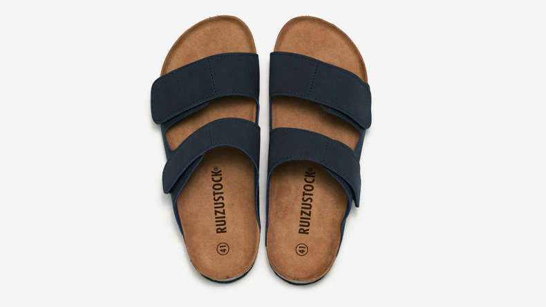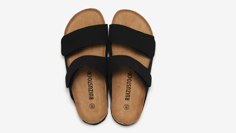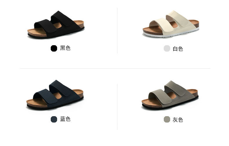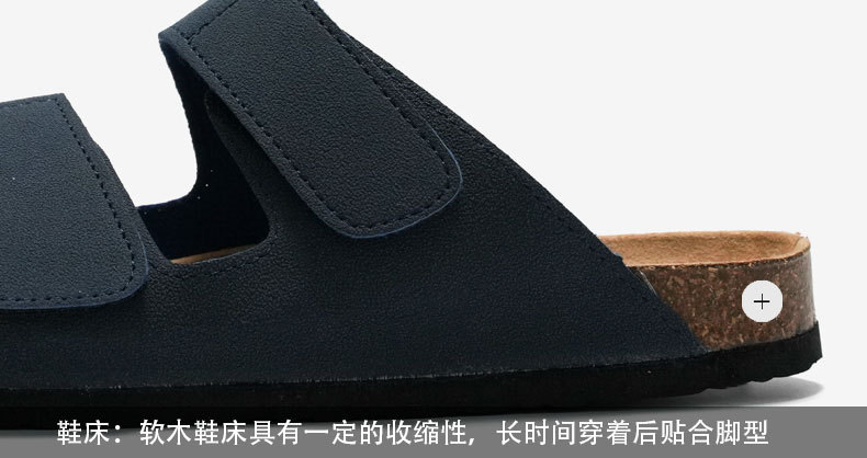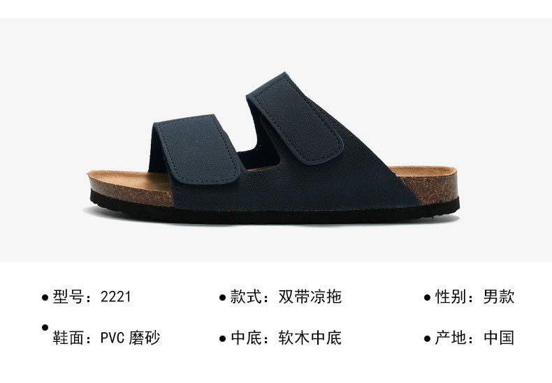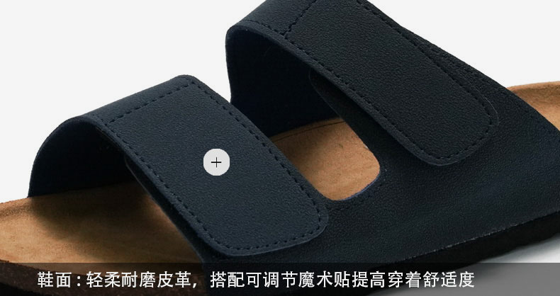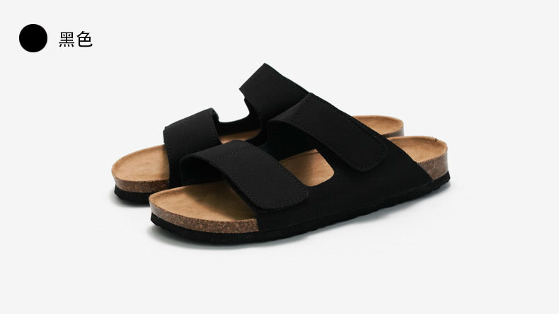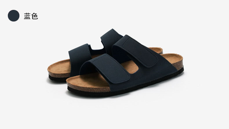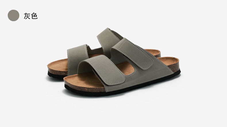 男士软木拖鞋潮学生一字拖双带男士沙滩鞋磨砂皮拖鞋